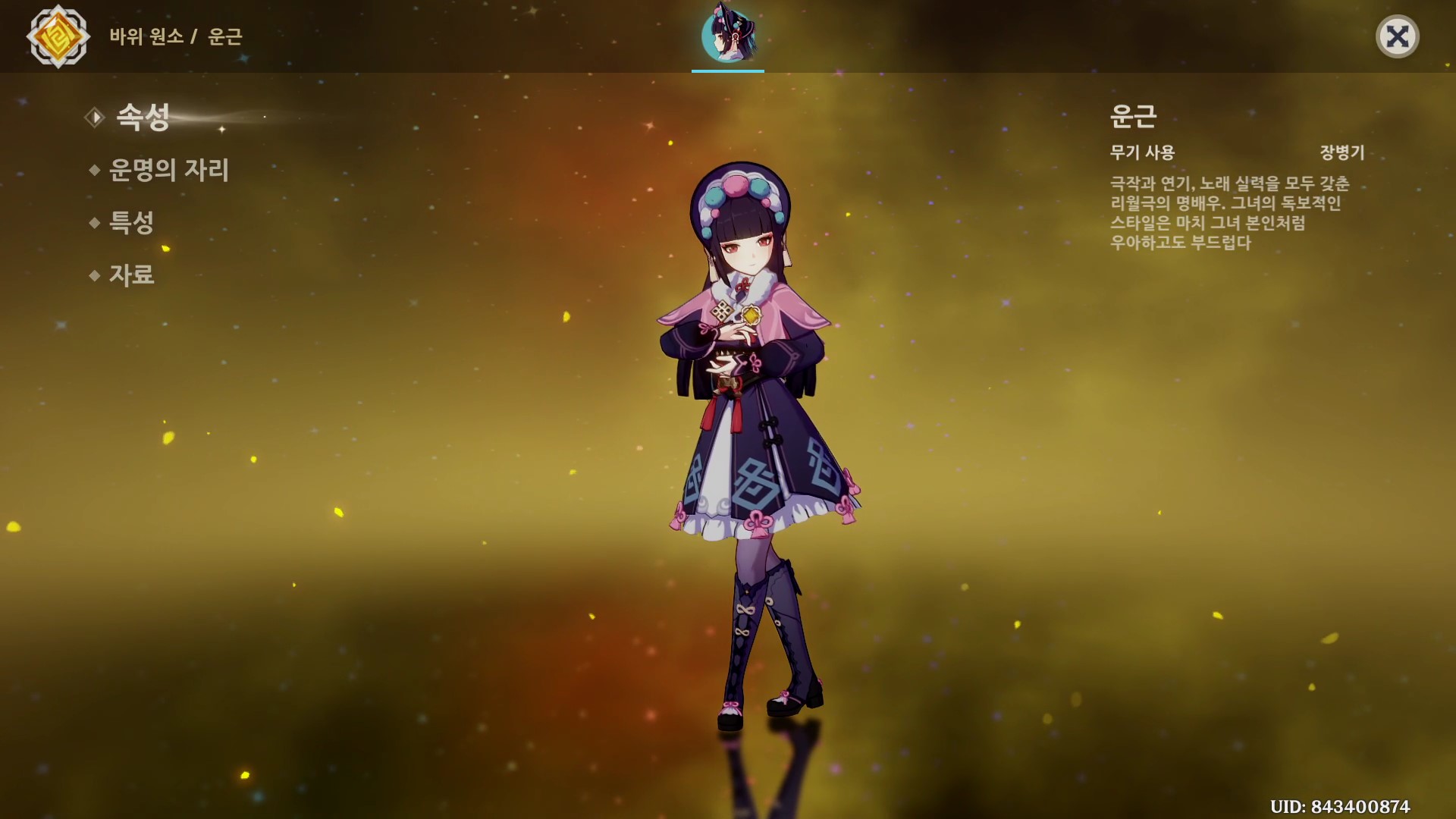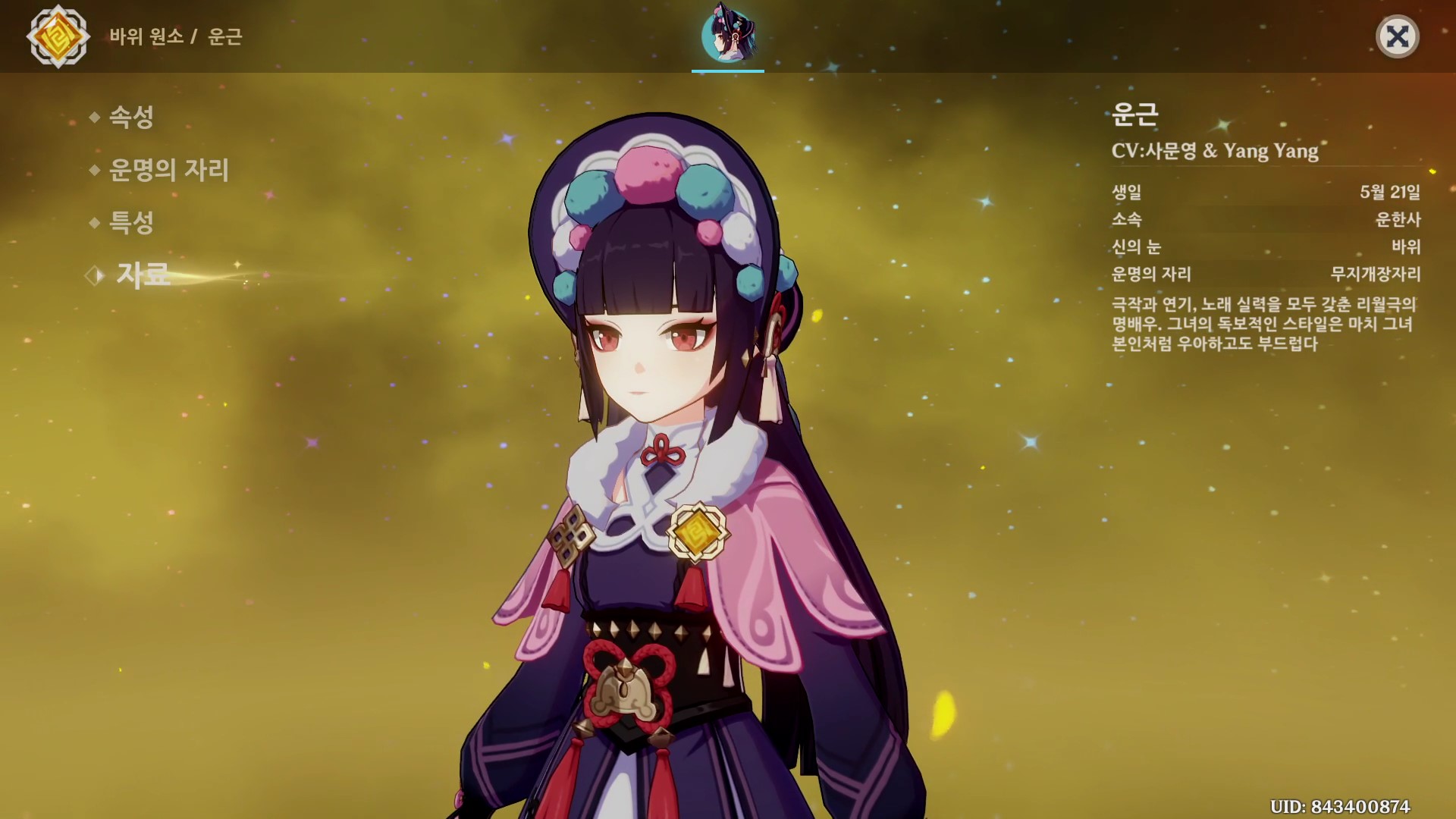이번에는 리월의 바위 원소 캐릭터인 운근에 대해서 정리해보도록 할게요.