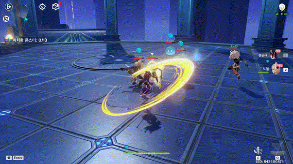 · 일반 공격 1회로 동시에 다수의 적 명중 시, 명중한 적의 수에 따라 발동 횟수를 소모한다.