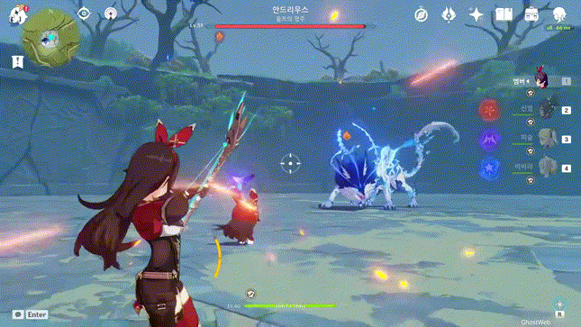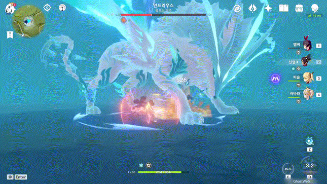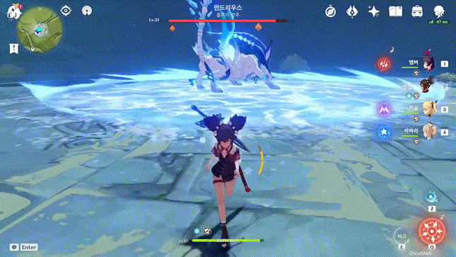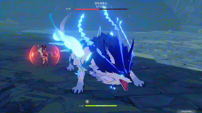 - 공격은 얼음 원소의 근접 공격으로 할퀴기, 점프 후 공격, 돌진 등을 하며 대략 3 페이즈의 공격 타입이 있어요.
