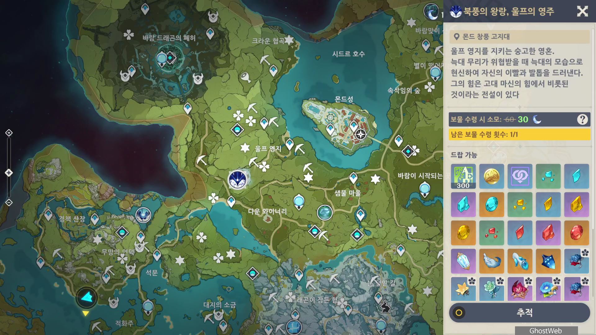 이번에는 몬드 성 기준으로 왼쪽 아래에 있는 <북풍의 왕랑, 울프의 영주>에 대해서 알아보도록 할게요.