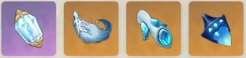 - 서늘한 빙옥 가루, 서늘한 빙옥 조각, 서늘한 빙옥 덩이, 서늘한 빙옥 (얼음 원소 캐릭터 육성 소재)