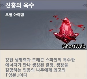 신의 눈동자 처럼 드래곤 스파인을 탐험 시 미니맵에 눈에 보이는 곳에 위치한 진홍의 옥수가 표시되며, 표시되지 않는 곳은 기믹 해결, 도전 등의 보상으로 나오는 보물 상자를 열면 얻을 수 있어요.