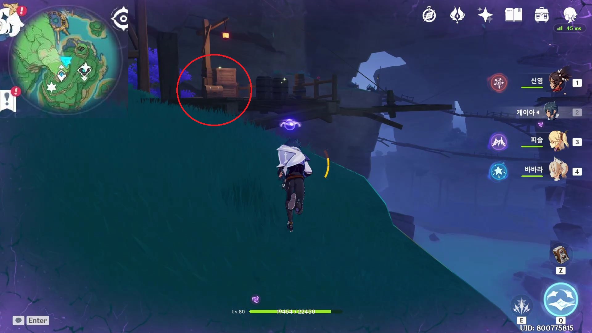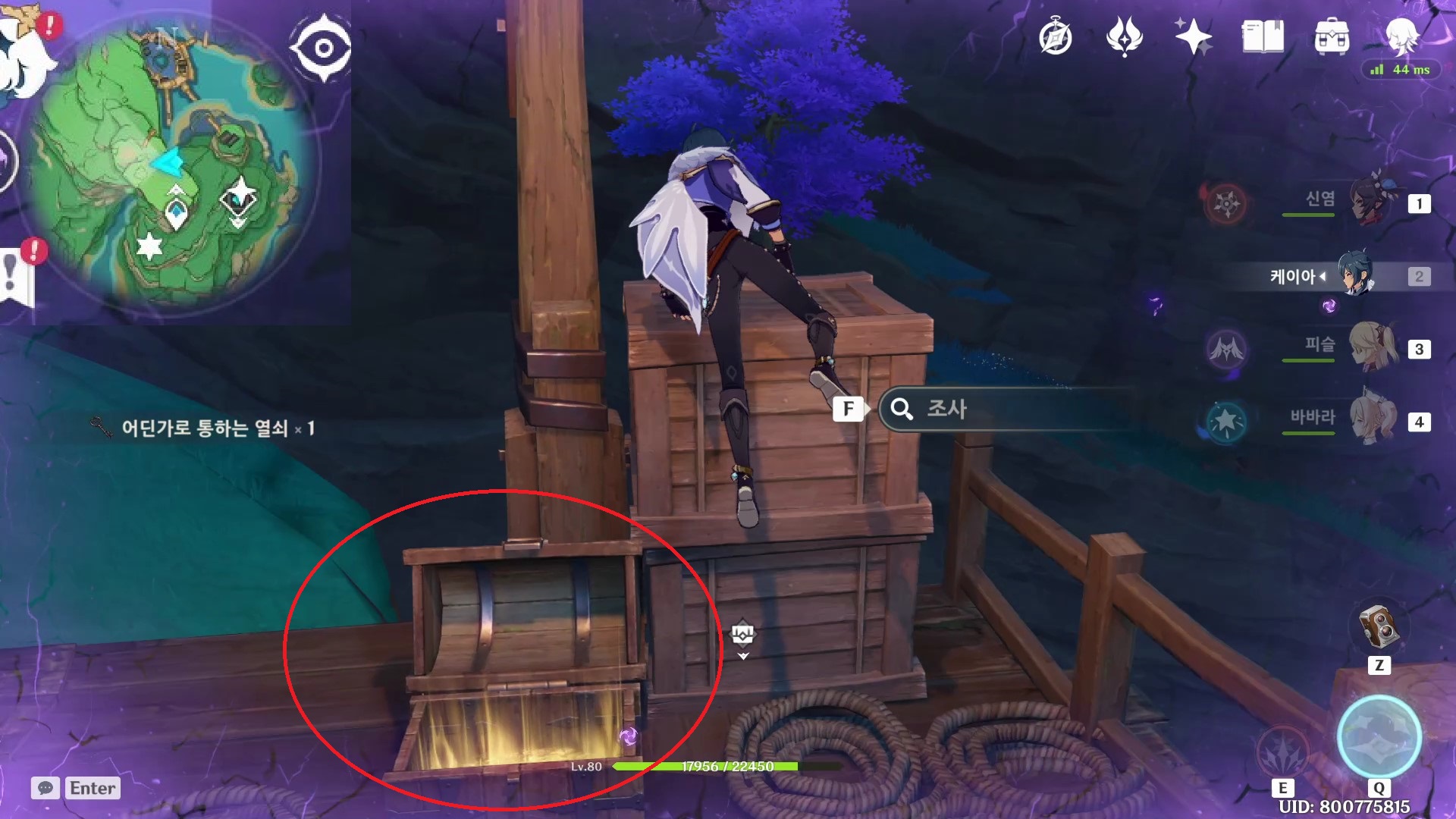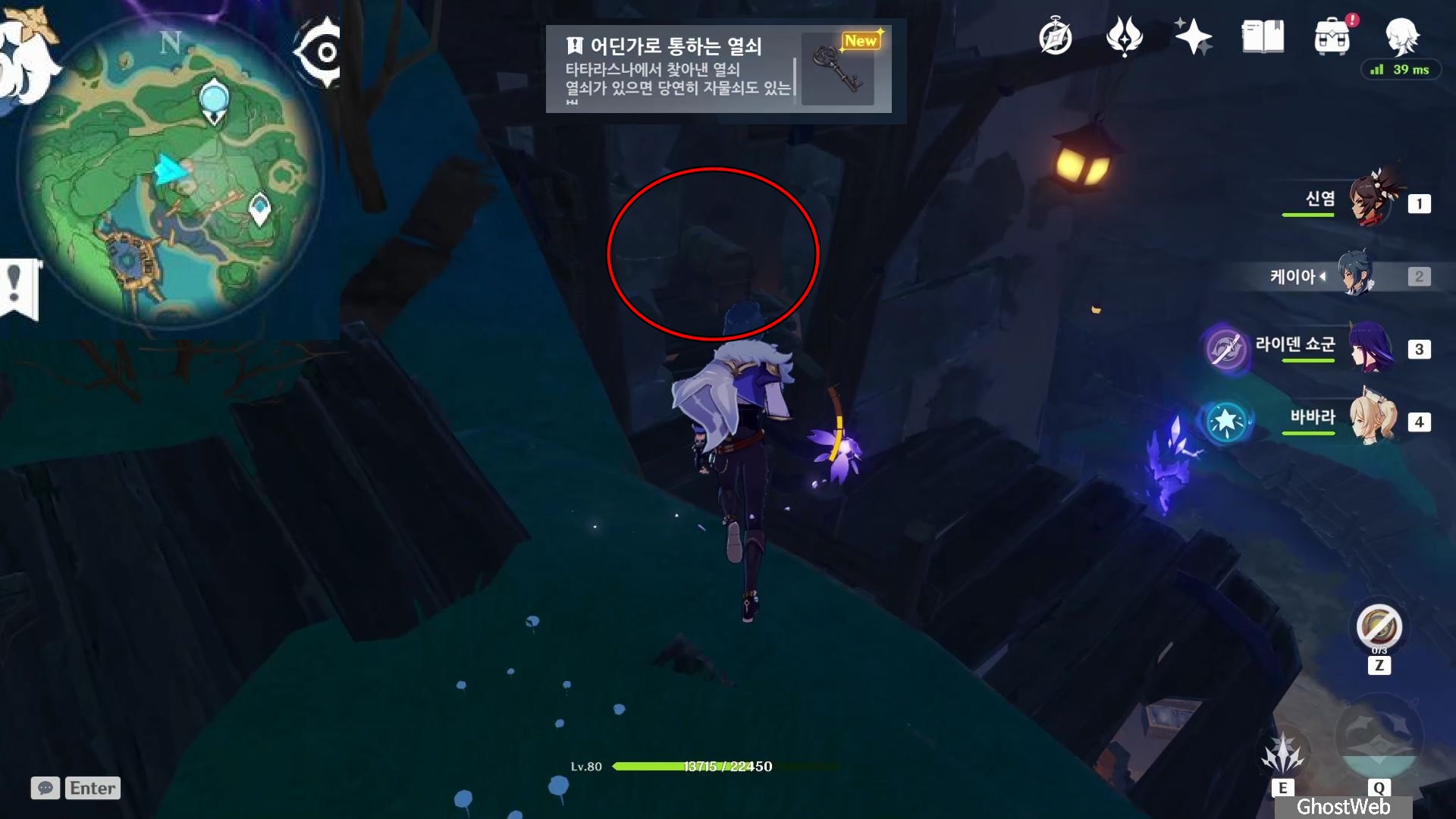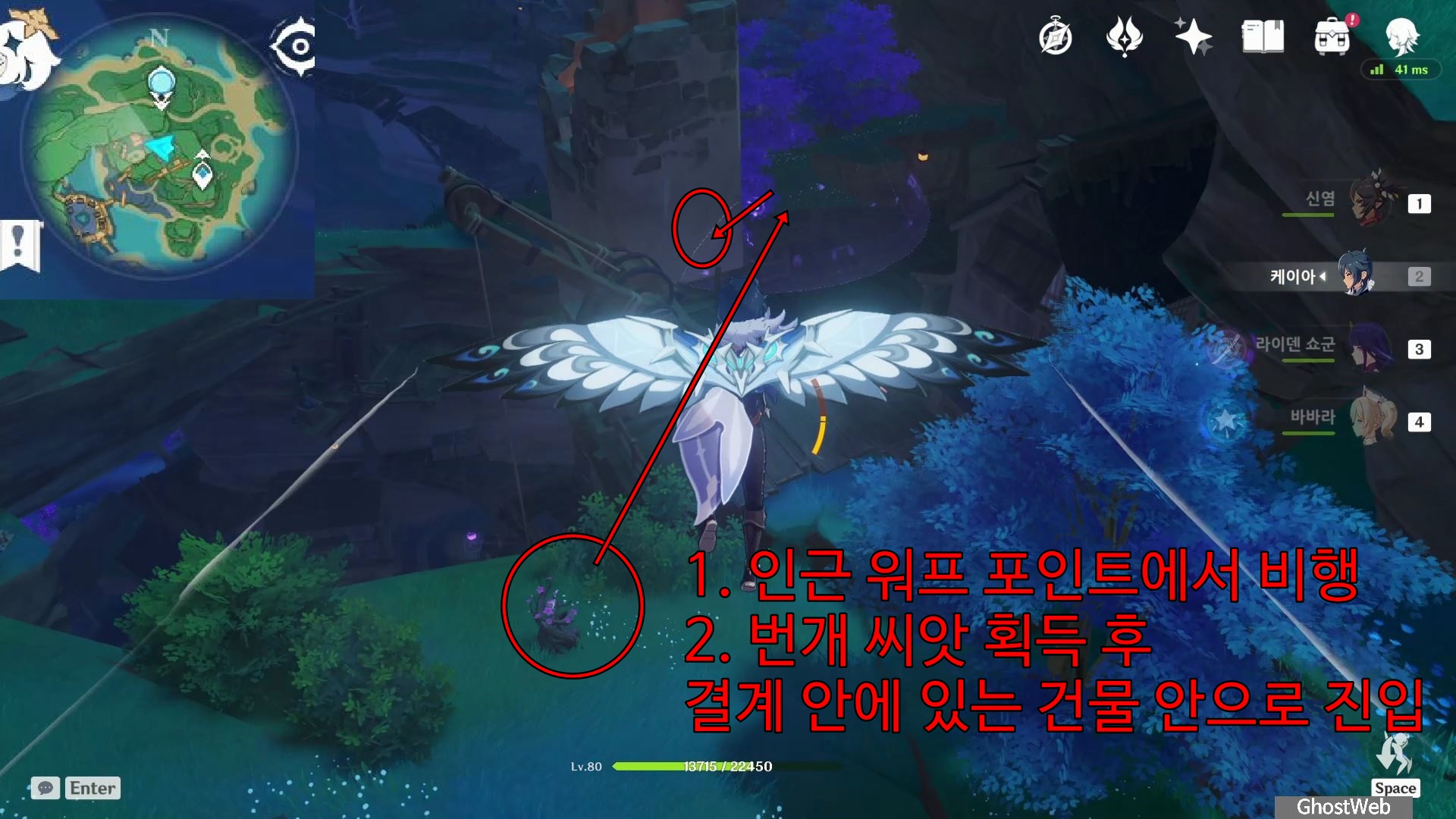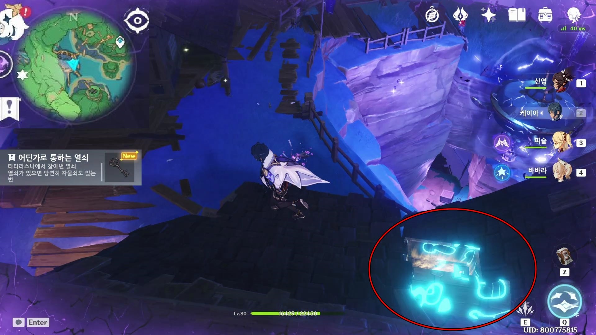 열쇠 2는 근처 워프 포인트에서 비행하여 주변에 있는 번개 씨앗을 얻은 다음 결계 안으로 들어가 건물에 부셔진 틈 사이에 있는 보물 상자를 열면 얻을 수 있어요.