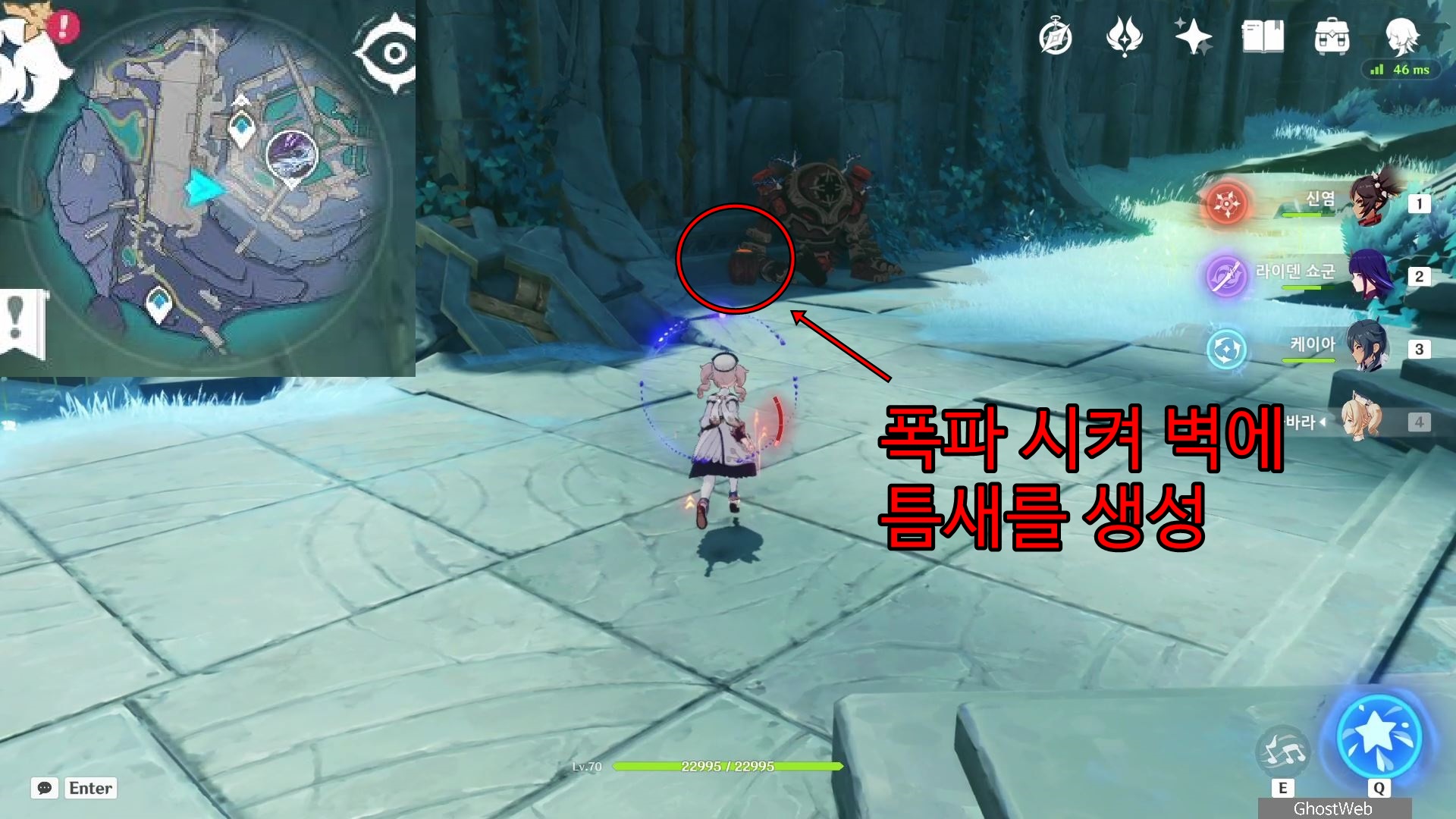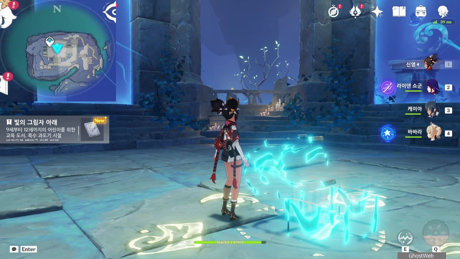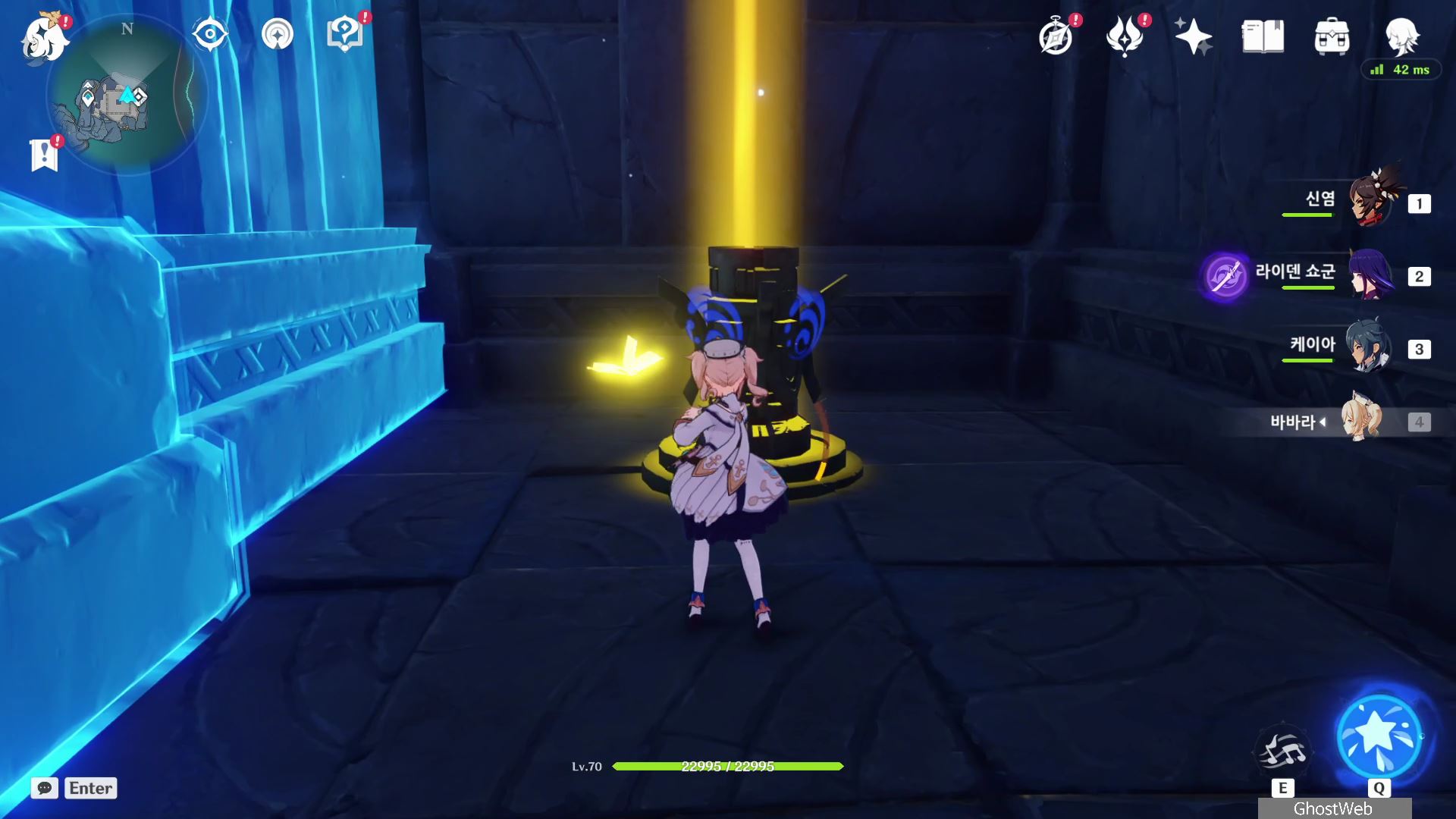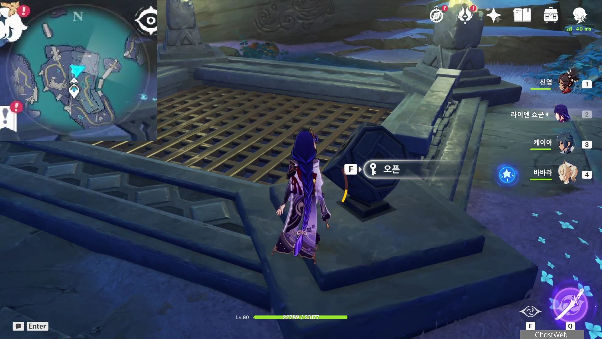 그 다음으로 미궁 내부로 들어가 내부에 있는 장치를 물 원소 캐릭터로 원소 공격하여 장치를 활성화면 중앙에 지하로 통하는 철문이 열려요.