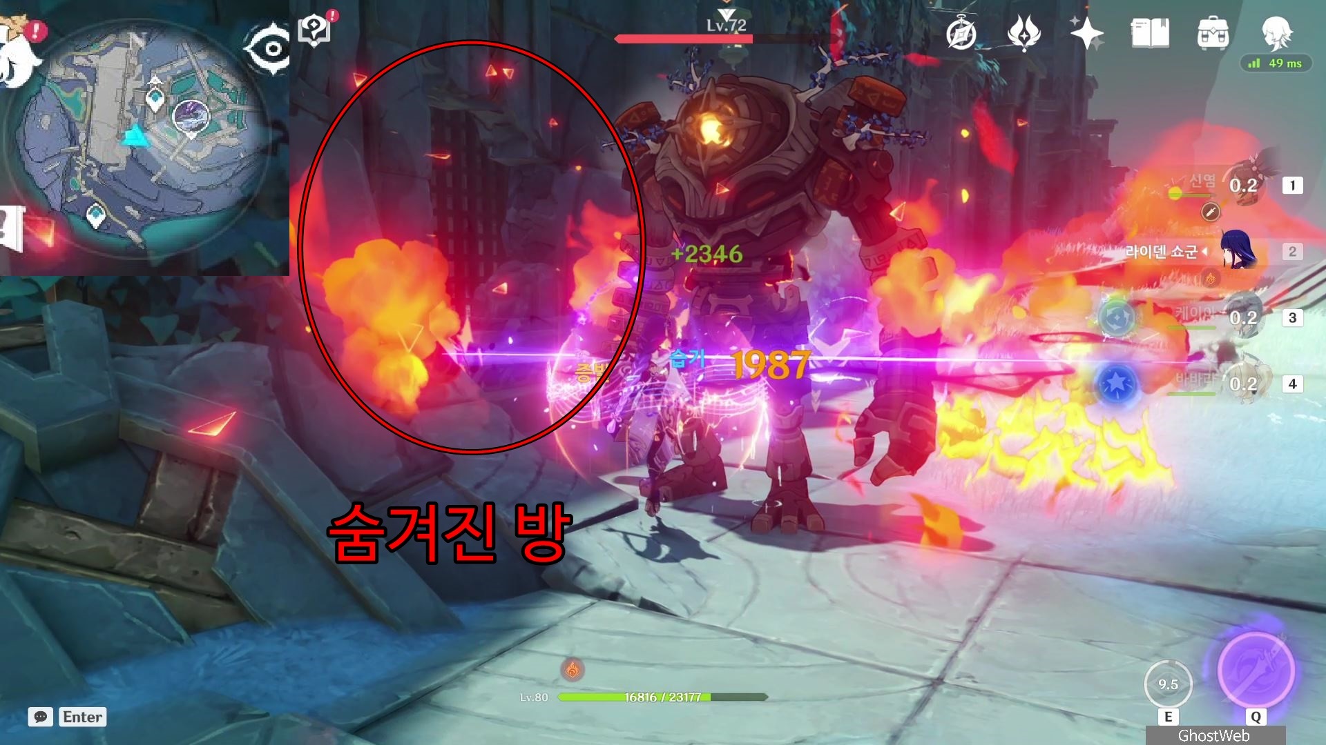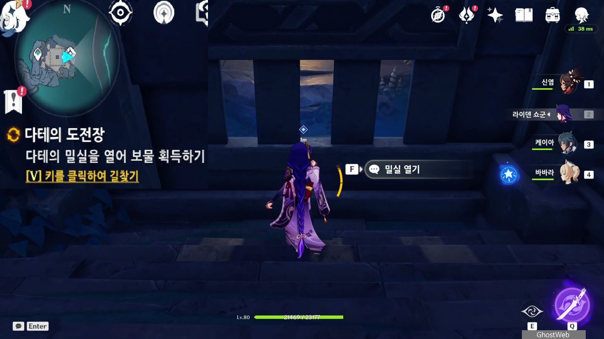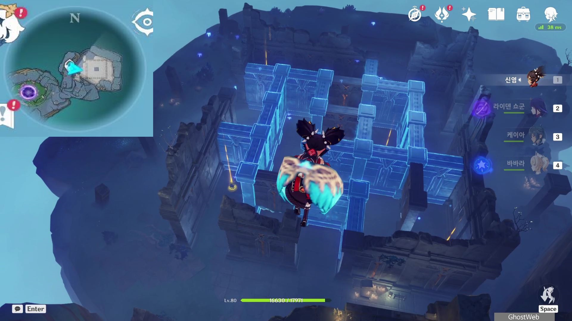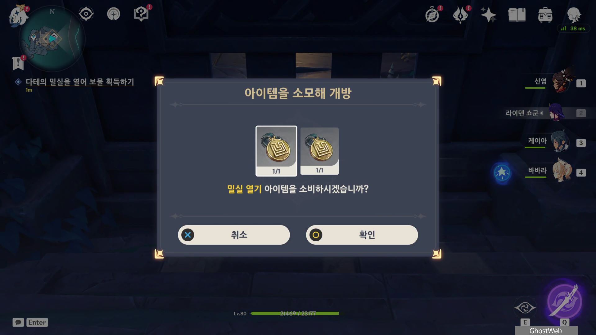 그 다음으로 미궁 내부로 들어가 내부에 있는 장치를 물 원소 캐릭터로 원소 공격하여 장치를 활성화면 중앙에 지하로 통하는 철문이 열려요.
