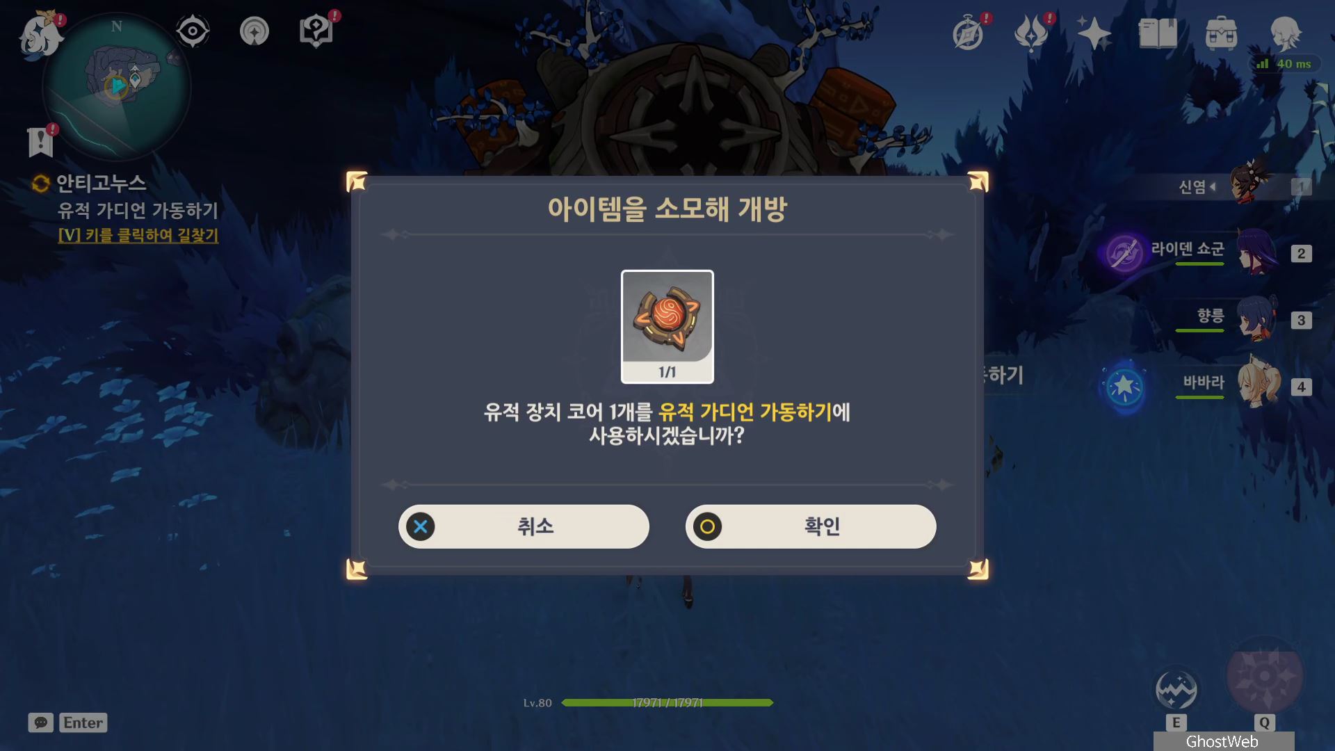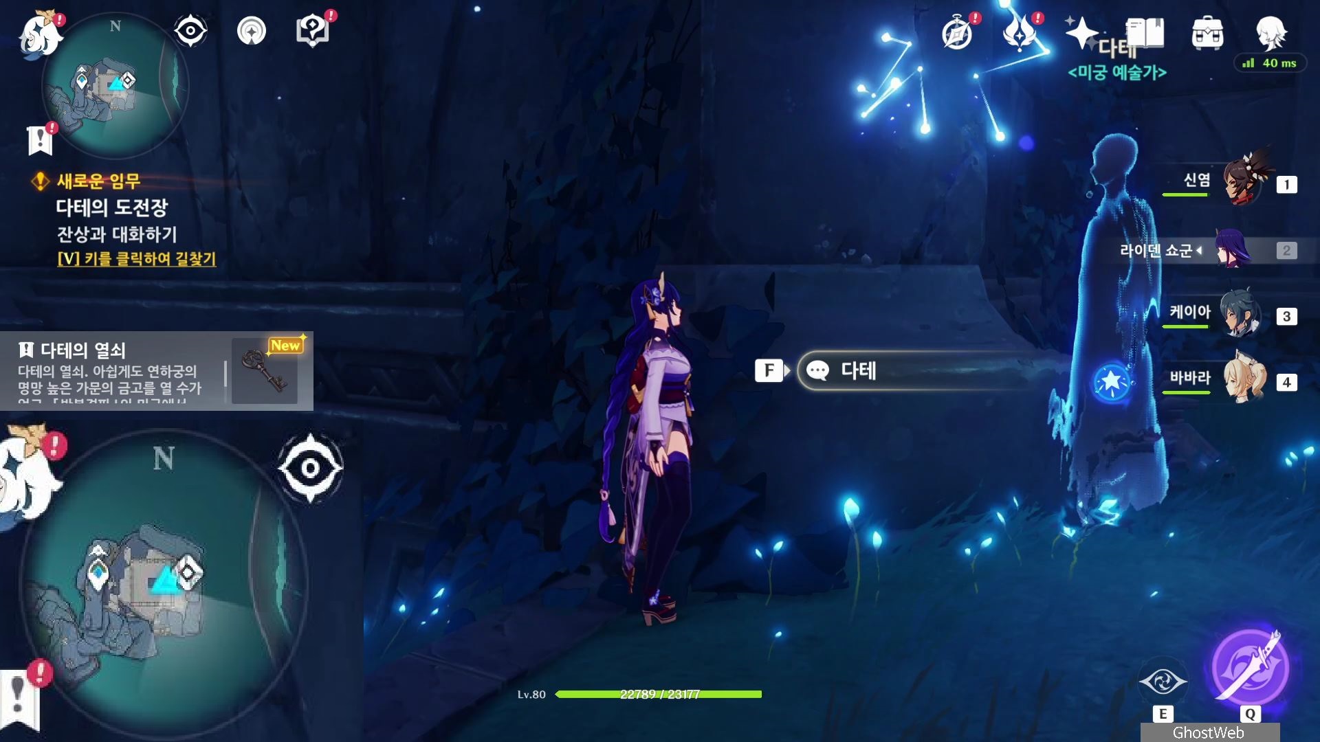 연하궁 중앙에 있는 다이니치 미코시로 왼쪽 하단에 있는 워프 포인트로 이동하여 외곽쪽으로 비행하여 아래로 내려가면 오오구라, 오오시마와 대화를 하면 안테를 찾으라고 해요.