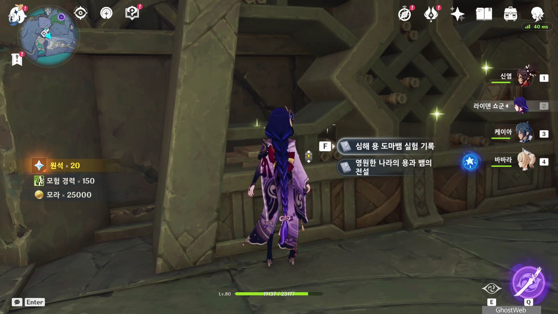 총 5권을 책을 모두 모아 도서관에 있는 에마에게 돌아가면 책을 책꽂이에 꽂아달라는 부탁을 받는데, 도서관 한편에 있는 거울로 들어가면 <용과 뱀의 수집품> 임무 완료와 <토코요노카미께서 알고 계신다면...> 업적 달성, 원석 20개 등을 보상으로 얻을 수 있어요.