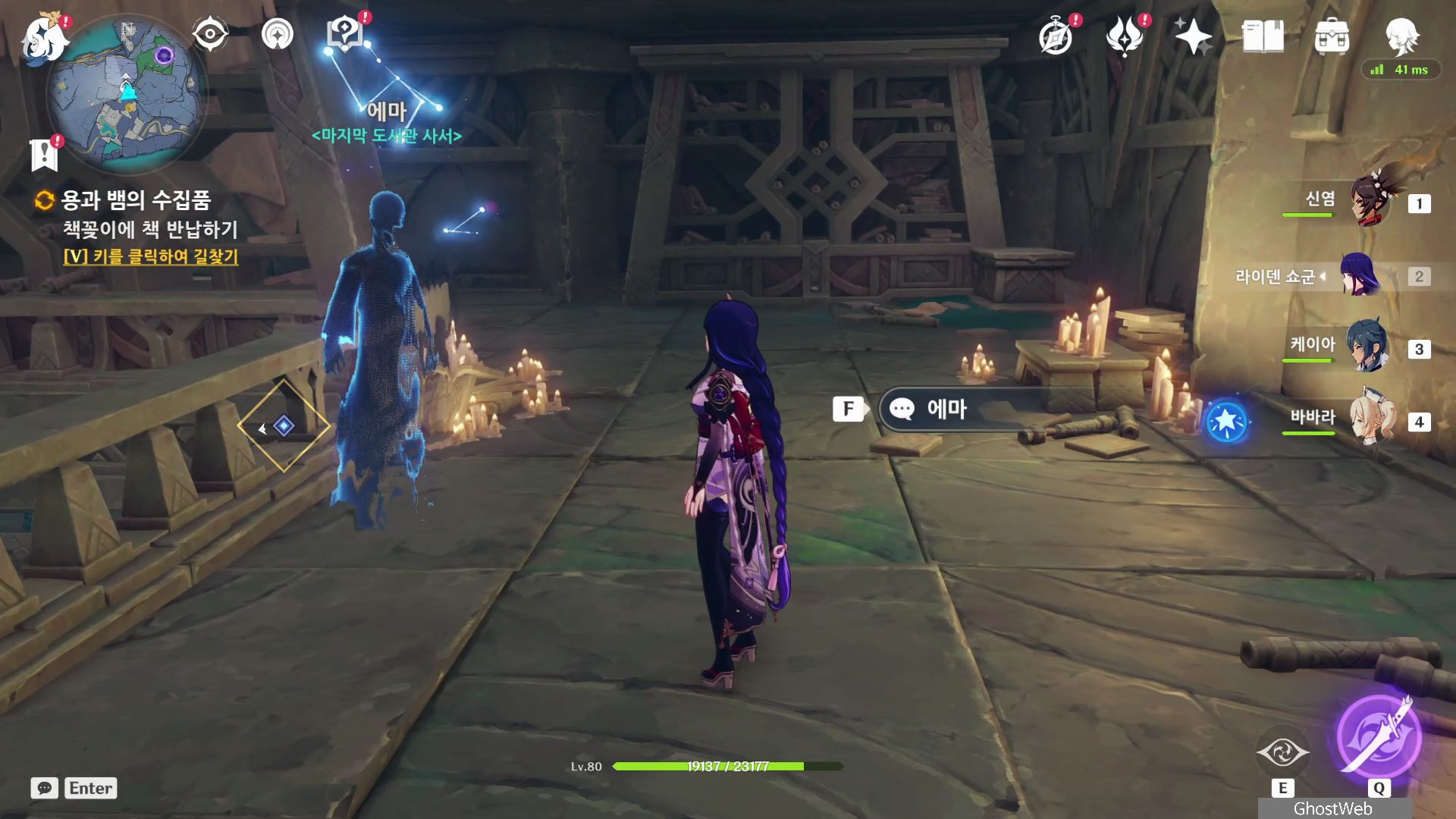 연하궁 스토리를 진행하고 도서관에 있는 에마와 대화를 하면 에마가 잃어버린 책 다섯 권을 찾아달라고 부탁해요.