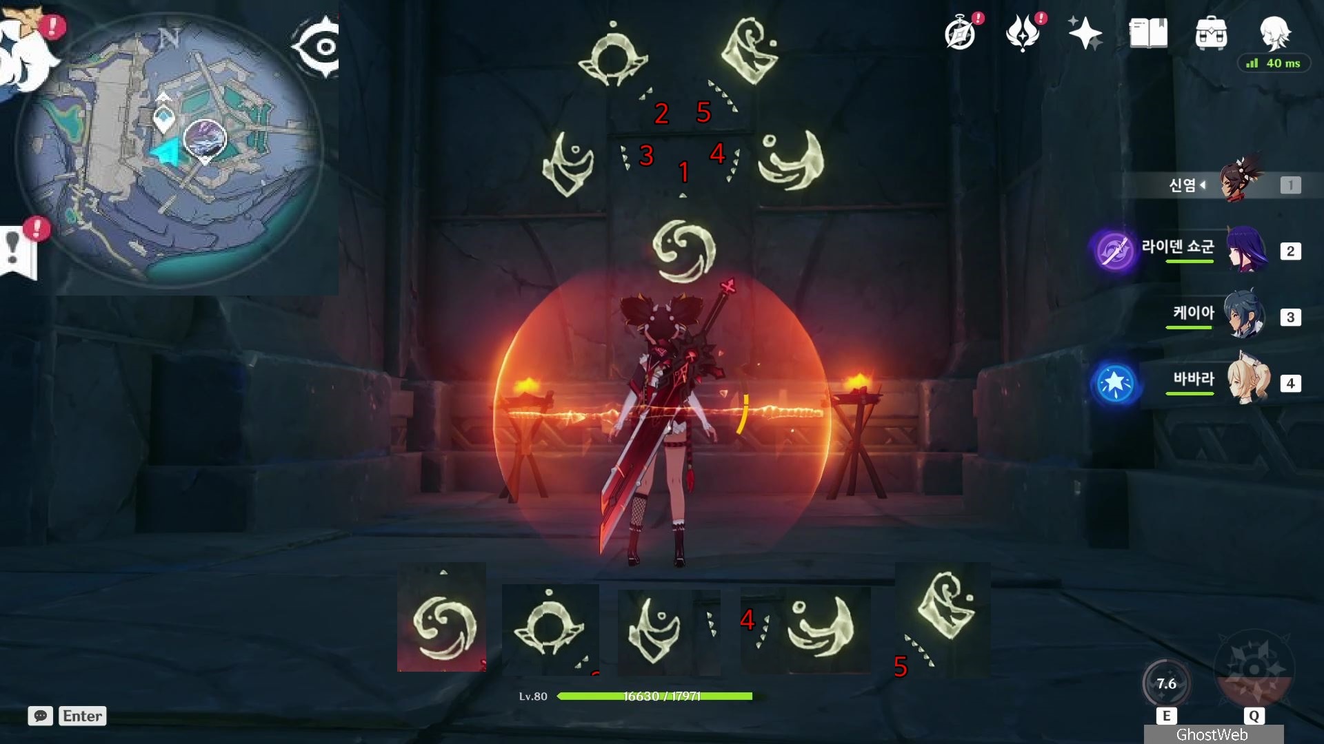 벽 틈새로 내부에 들어가 밀실 기믹을 풀고 벽면에 있는 문양을 활성화하면 다음과 같이 문양과 개수(아래 개수/숫자가 순번)가 나타난 것을 볼 수 있는데요.