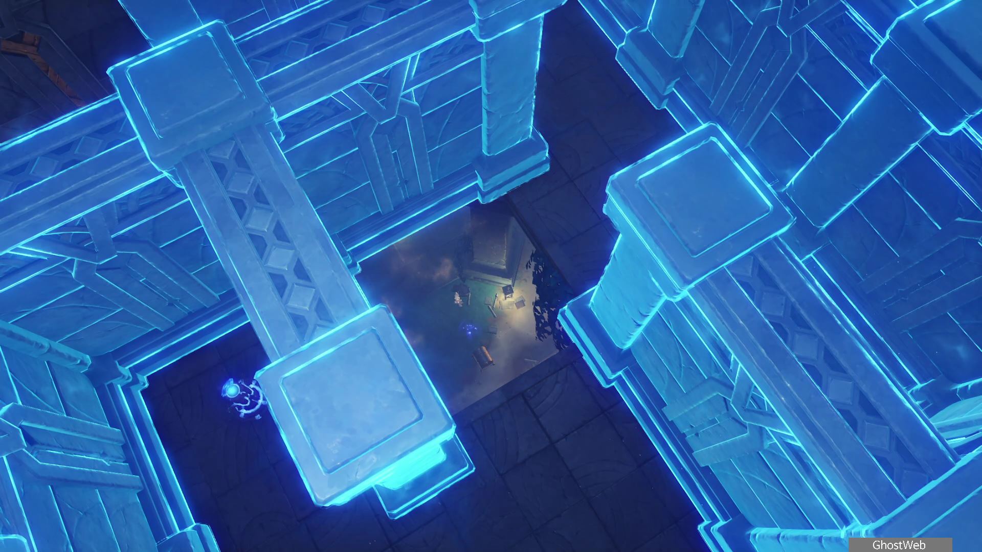 상야의 사당 1시 방향에 있는 워프 포인트로 이동하여 미궁 쪽으로 비행하면 바로 아래에 미궁의 미로를 조정할 수 장치들이 있어요.
