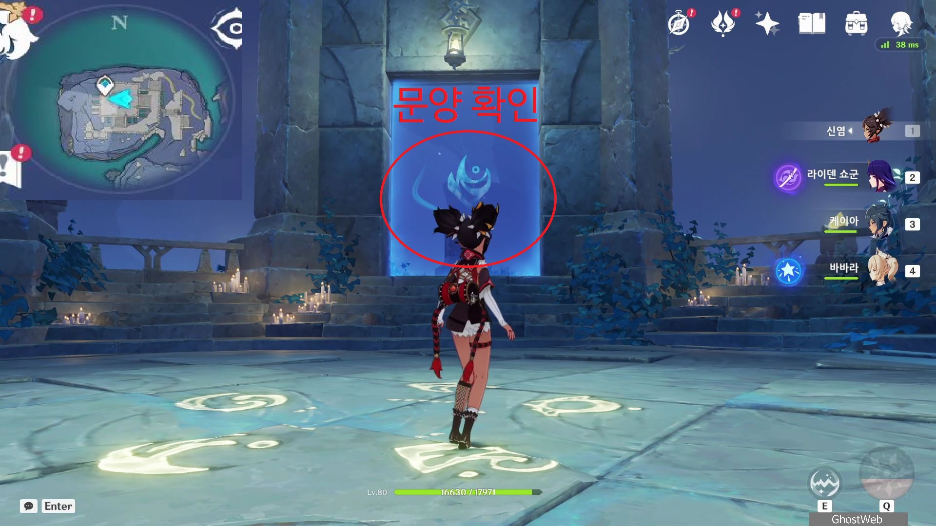 벽 틈새로 내부에 들어가 밀실 기믹을 풀고 벽면에 있는 문양을 활성화하면 다음과 같이 문양과 개수(아래 개수/숫자가 순번)가 나타난 것을 볼 수 있는데요.