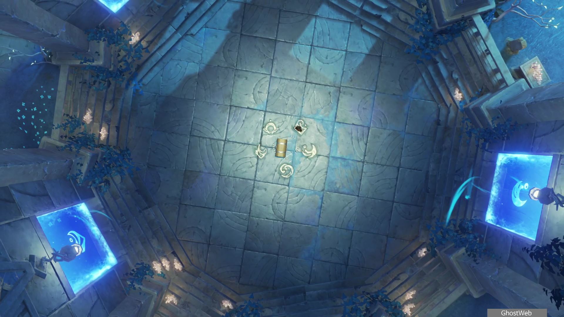 해당 문양 순서를 잘 기억하고 <뱀의 심장> 11시 방향에 있는 워프 포인트로 이동하여 아까 봤던 순번대로 문 들의 중심 지역에서 문양이 있는 마법문(?)으로 순서대로 들어가면 중심에 나타나는 보물상자에서 <빛의 그림자 아래>에서를 얻을 수 있어요. (바닥에 있는 문양 순서 무시)