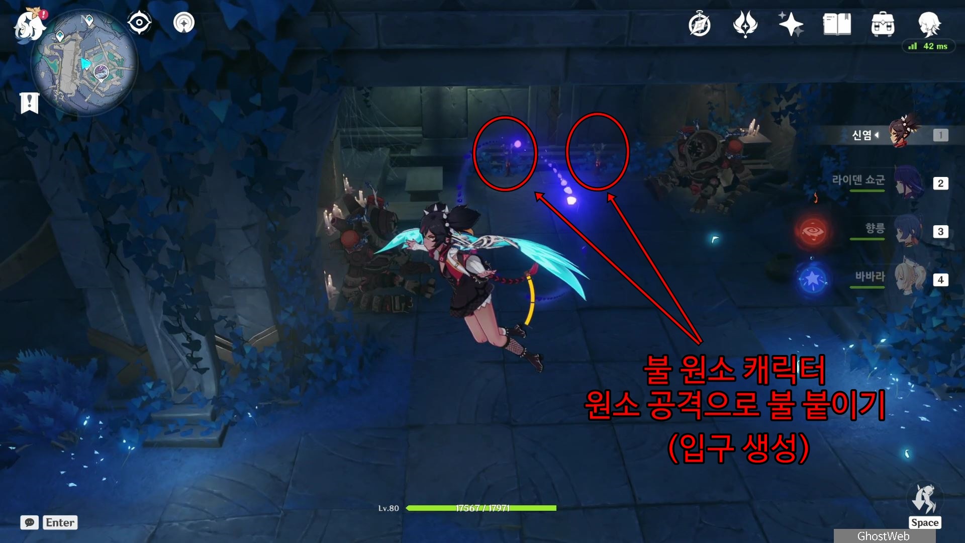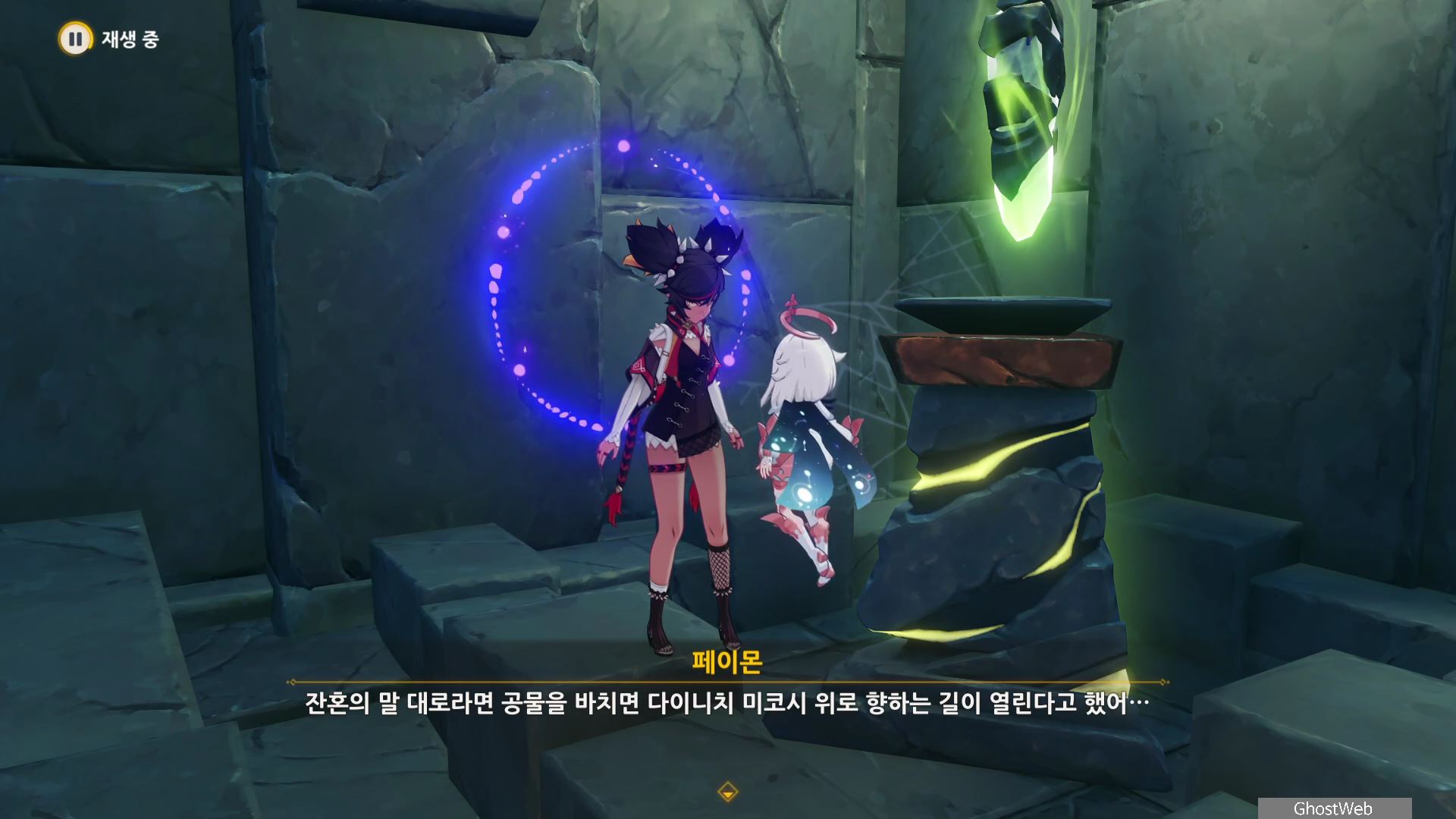 유적 가디언을 처치하고 횃불 장치에 불 원소 캐릭터 원소 공격으로 불을 붙이면 벽면에 입구가 생겨 숨겨진 방으로 들어가면 다이니치 미코시를 건축한 아베라쿠를 만날 수 있어요.