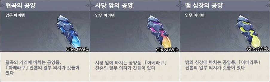 다시 다이니치 미코시로 돌아가 아베라쿠 뒤에 있는 공양대에 공양물을 바치면 다이니치 미코시 위로 향하는 포탈(관문)이 생기는는 이를 타서 위로 올라가면 <음과 양이 희미한 새벽을 가르리> 업적을 달성하고 다시 아베라쿠와 대화를 이어가세요.