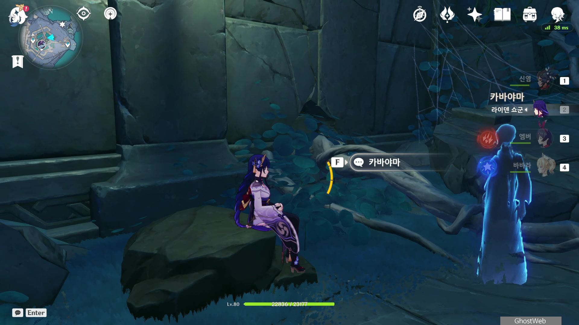 카바야마를 만나기 위해서는 지도에서 다이니치 미코시(상야) 글자 중 <미>자가 써 있는 부분으로 이동하면 땅에 그려진 길 중 벽면으로 향하는 길을 따라 벽 입구로 들어가서 안 쪽에 있는 돌에 앉으면 <카바야마> NPC를 만날 수 있어요.