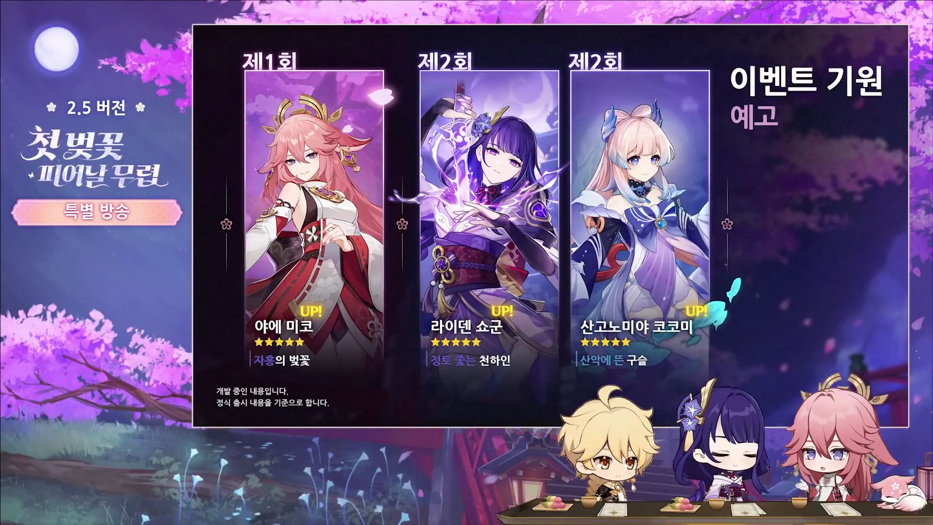 - 제2회 : 라이덴 쇼군 (5성, 번개 원소, 장병기, 정토 좇는 천하인)