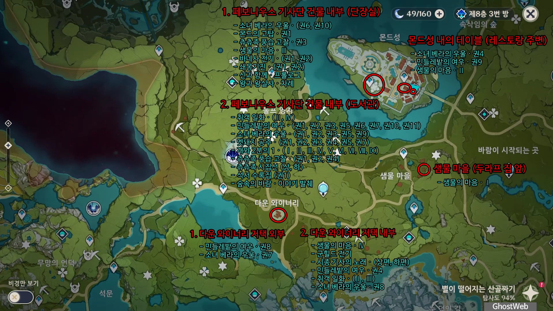 이번에는 몬드 지역에서 얻을 수 있는 서적(책)의 위치를 정리해보았어요.