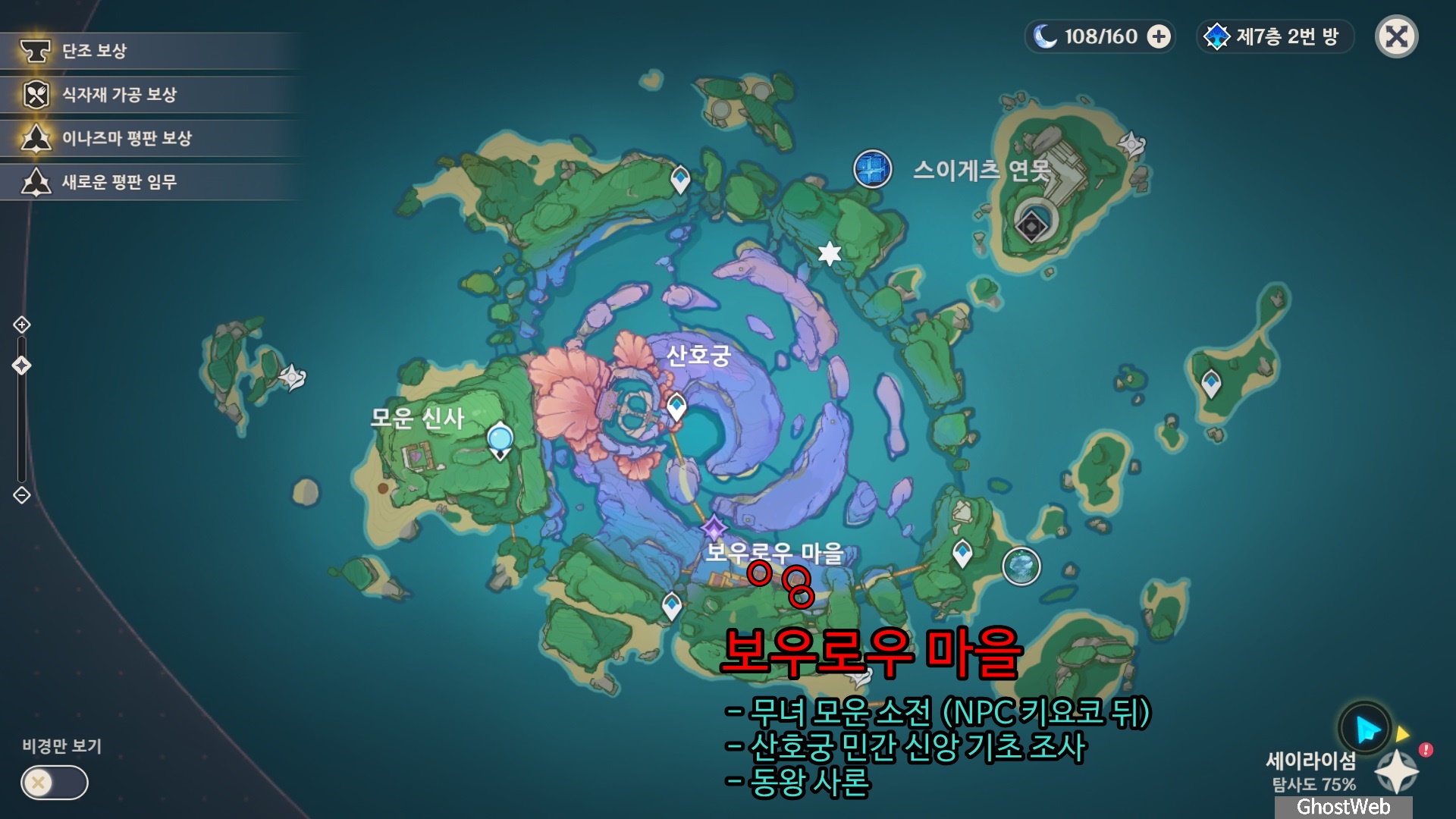 | [원신] 안개 바다 기행 - 요구가 너무 많은 작가 (깃털, 서목을 찾아 공양하기, 츠루미섬, 시리코로산 기믹, 문열기) (0) | 2022.02.27 |