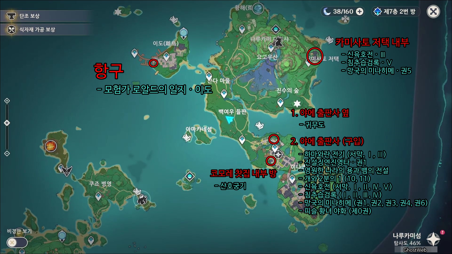 이번에는 이나즈마에서 얻을 수 있는 서적(책)의 위치를 정리하였어요.