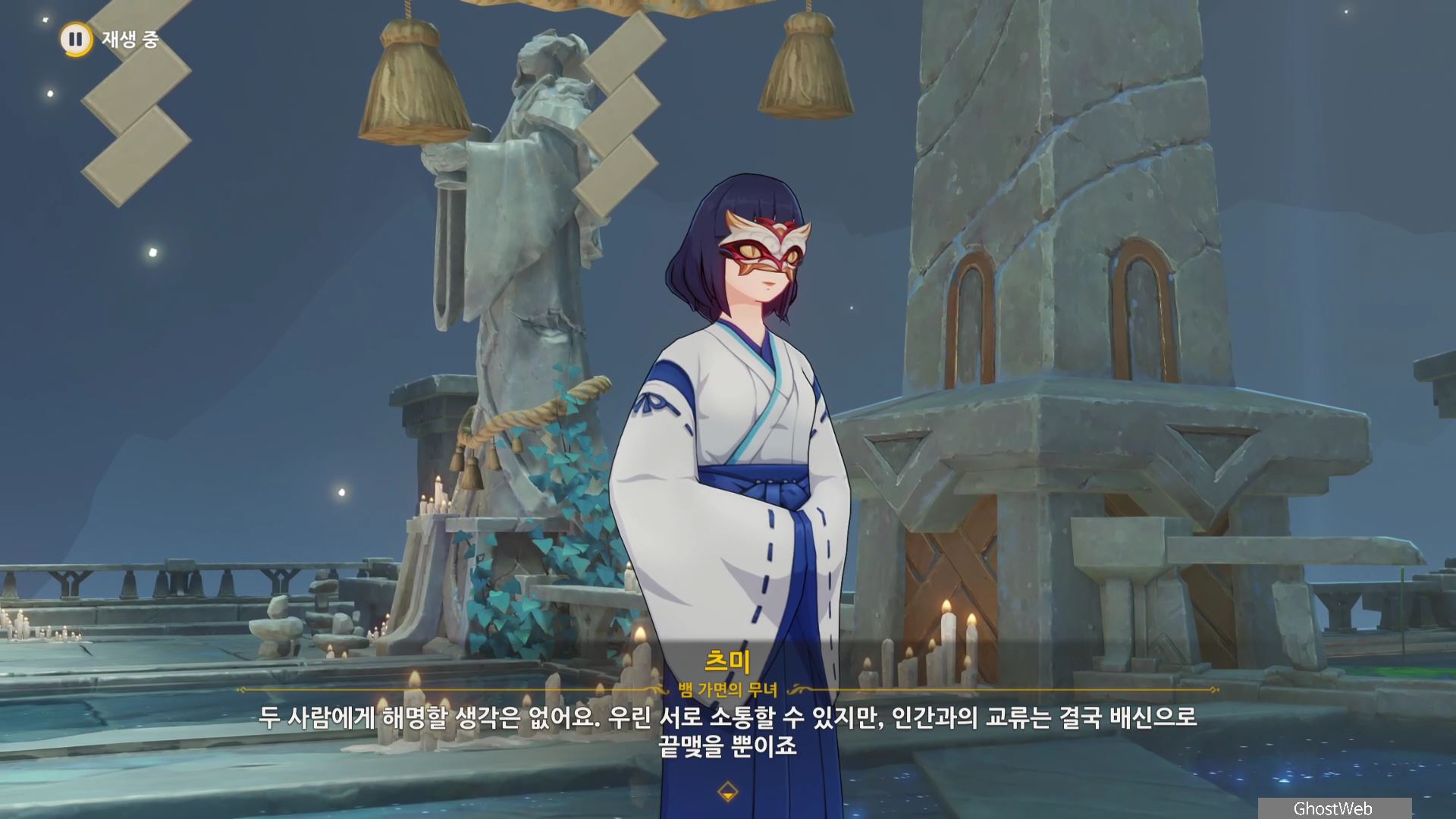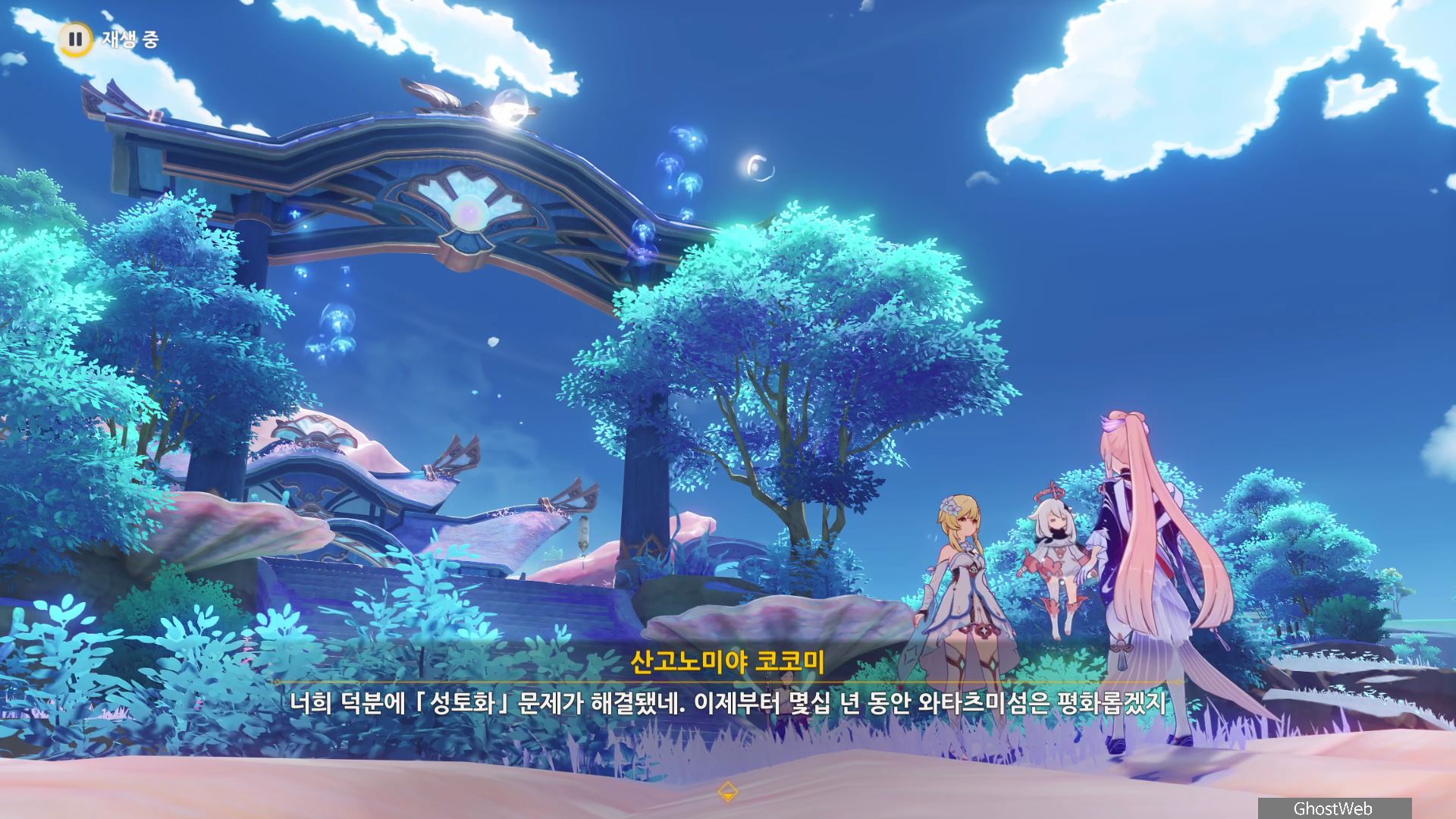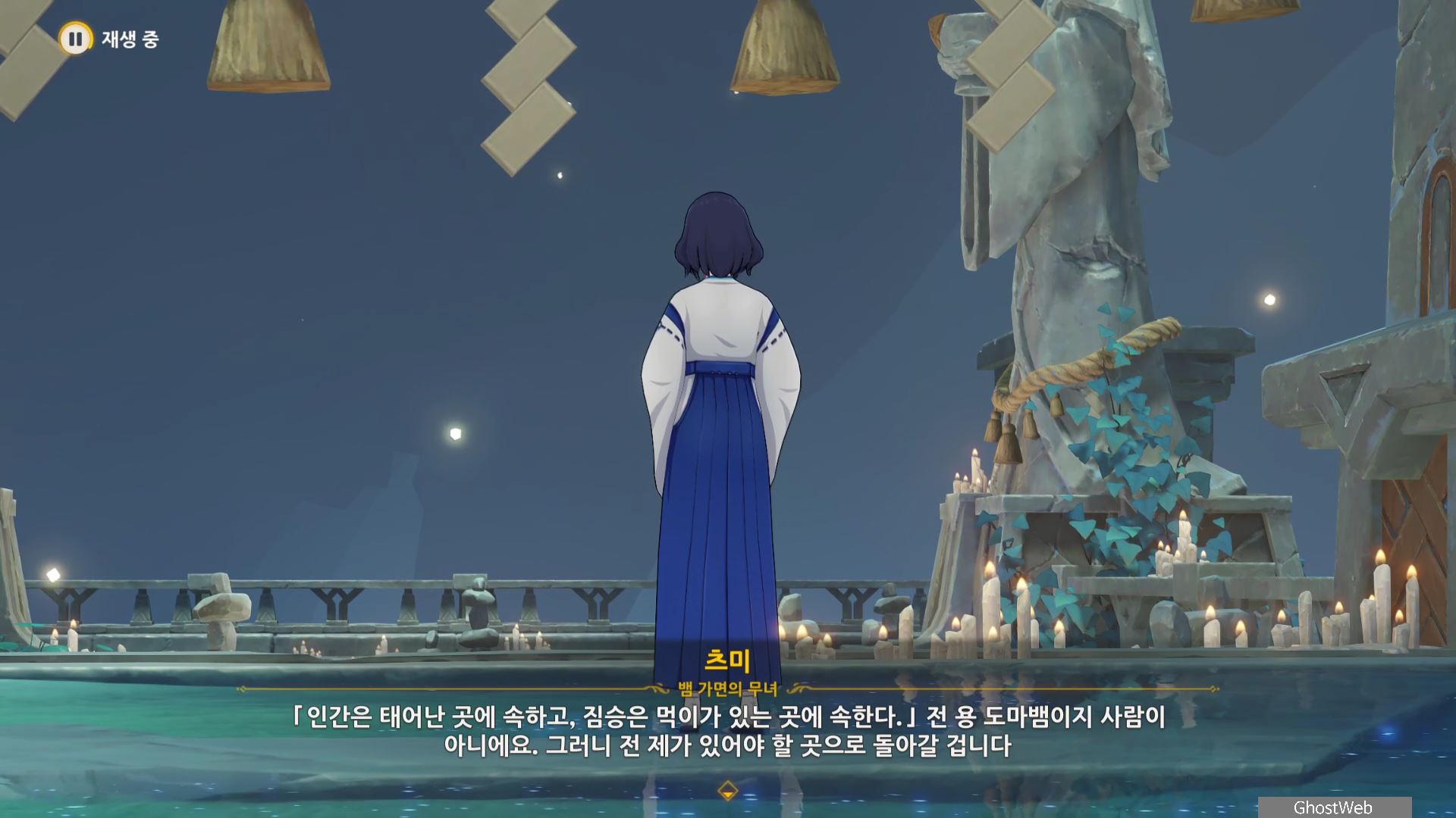 다시 와타츠미섬으로 돌아가 코코미와 대화를 통해 츠미의 정체와 임무를 완료할 수 있어요.