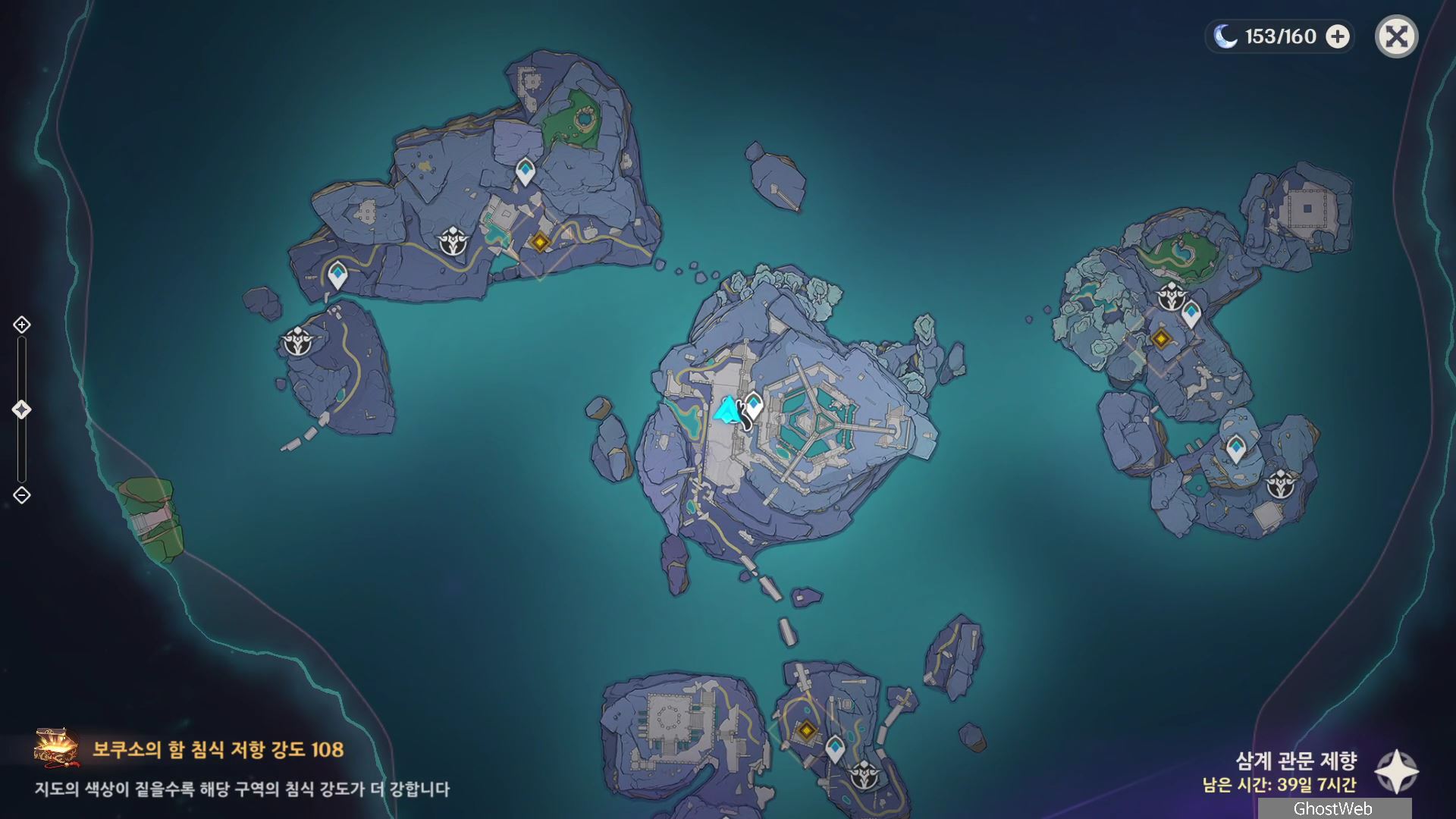 워프 포인트 활성화에는 상세의 협과 5개, 염해 광석 5개가 필요해요.