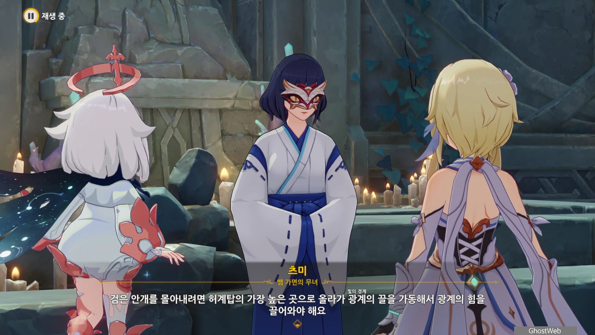 사실 확인을 위해 다이니치 미코시로 돌아가지만 츠미가 사라진 것을 안 여행자와 페이몬은 심연 봉독자가 이야기 했던 3개의 장치를 사용해 빛을 다이니치 미코시로 인도하기로 해요.