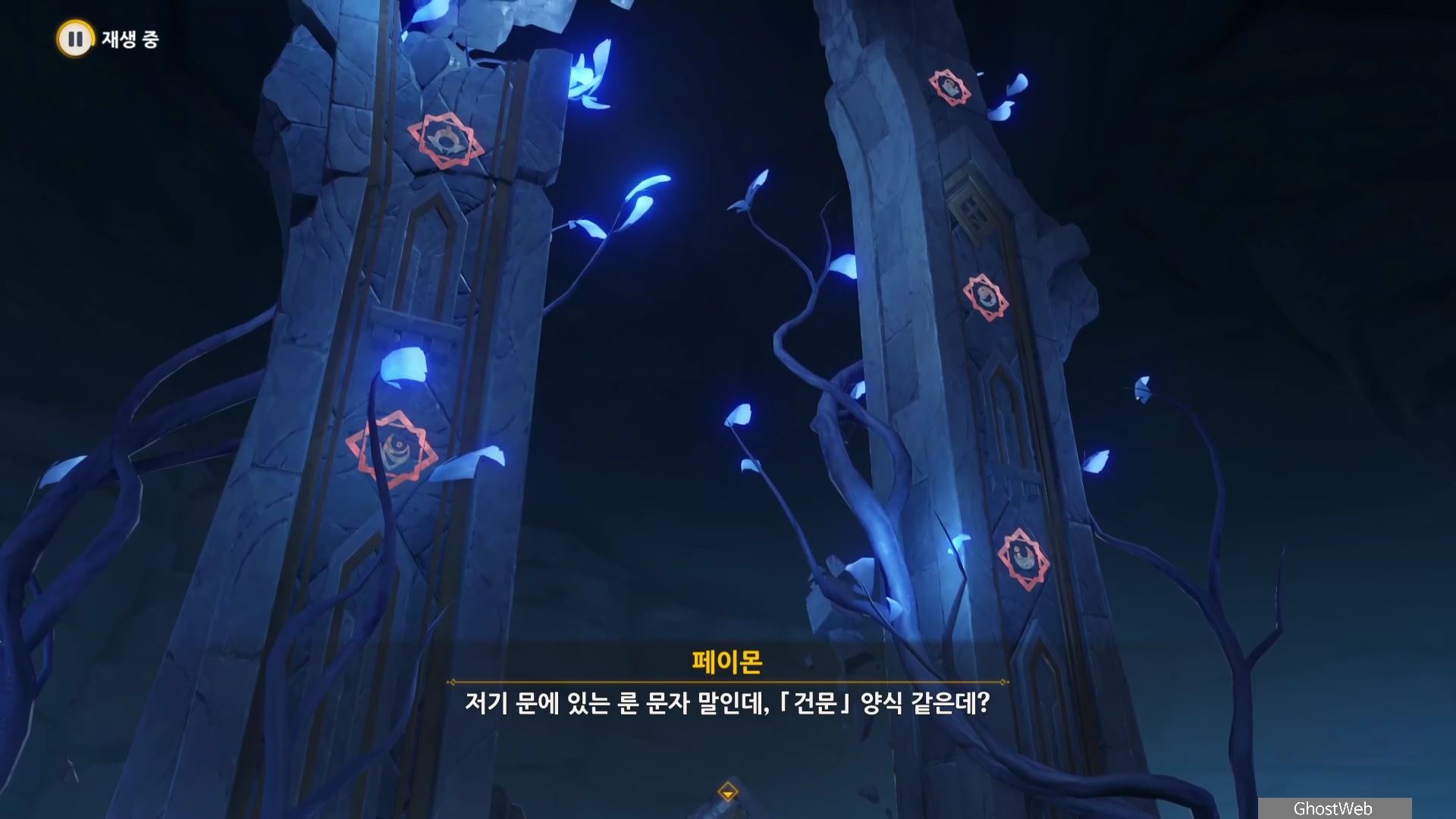 5개의 건문을 모두 활성화하고 문으로 돌아와 장치를 작동하면 문이 활성화 되어 숨겨진 통로가 나타나며 이 통로를 따라 연하궁 내부로 진입하면 돼요. (업적 달성 - 야마천, 또 다른 말로 마라치)