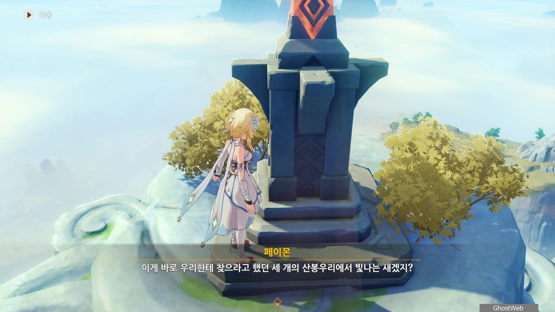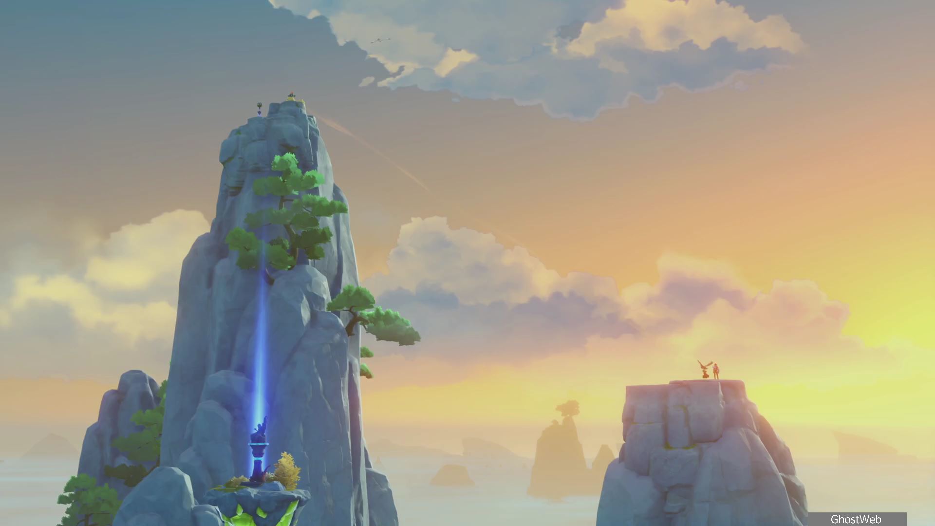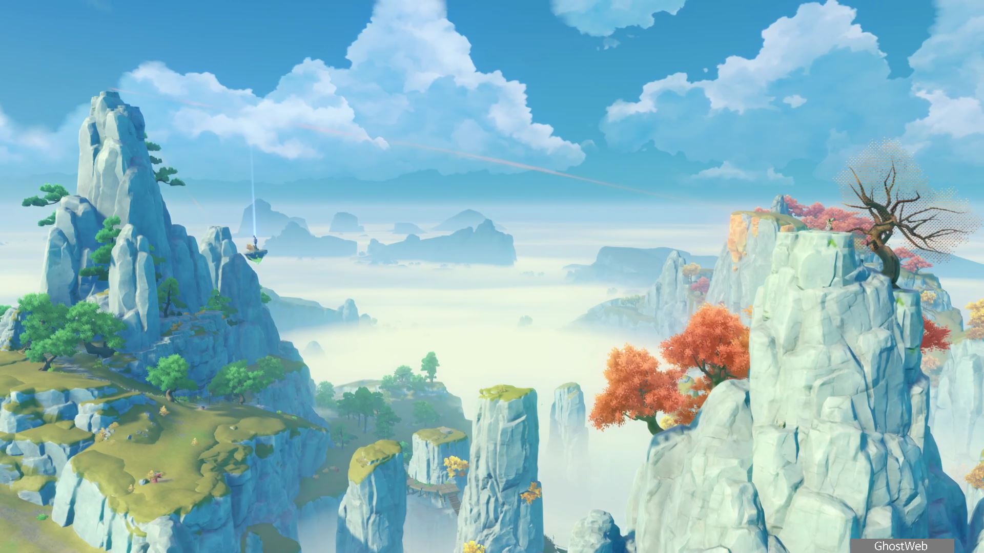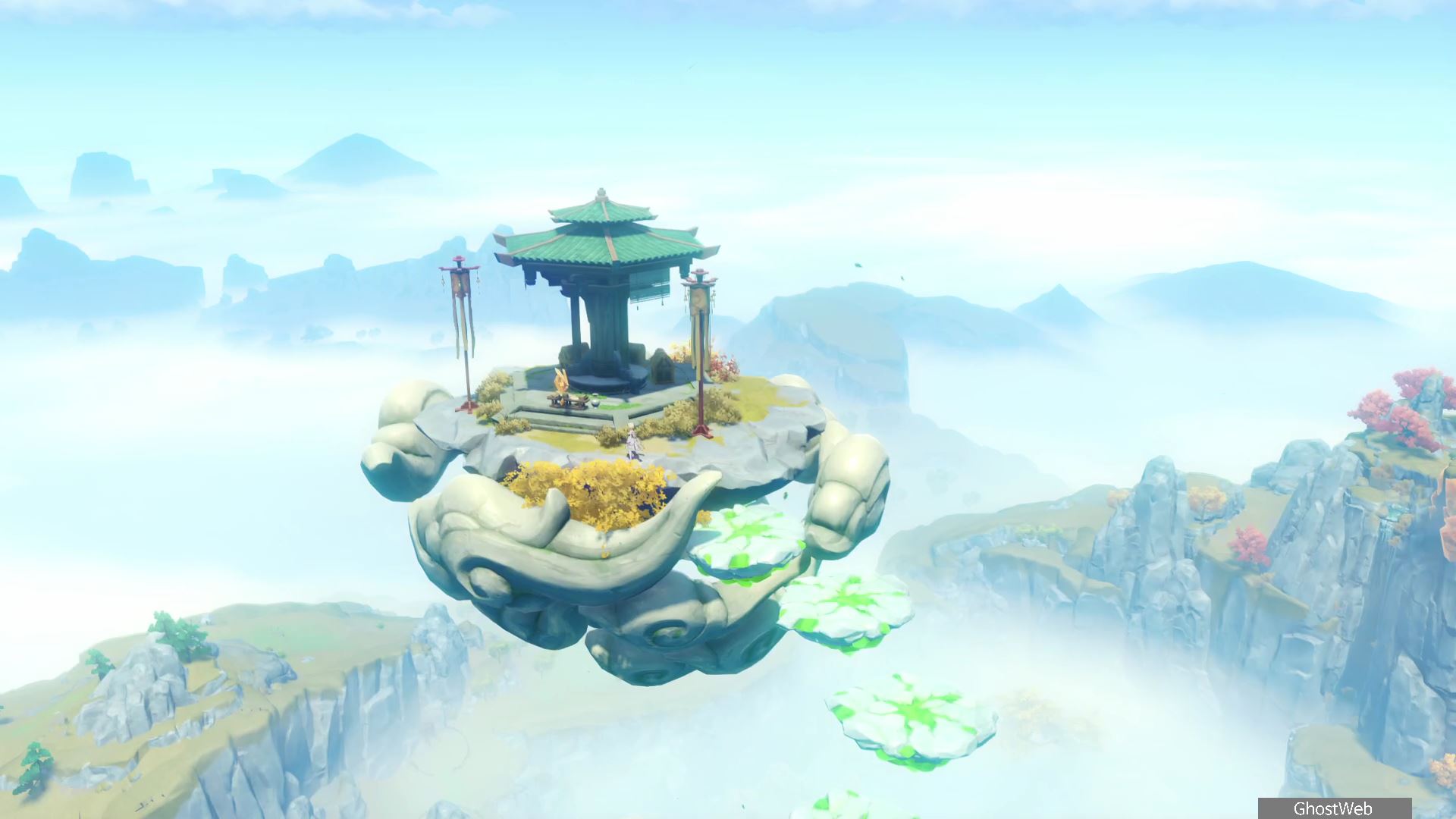 세 개의 산봉우리에 있는 새 동상이 경운봉을 봐라보게 만든 후 다시 경운봉에 있는 장치로 돌아와 장치를 활성화하면 윈드 필드가 생성되는데, 이 윈드 필드를 타로 위로 올라가면 공중에 떠 있는 <구름 속의 선인 거처>에 도착할 수 있으며 <풍경 감상> 업적을 달성과 바위 신의 눈동자를 획득 할 수 있어요.