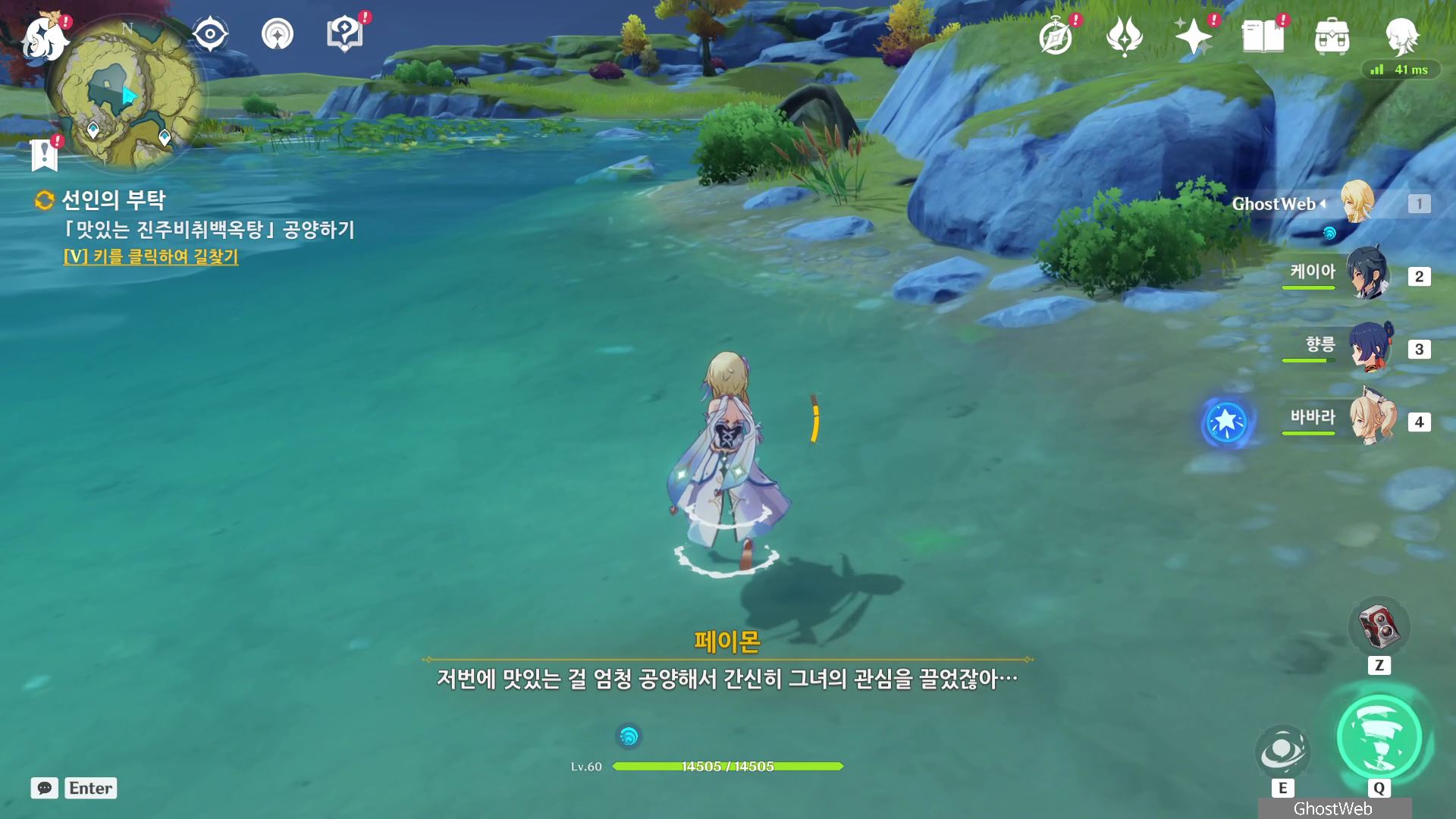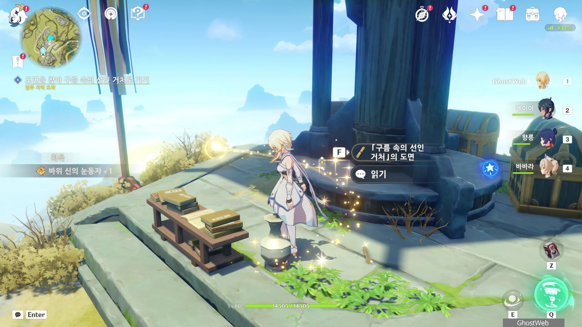 선인의 부탁은 스토리 제1장 / 제2막 - 오래된 몸과의 이별을 완료 이후 리월에 오장산 꼭대기에 있는 호수에 가면 자동적으로 임무를 시작할 수 있으며, 임무를 크게 3개 파트로 나눌 수 있어요.