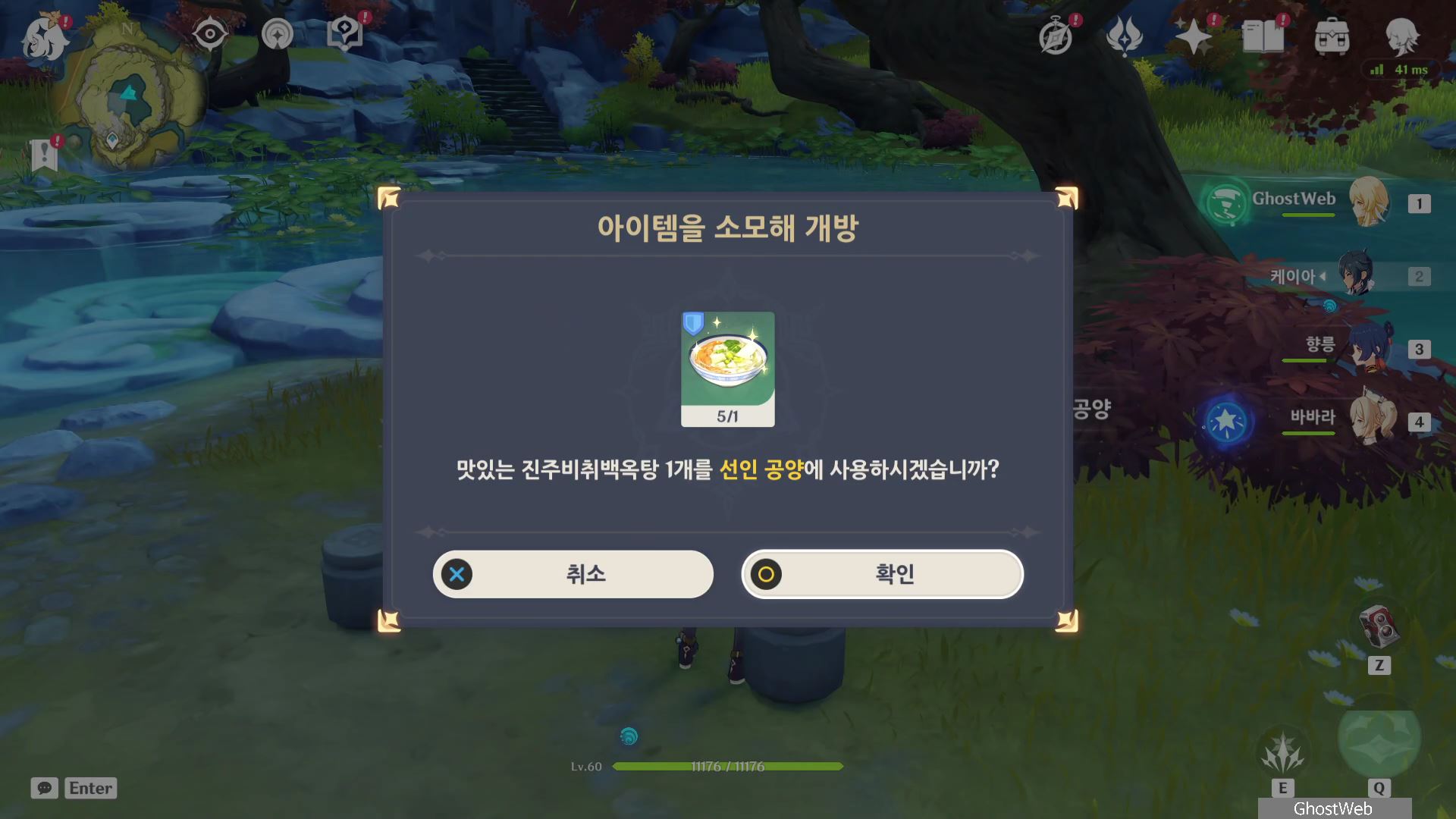 우선 임무 진행을 위해서는 <맛있는 진주비취백옥탕>을 주변에 있는 요리 화로에서 만들어서 호수 중앙에 있는 테이블에서 <진주백옥탕 공양> 선택하세요. (진주비취백옥탕이 있을 경우 바로 진행 가능)