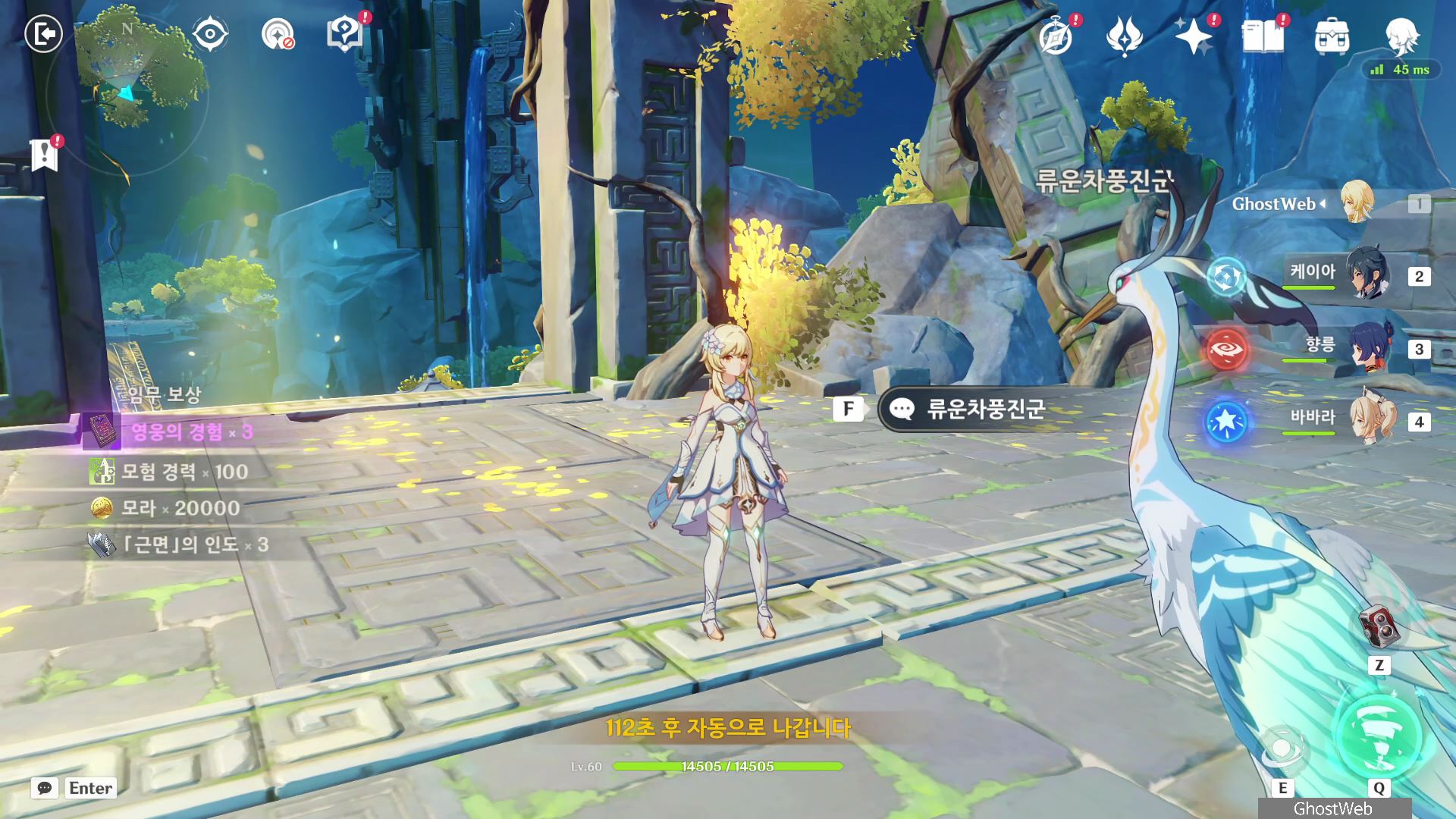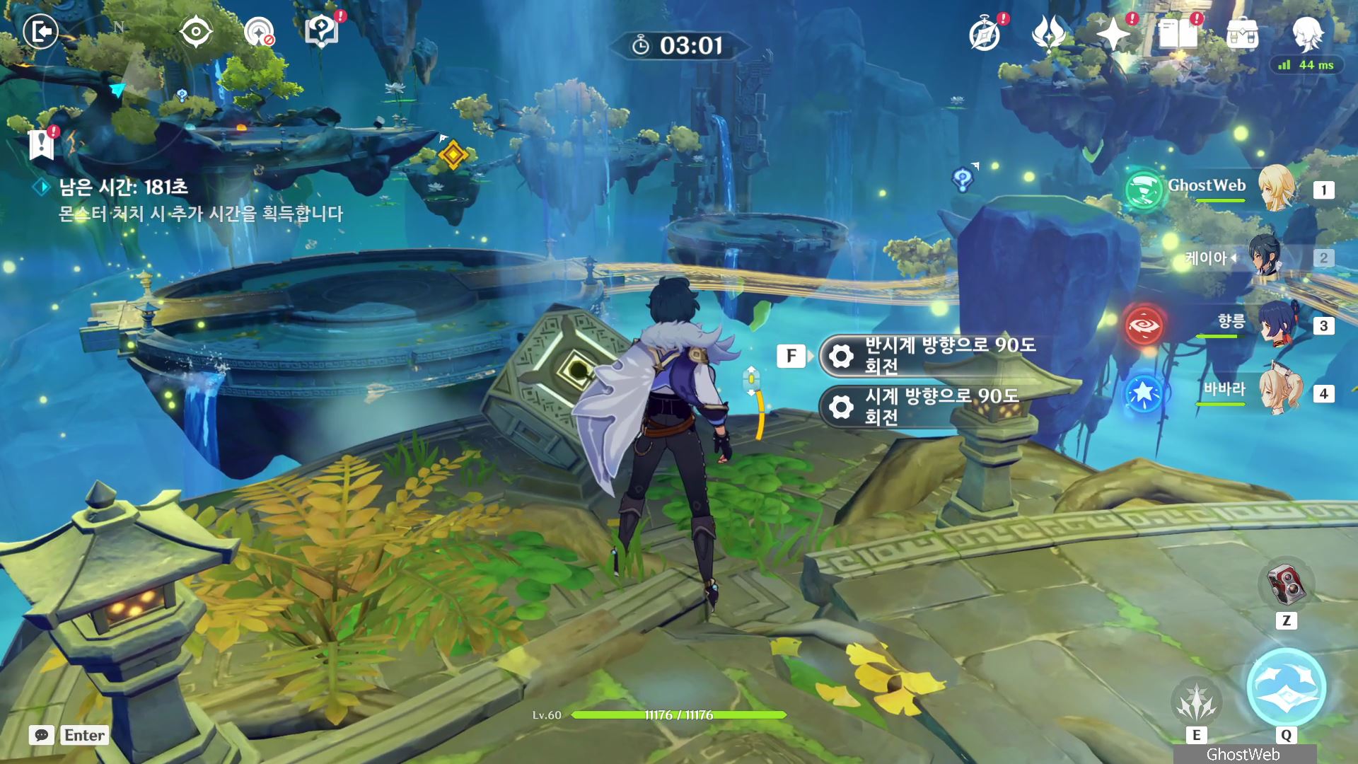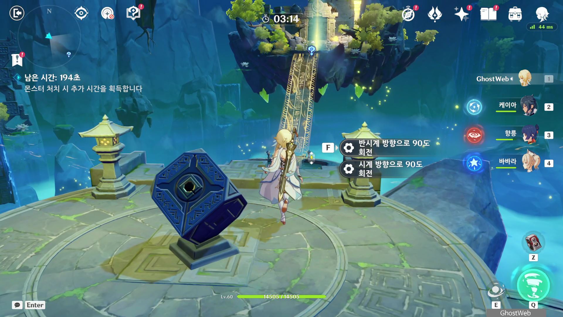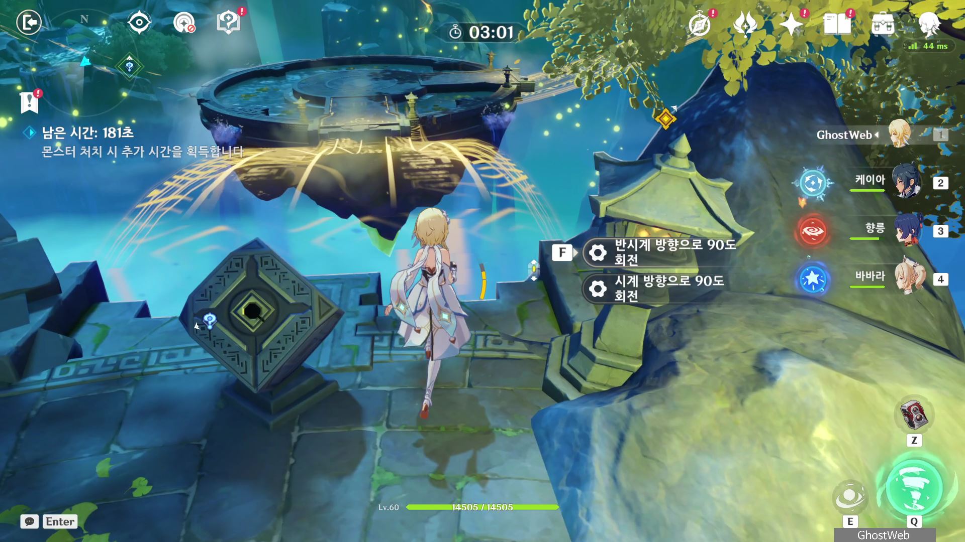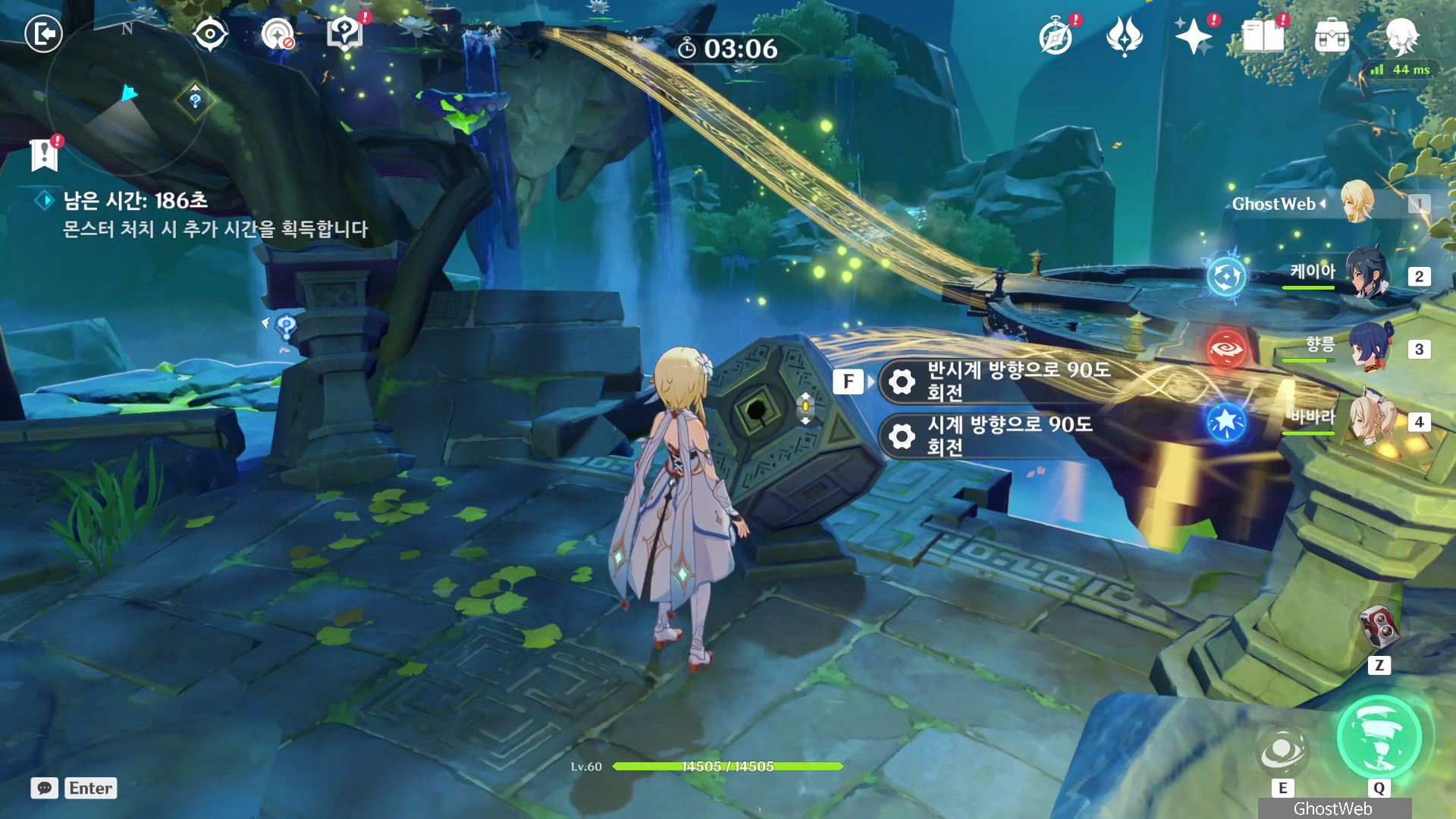 다시 류운차풍진군에게 도면을 건네주기 위해 오장산으로 돌아가 거처로 들어가면 이전에 방문했던 것처럼 장치와 상호작용하여 다리를 반시계/시계 방향으로 돌려 길을 만들며 가야되는데 기본 150초 제한시간이 있어 주변에 몬스터를 처치하여 제한시간을 늘릴 수 있어요.