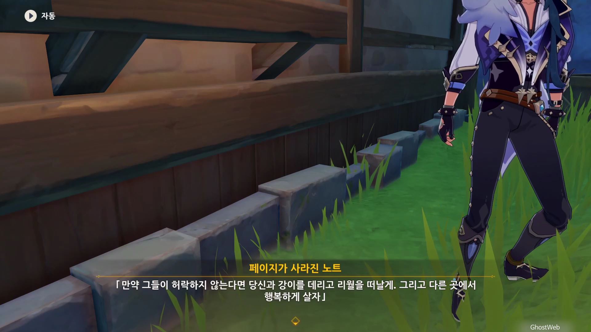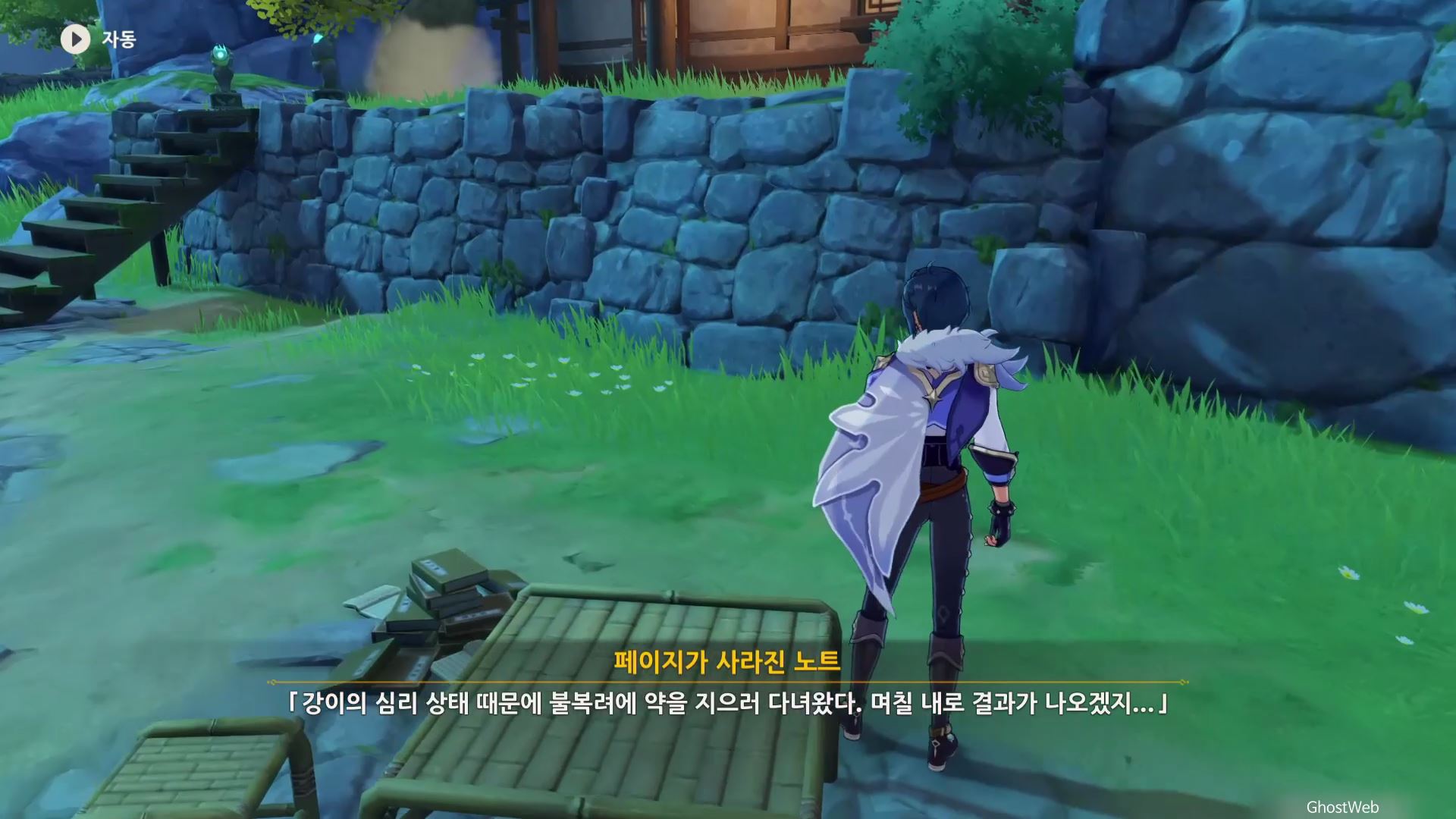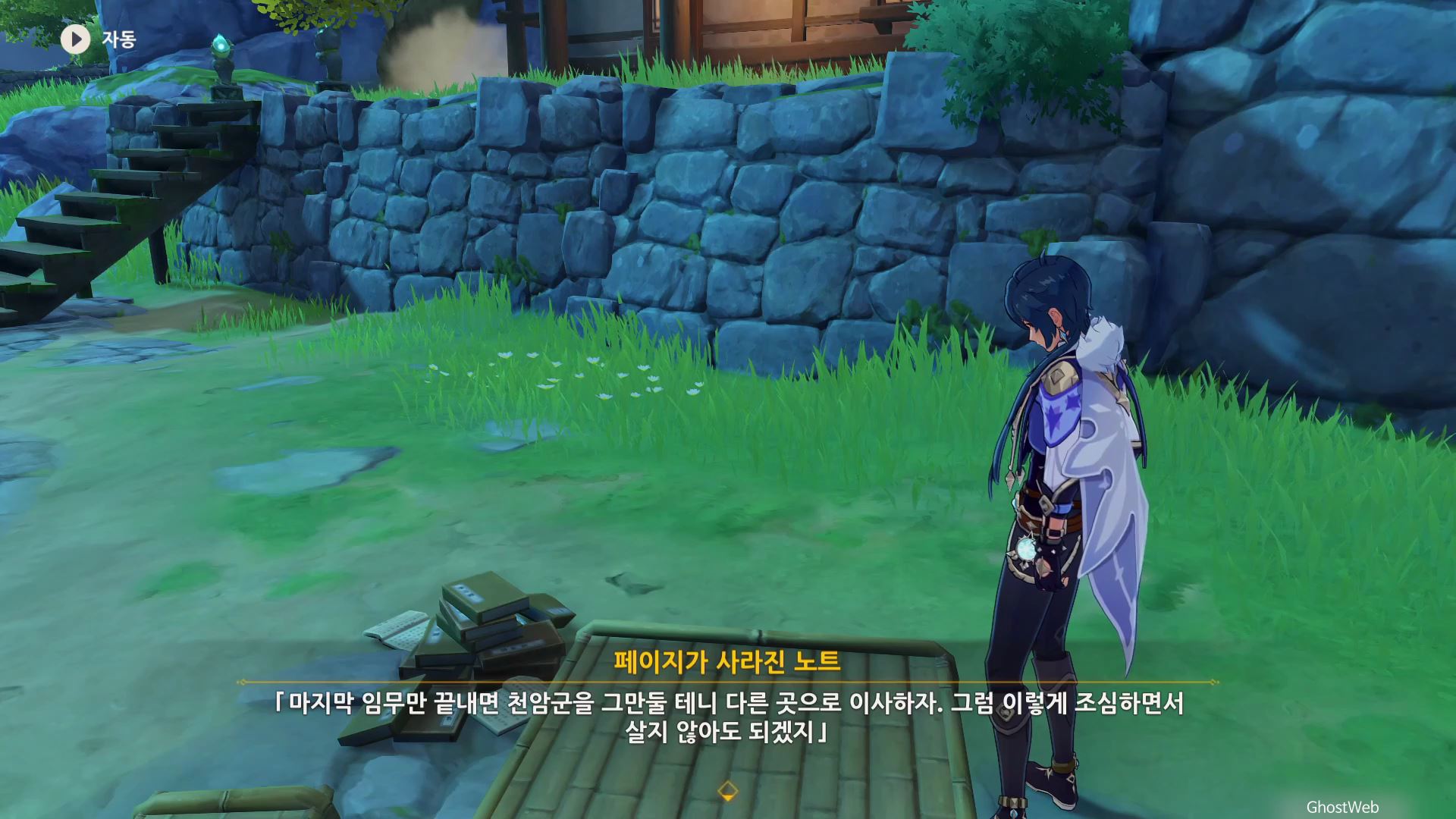 그리고 집 앞 테이블에 있는 <페이지가 사라진 노트>를 통해 강이에 대한 자세한 정보를 얻을 수 있어요.