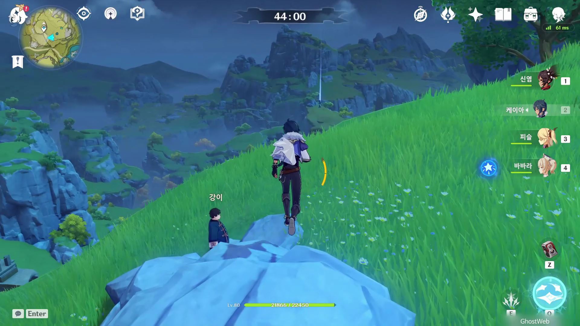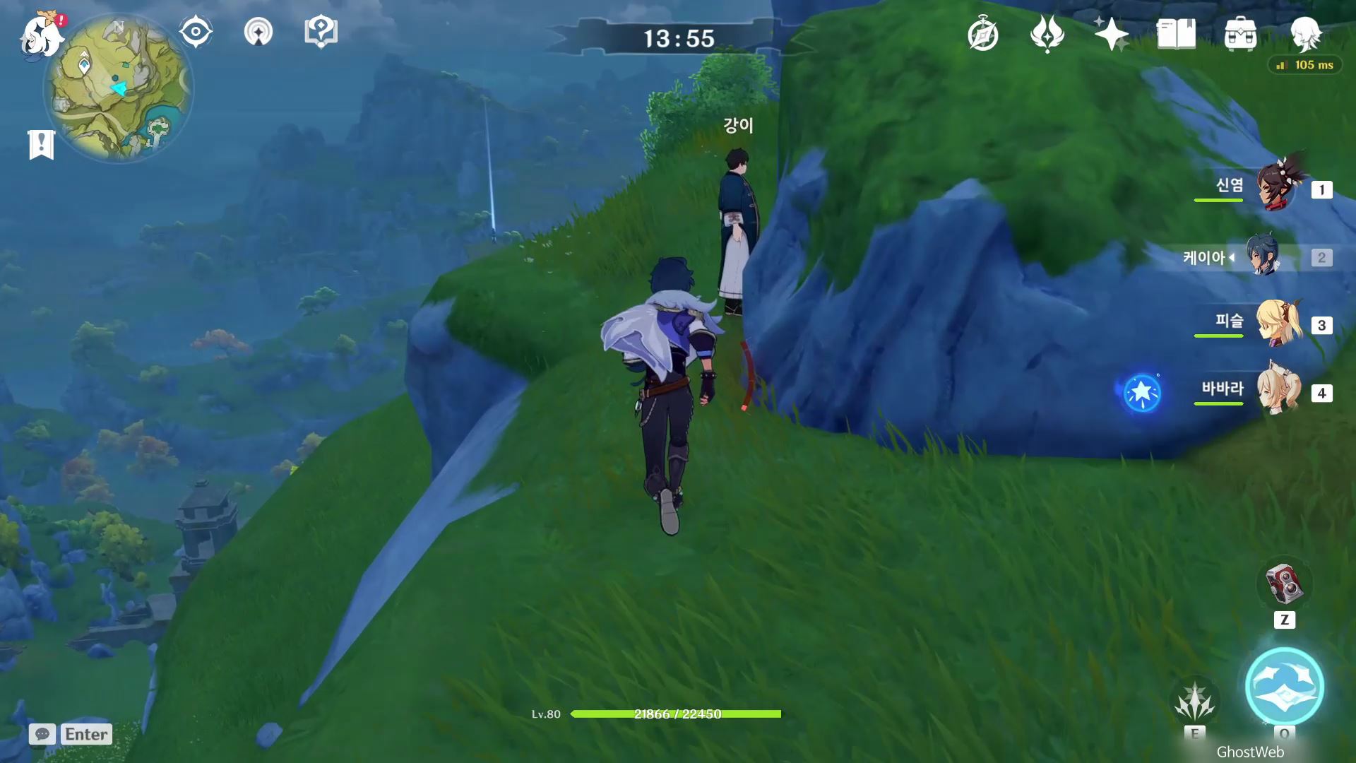 같이 놀자 임무는 지도에서 천형산 12시 방향에 있는 워프 포인트로 이동하여 절벽에 서 있는 강이와 대화를 하면 여행장에게 숨바꼭질을 하자고 해요.
