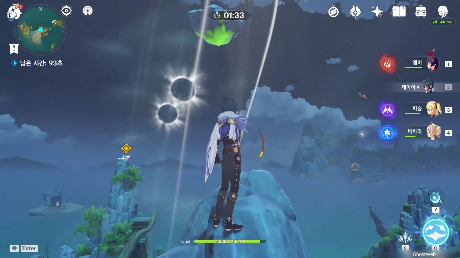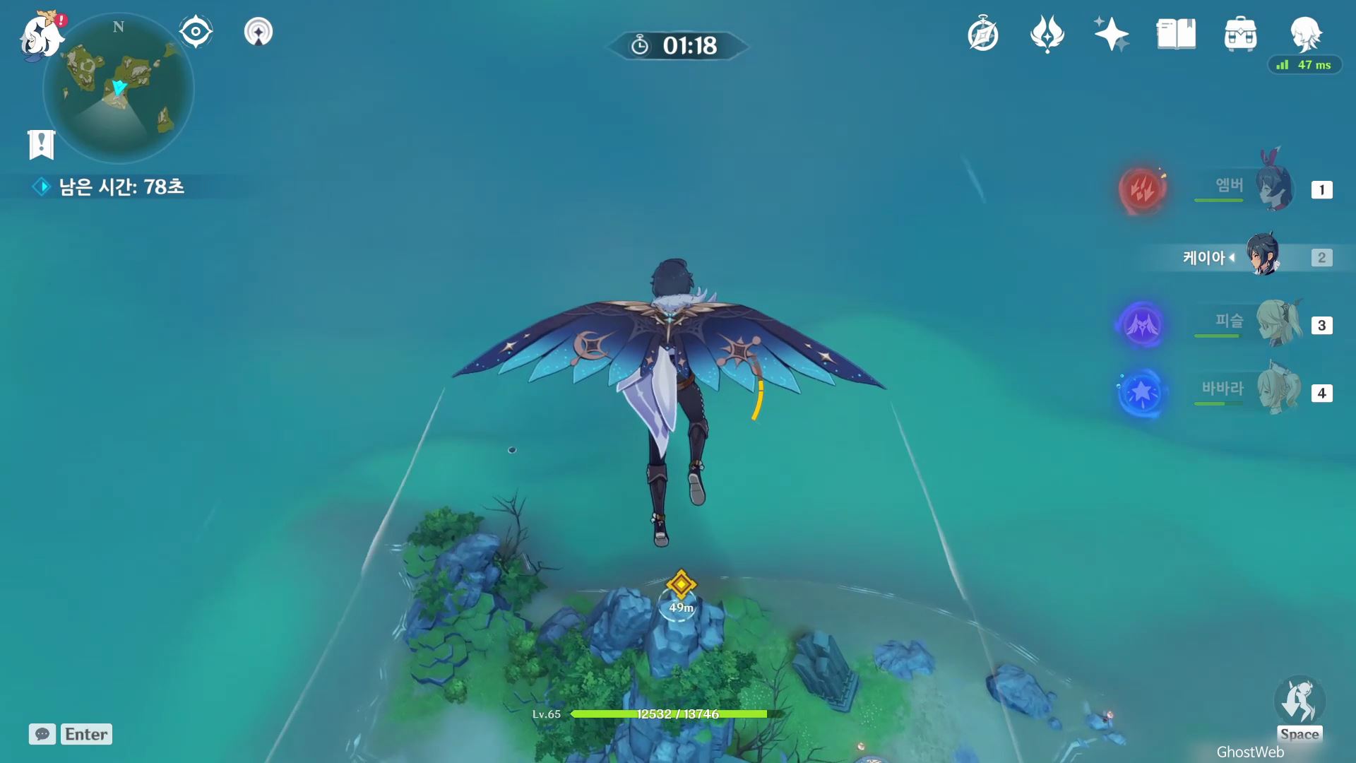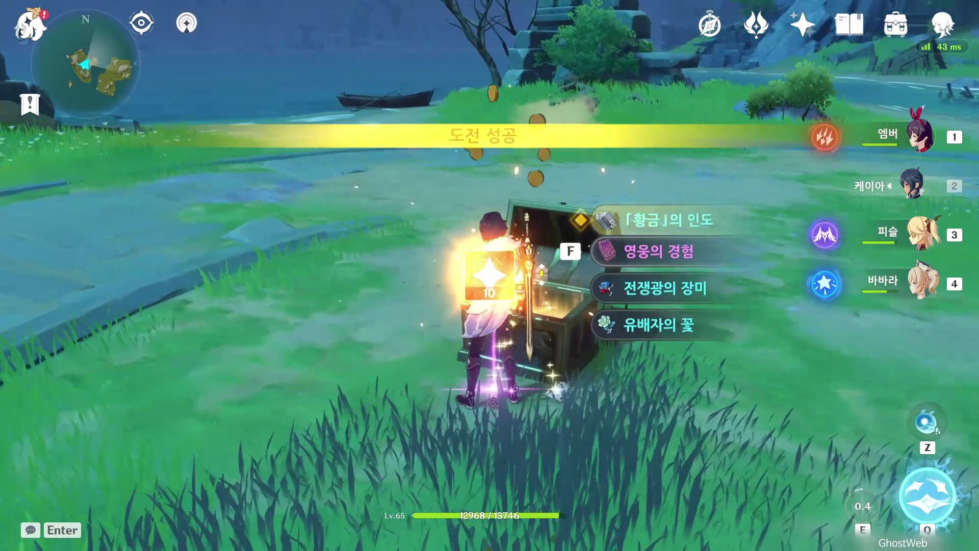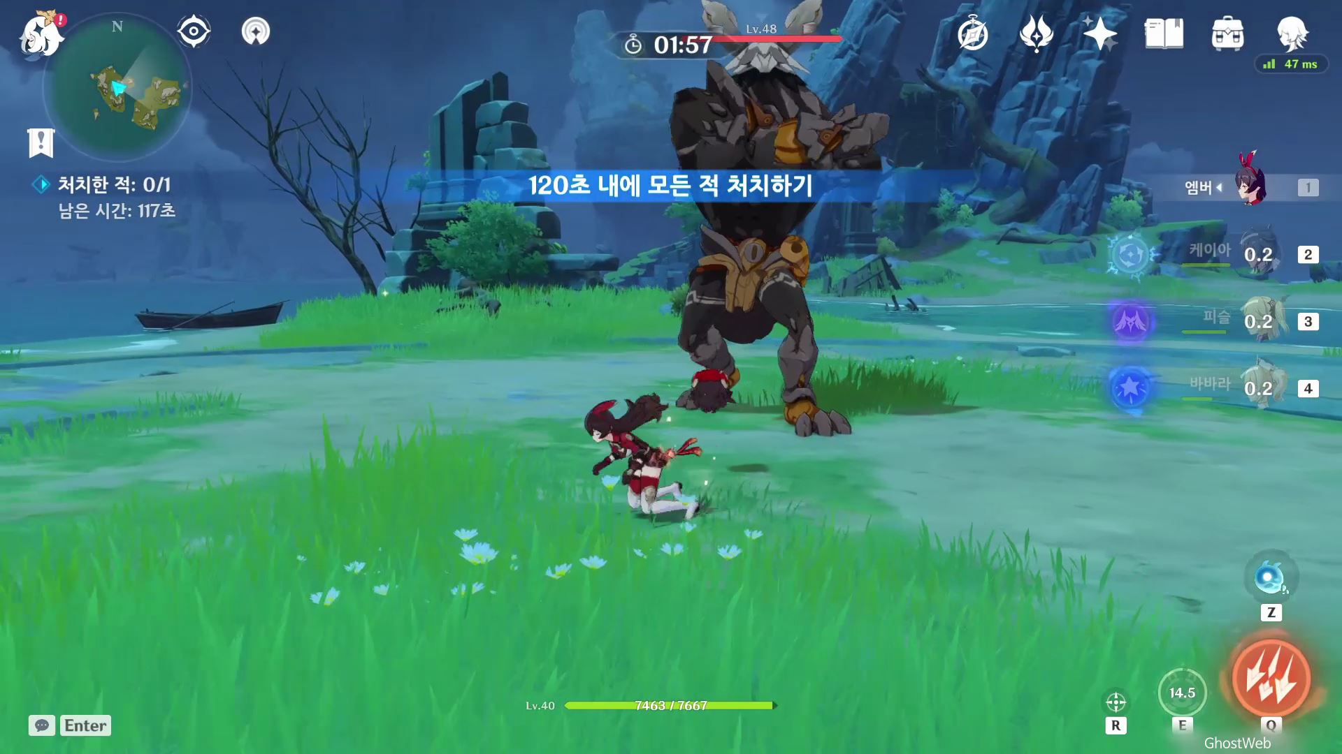 고운각 6시 방향에 있는 섬 근처에 있는 유적 보물에가서 비석을 만지면 <120초 내에 목표 지점에 도착하기>가 시작돼요.