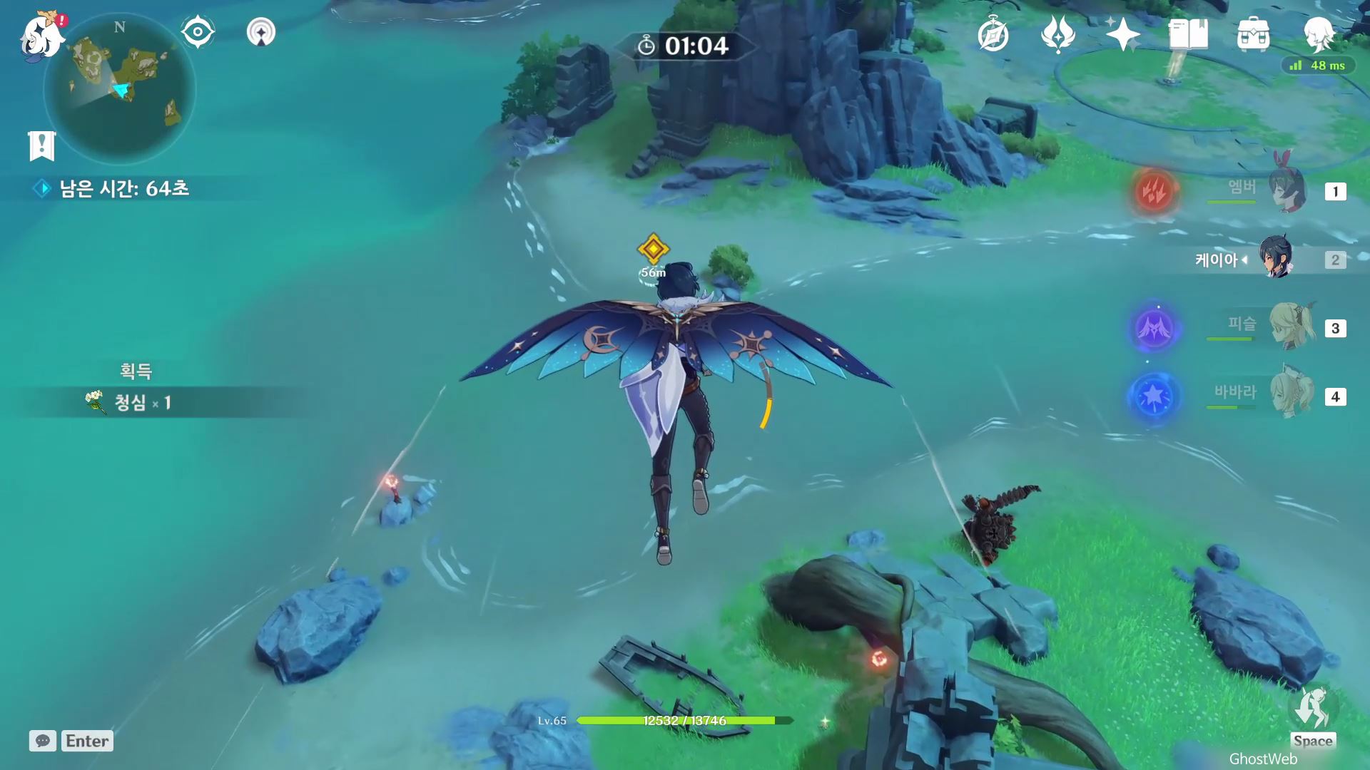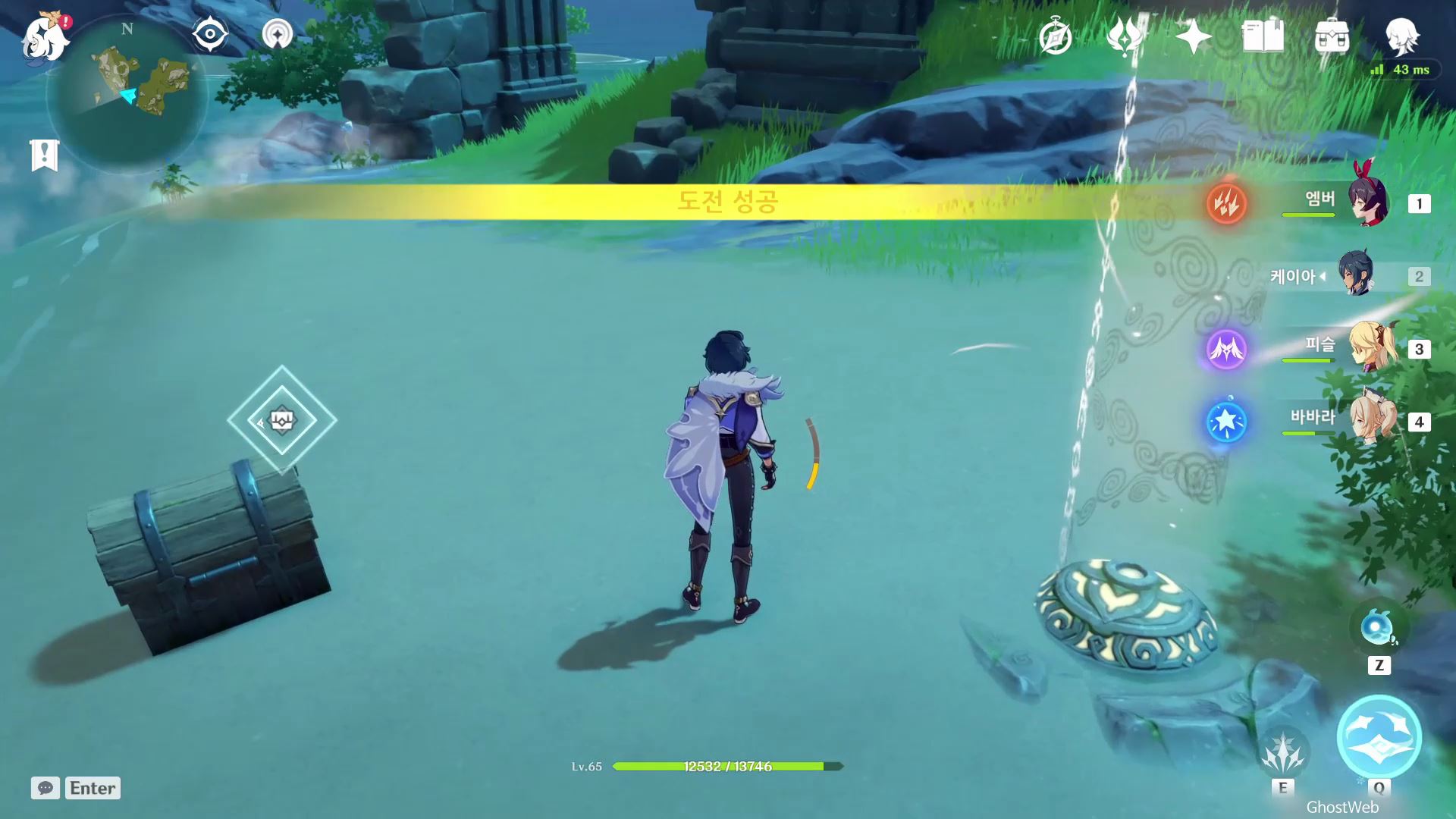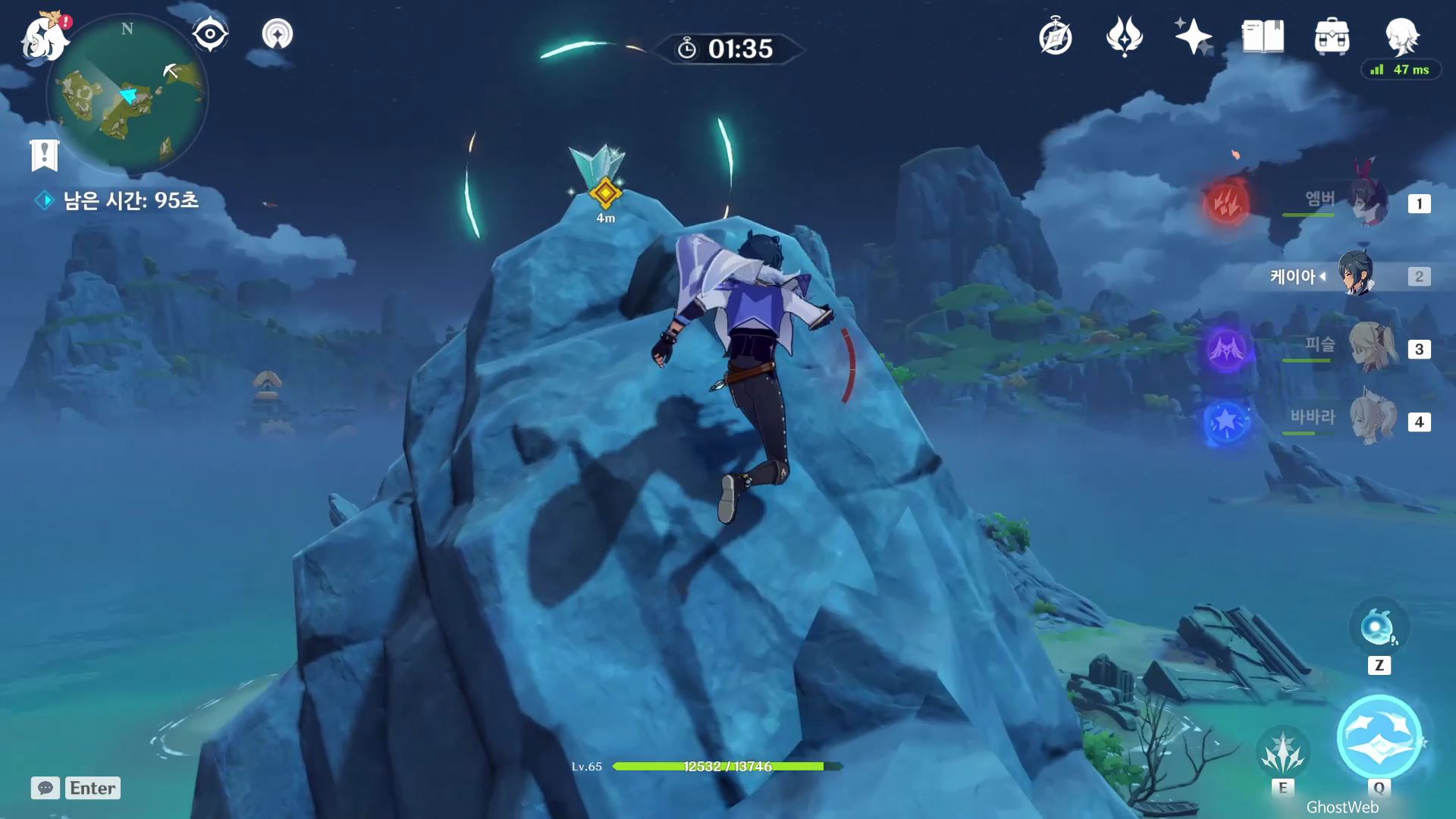 암벽을 타고 올라가 윈드 필드를 타고 다음 돌 봉우리를 이동한 후 다음 유적 보물 쪽으로 이동하면 보물상자가 나타나며 보물상자를 열어 보상을 얻을 수 있어요.