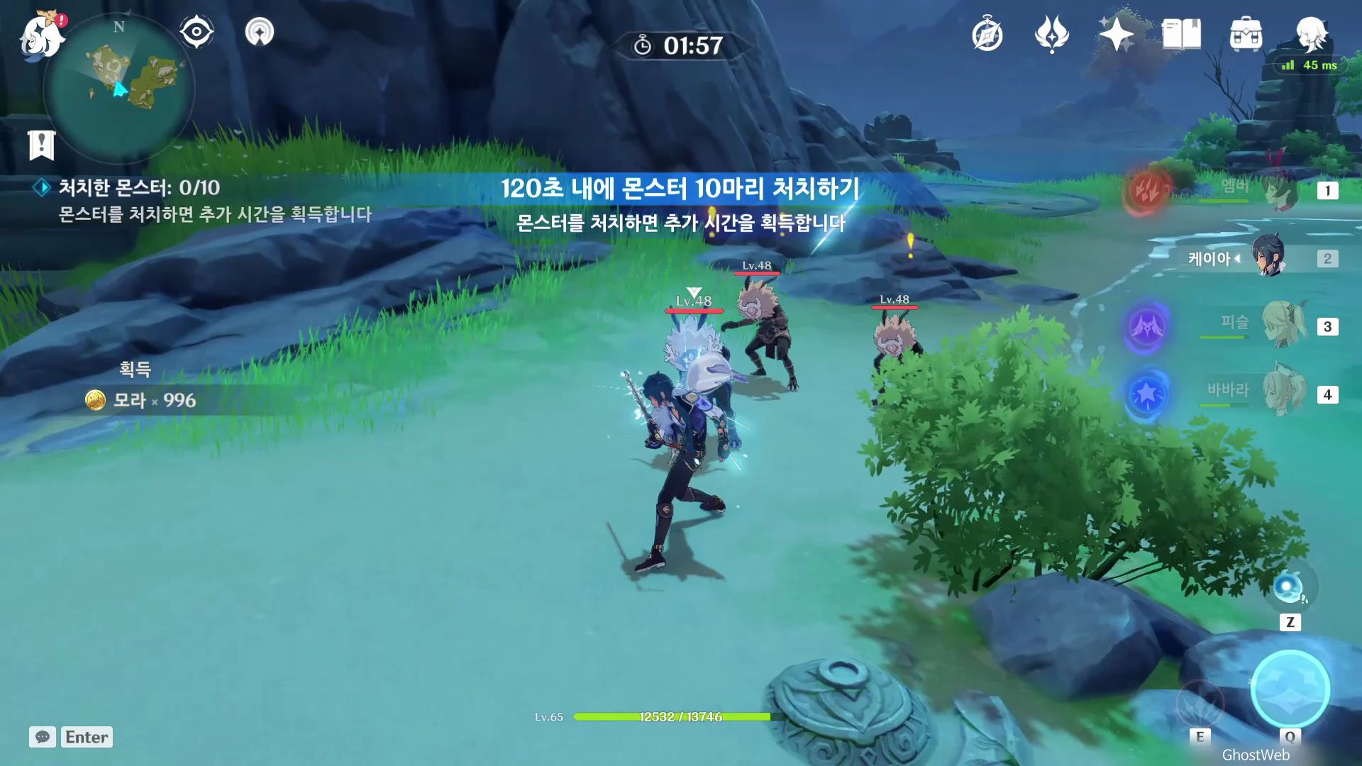 츄츄족, 얼음 슬라임, 츄츄 폭도 등 몬스터를 처치하면 되며, 몬스터를 처치하면 추가 시간을 얻을 수 있어요.