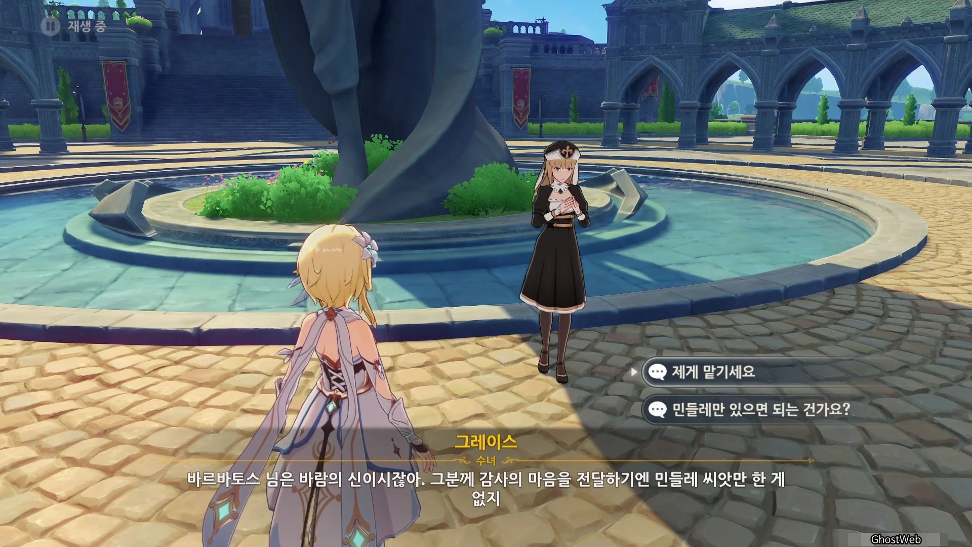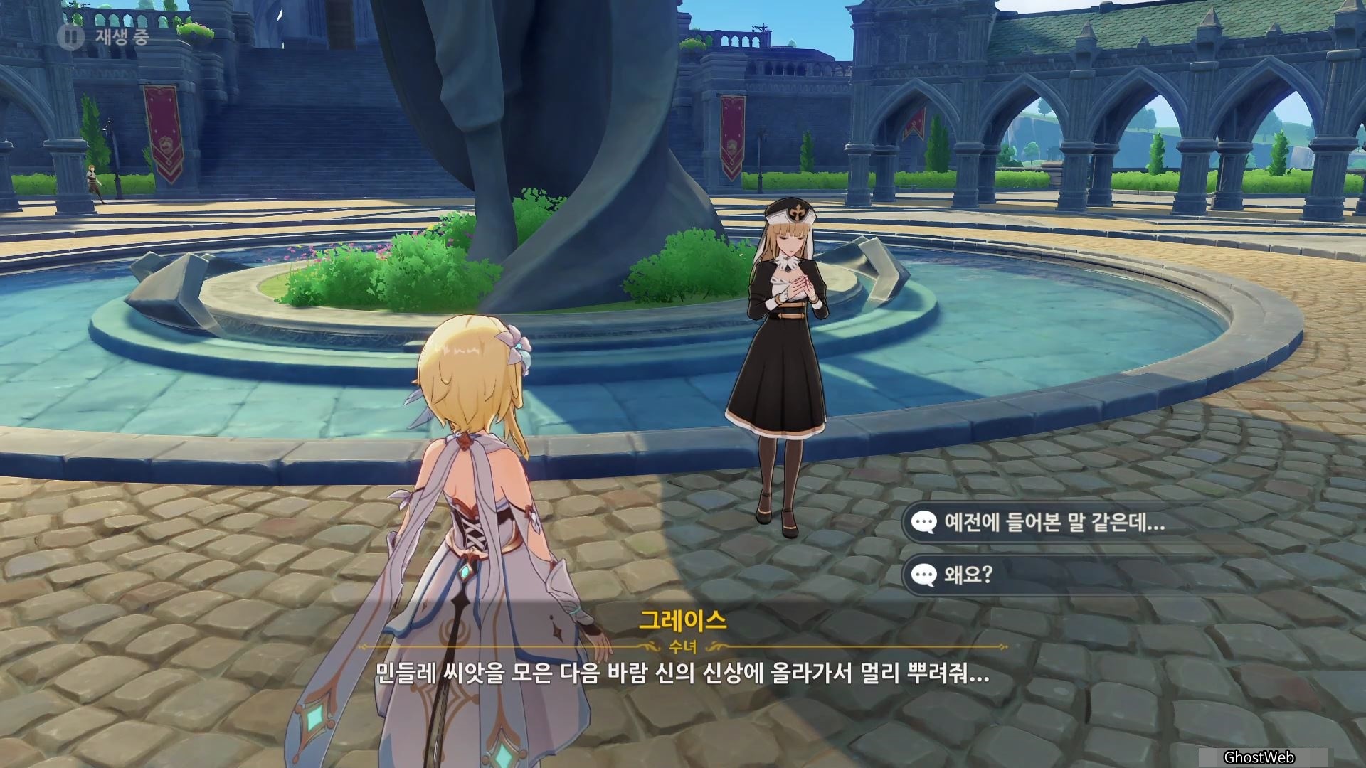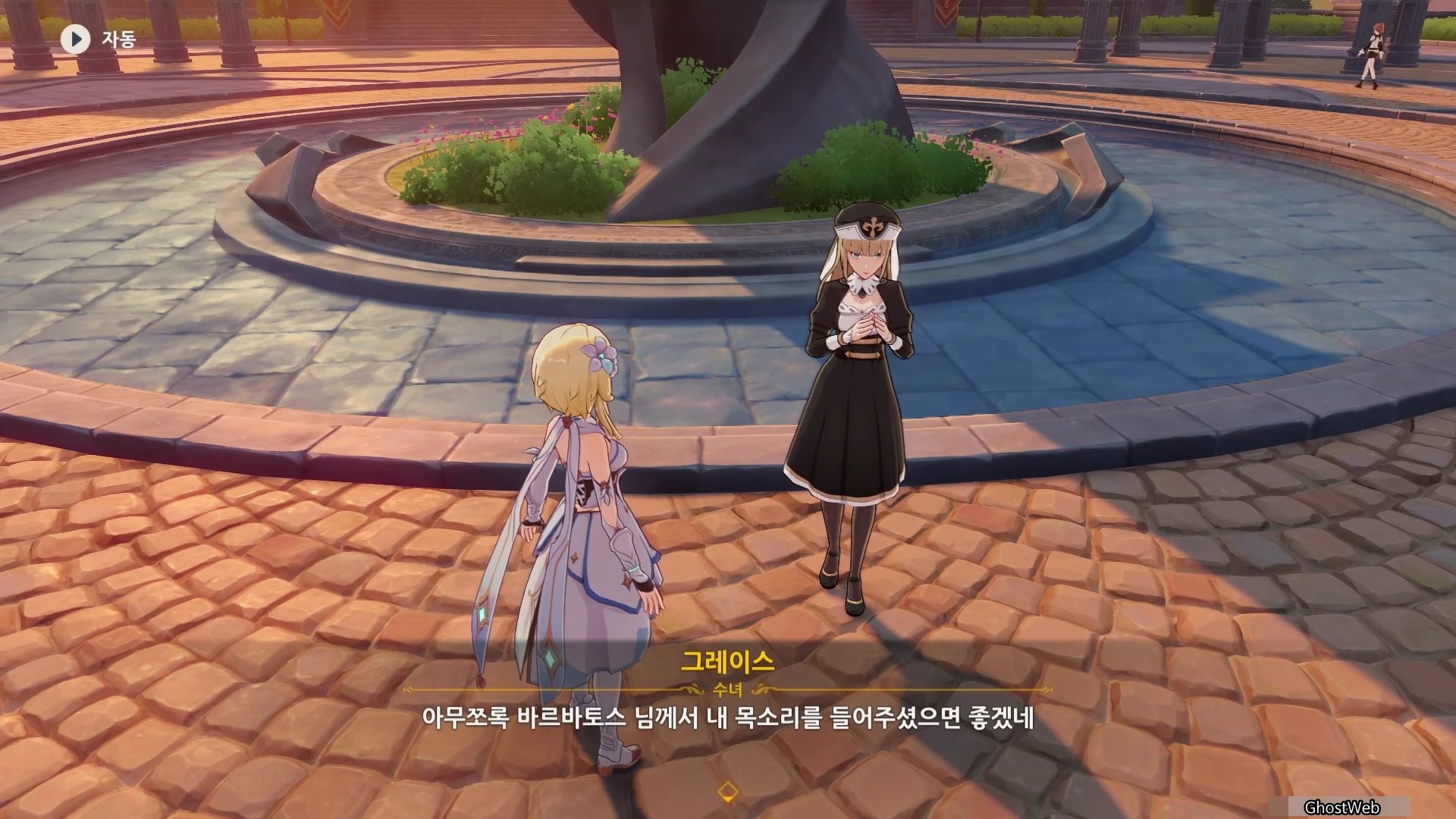 해당 임무는 바람 신의 신상 앞(몬드 성당 앞)에 있는 수녀 <그레이스>에게 대화를 걸면 진행할 수 있어요.