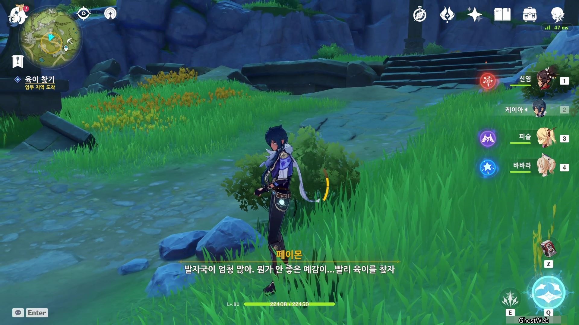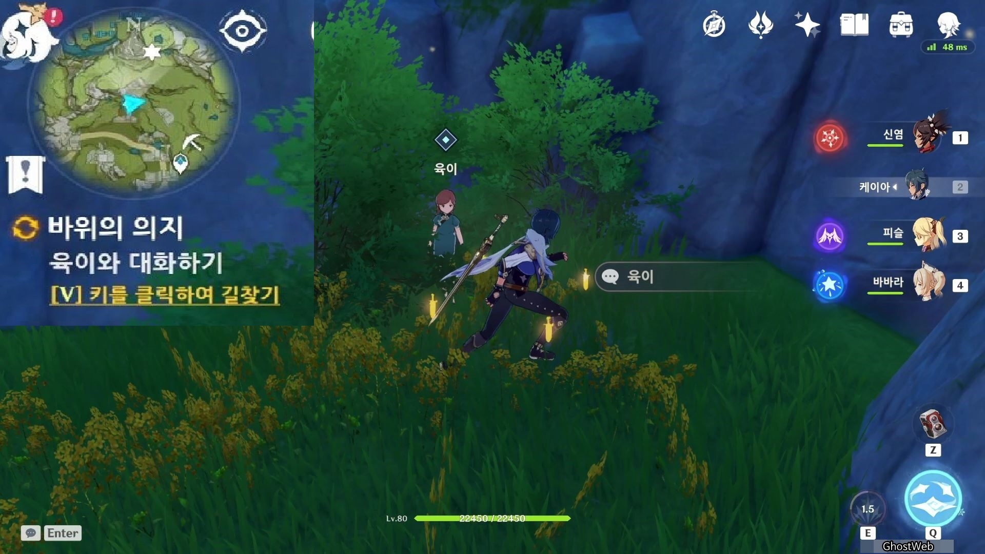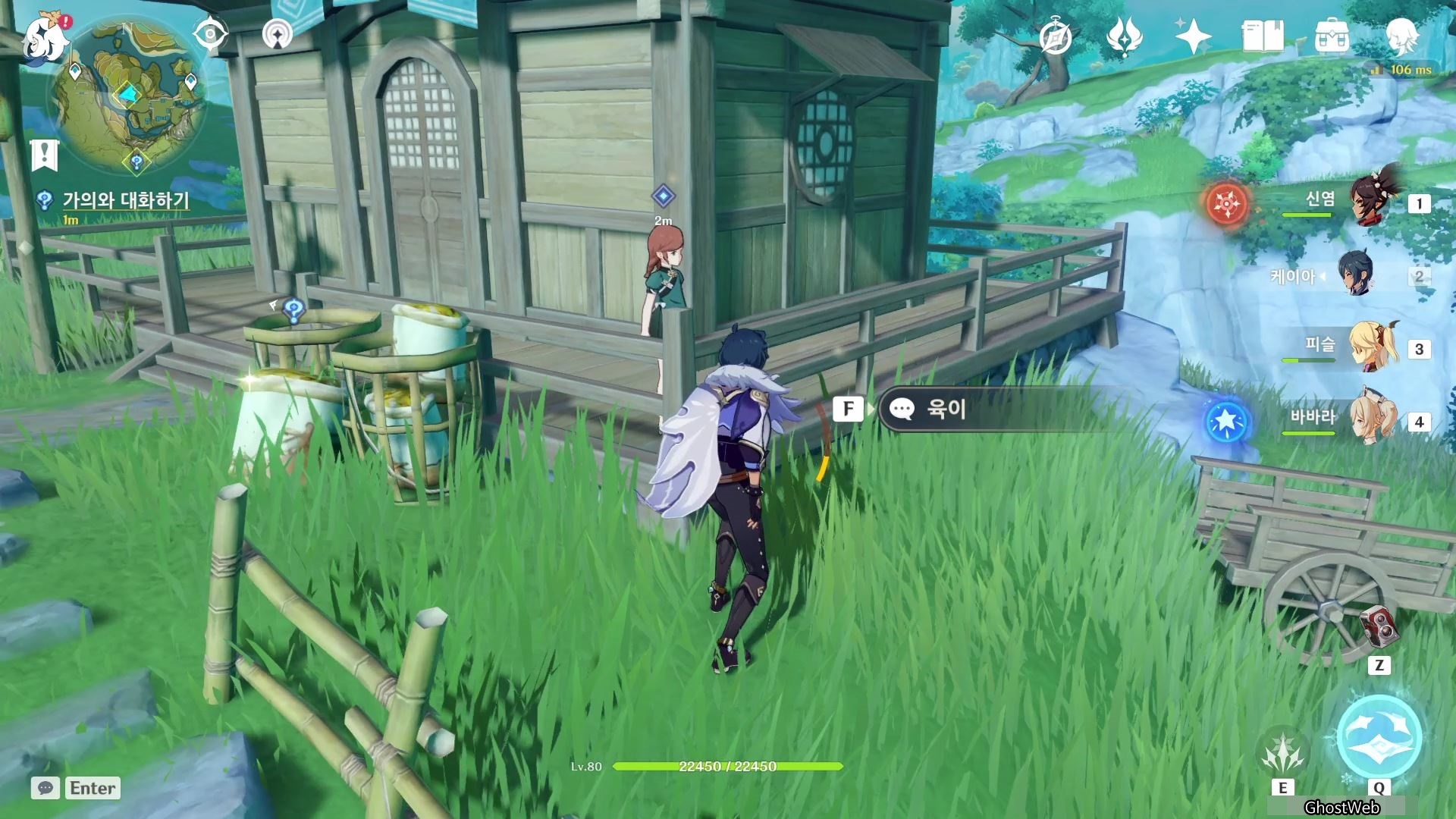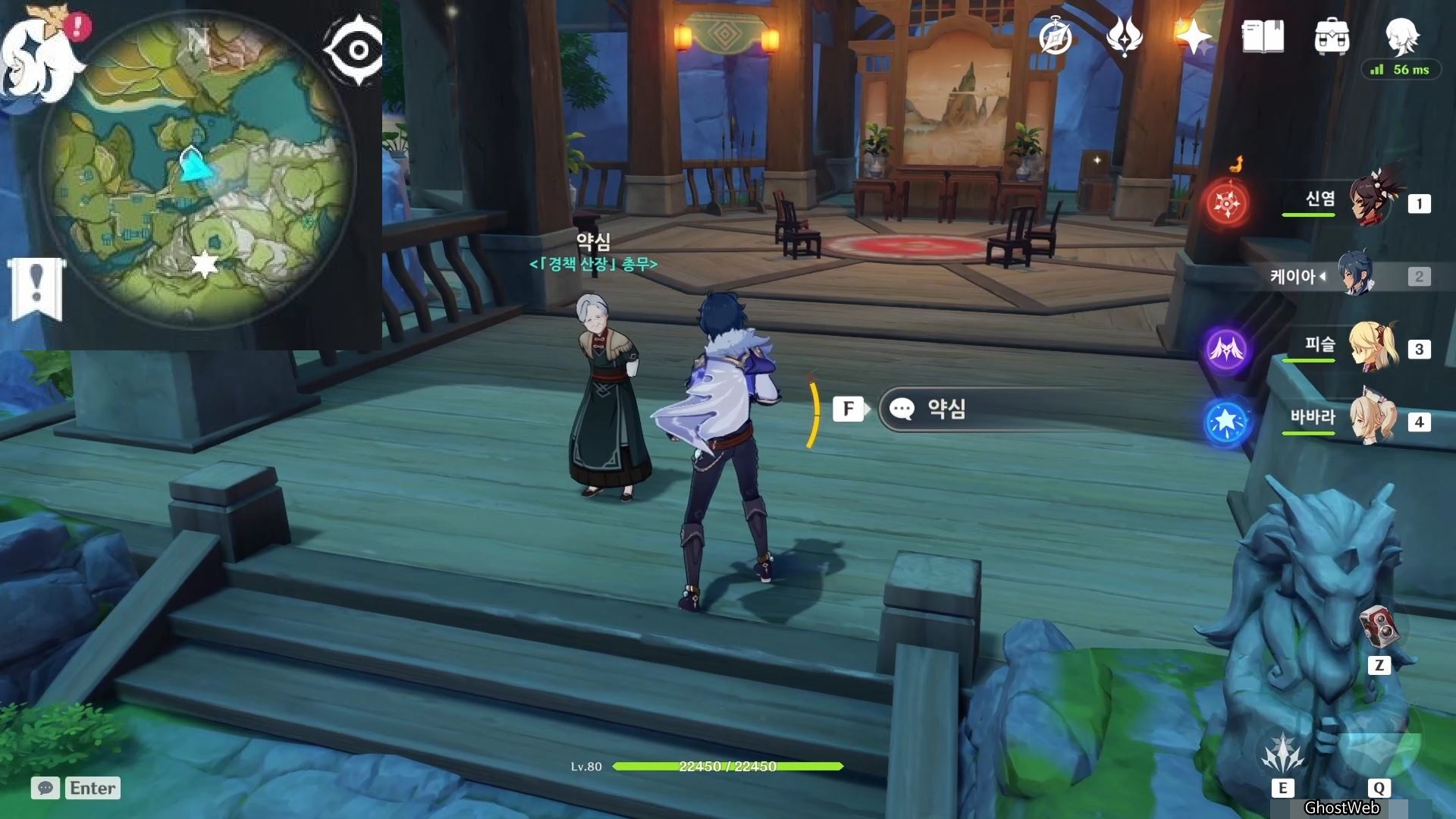 경책 산장 워프 포인트로 이동하여 워프 포인트 앞에 있는 건물 안에 경책 산장의 총무인 <약심>에게 말을 걸면 아빠가 근무해서 못 돌아온다는 말을 육이가 화가나서 리월항으로 간 거 같다며 여행자에게 육이를 찾아달라고 부탁해요.