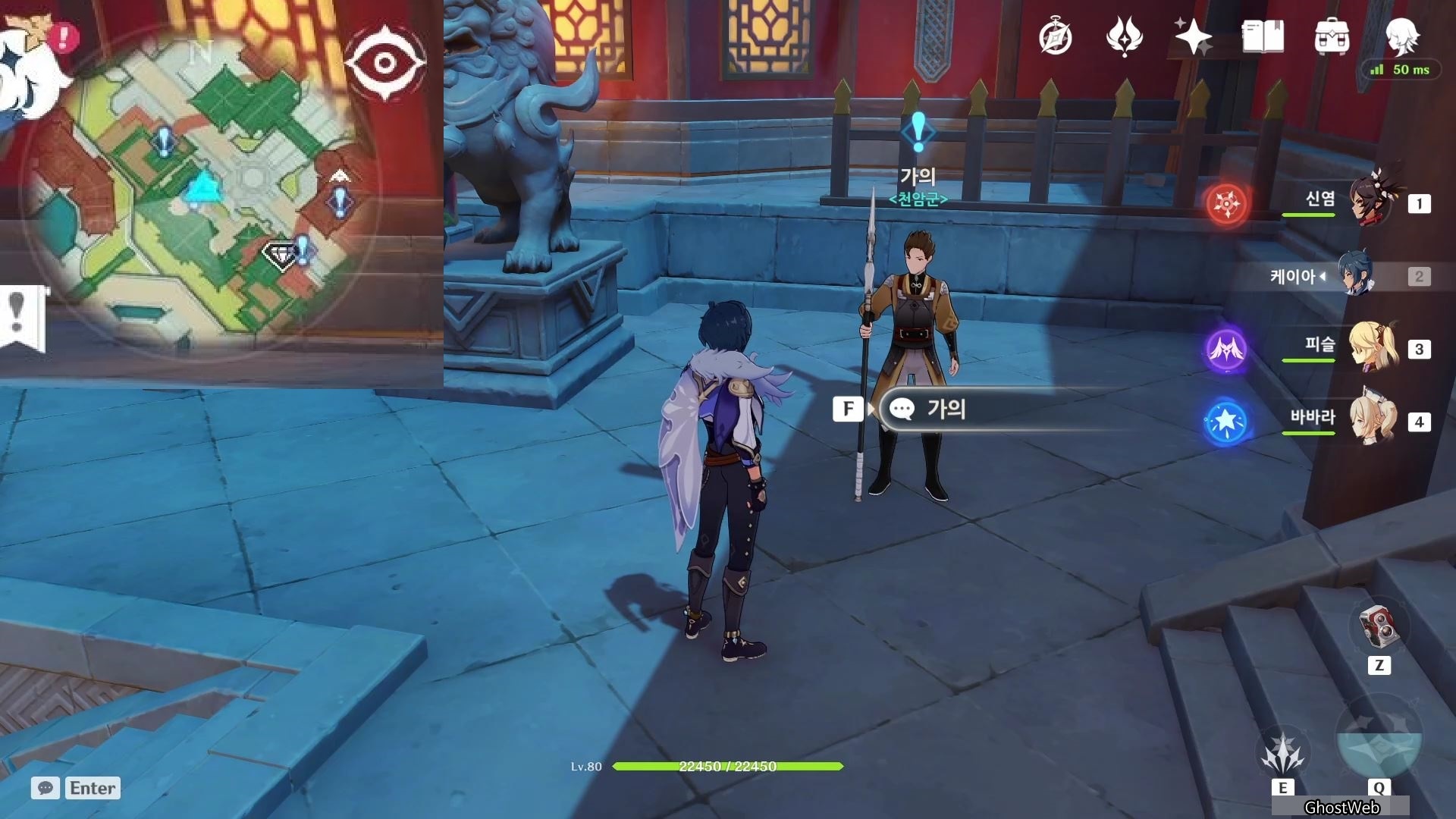 바위의 의지는 리월항 총무부(리월항 첫 번째 워프 포인트 근처) 앞에 경비를 서고 있는 천암군 <가의>에게 대화를 통해 임무를 진행할 수 있어요.
