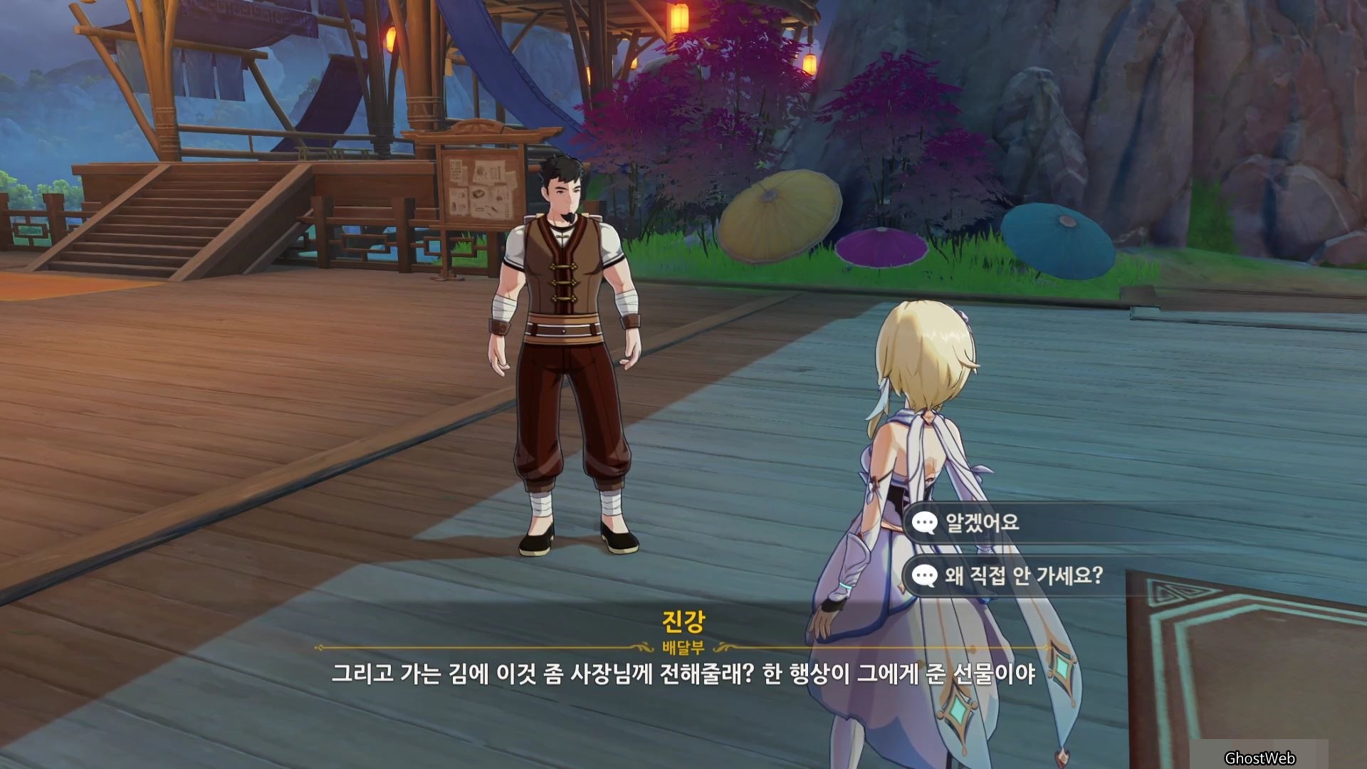 지상에 있는 망서 객잔 입구로 가면 배달부 <진강>과 대화를 통해 해당 임무를 진행할 수 있어요.