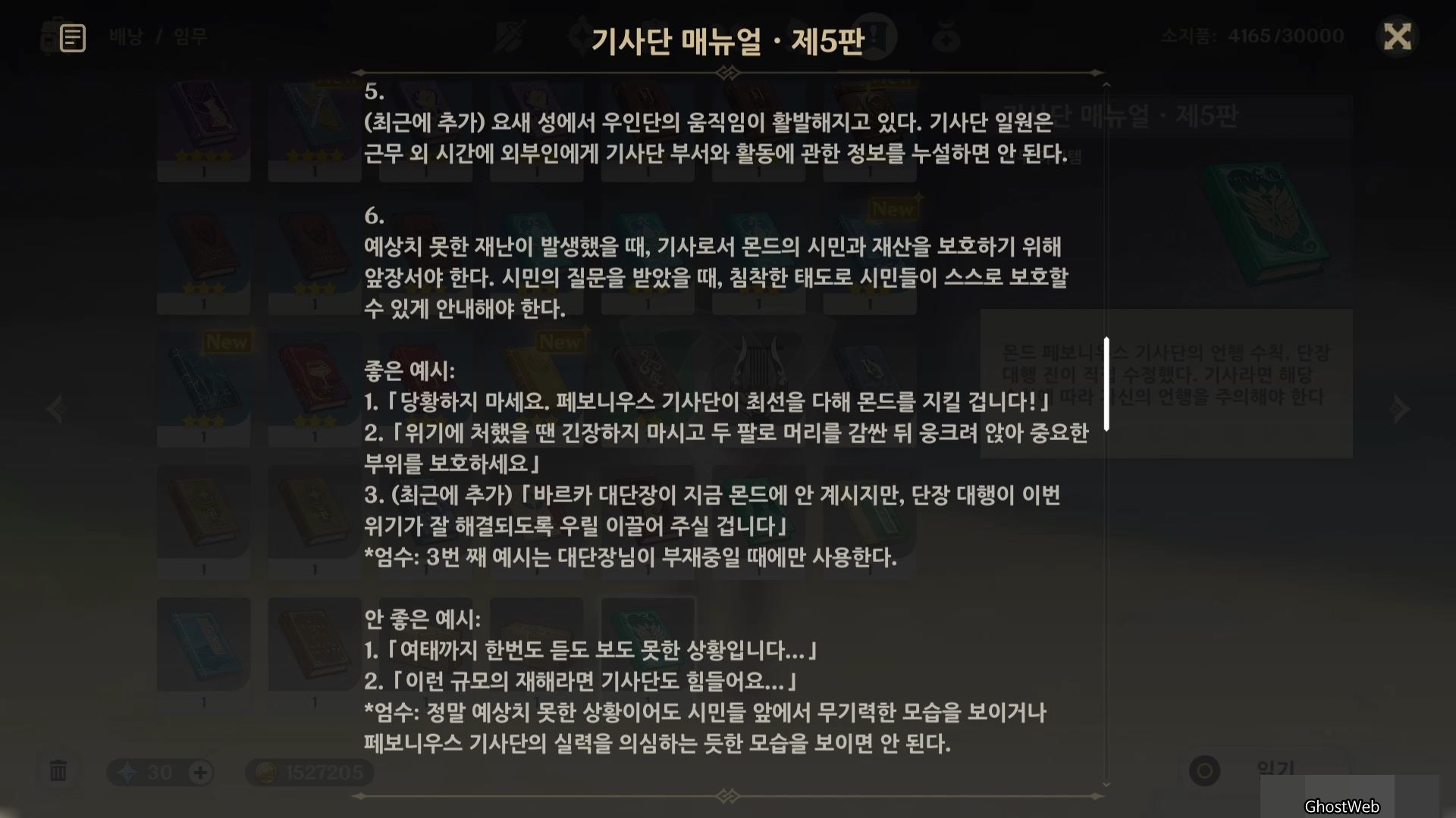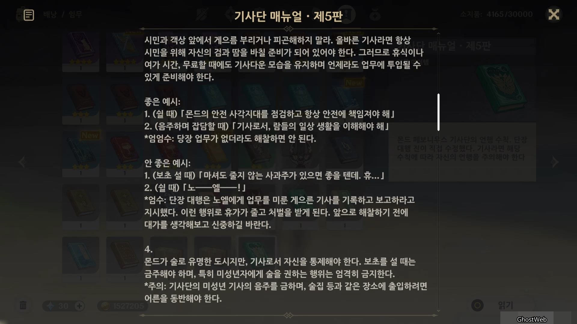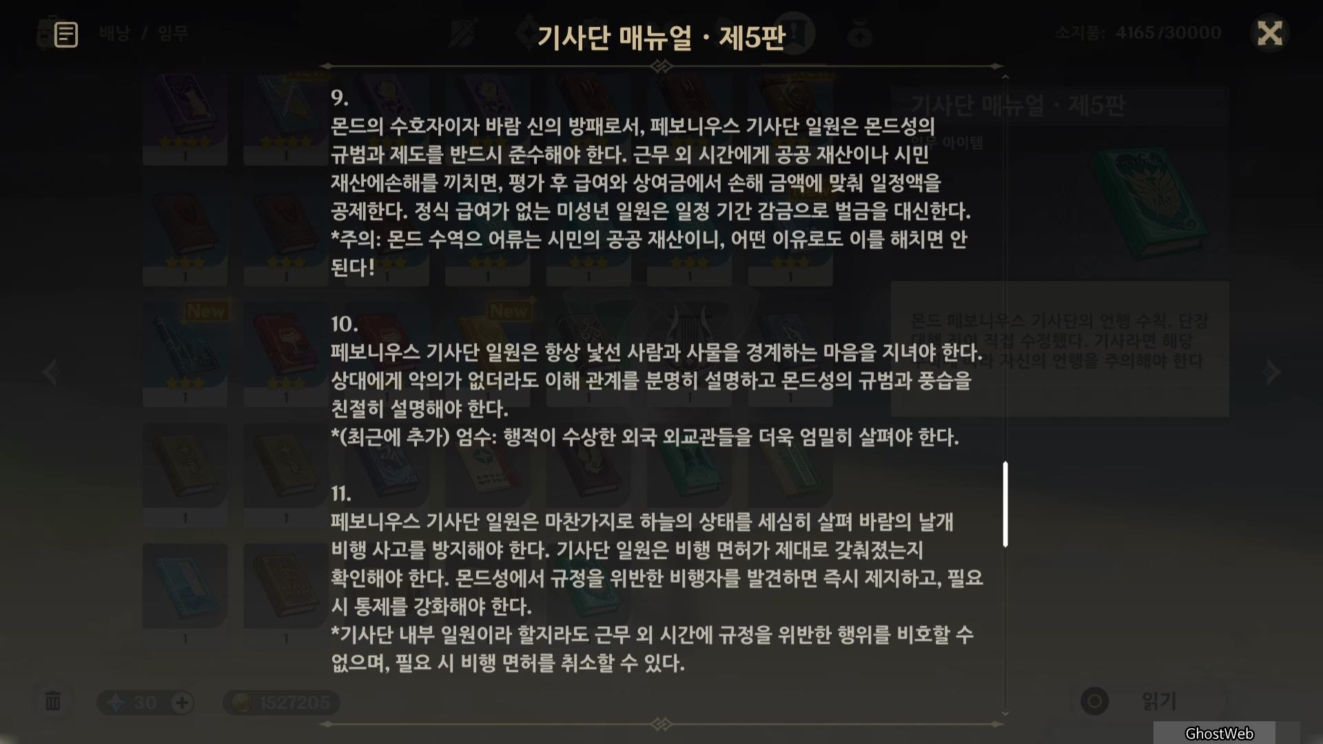 이번에는 몬드 평판 임무인 <기사단 매뉴얼 문답>에 대해서 정리해보도록 할게요.
