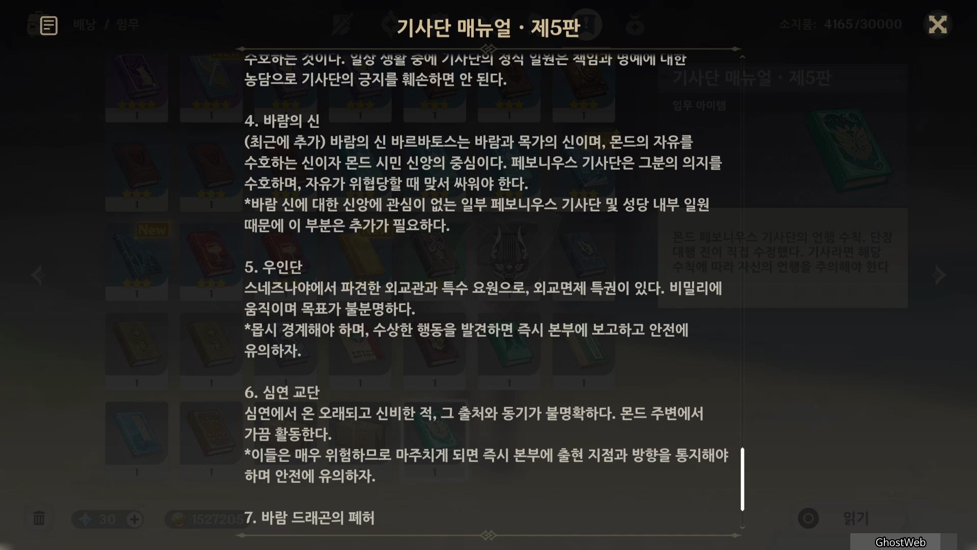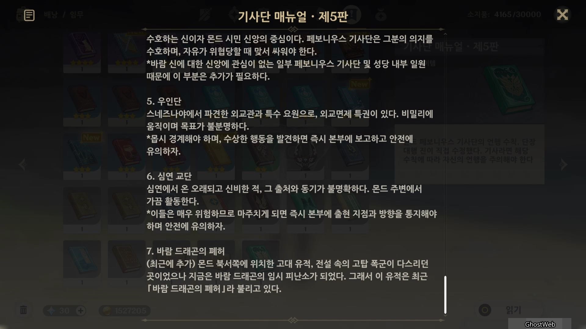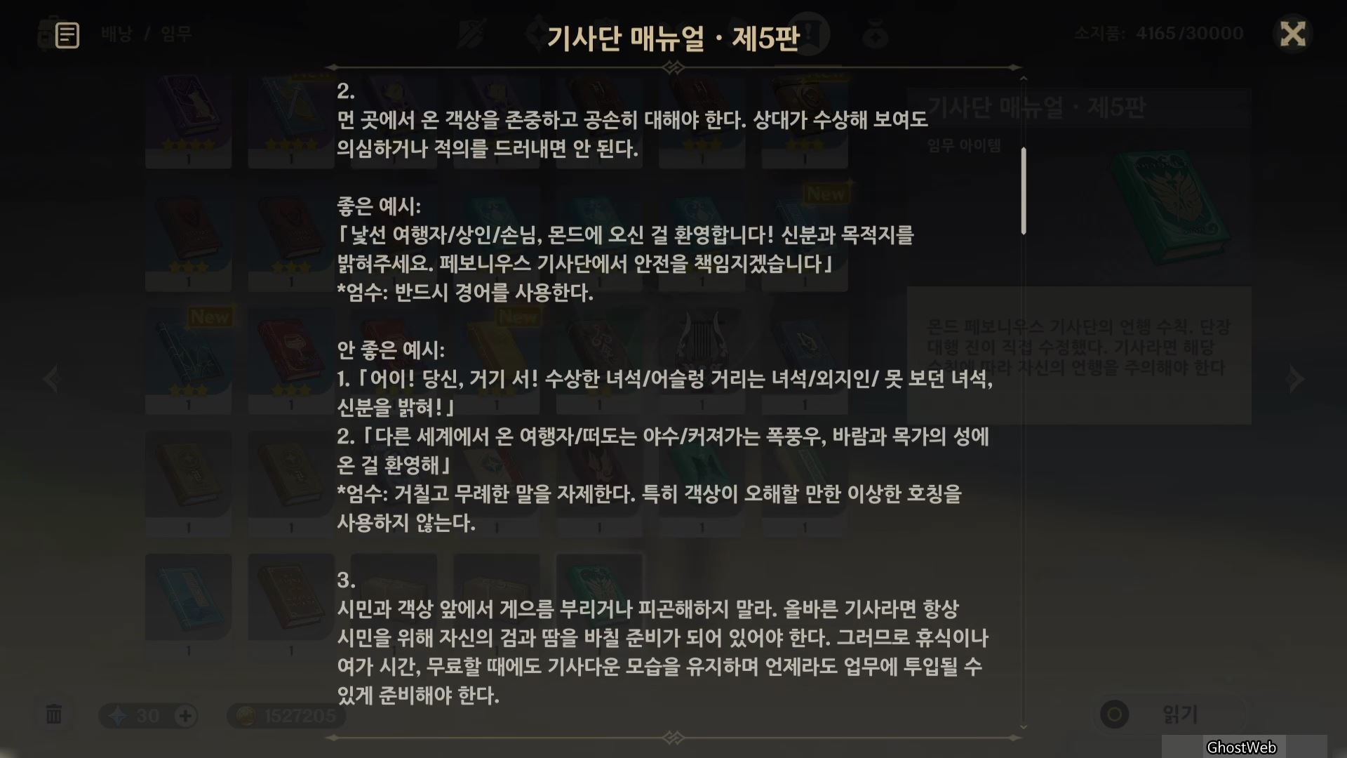 이번에는 몬드 평판 임무인 <기사단 매뉴얼 문답>에 대해서 정리해보도록 할게요.