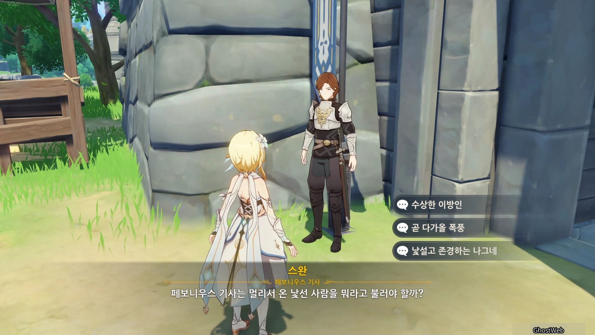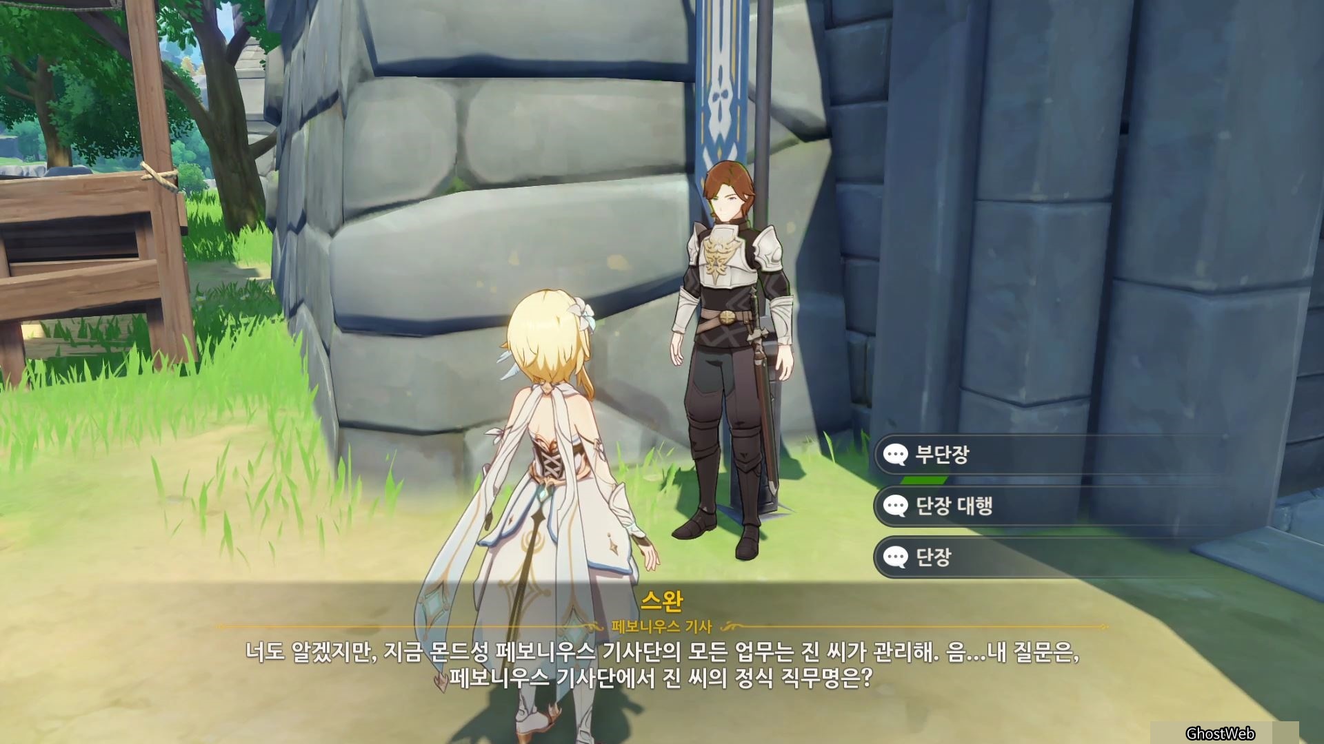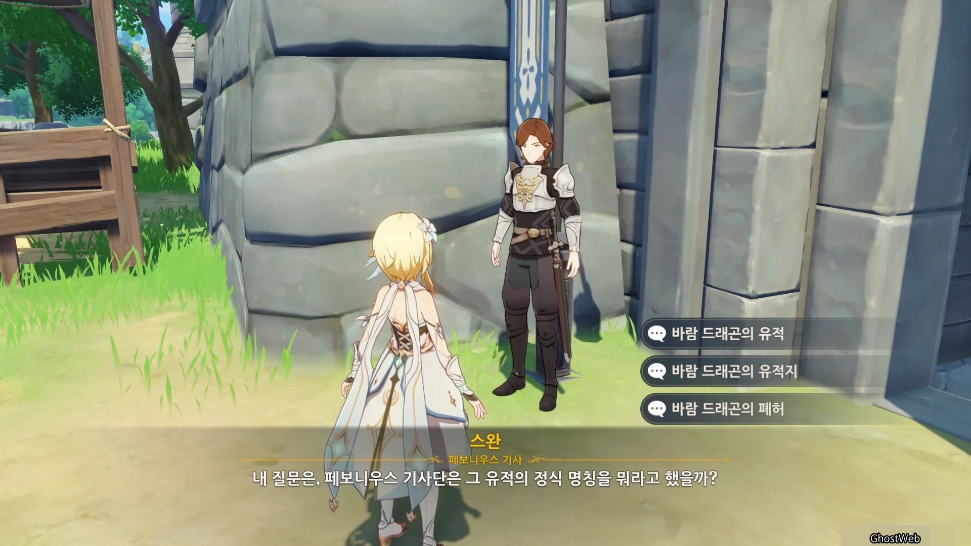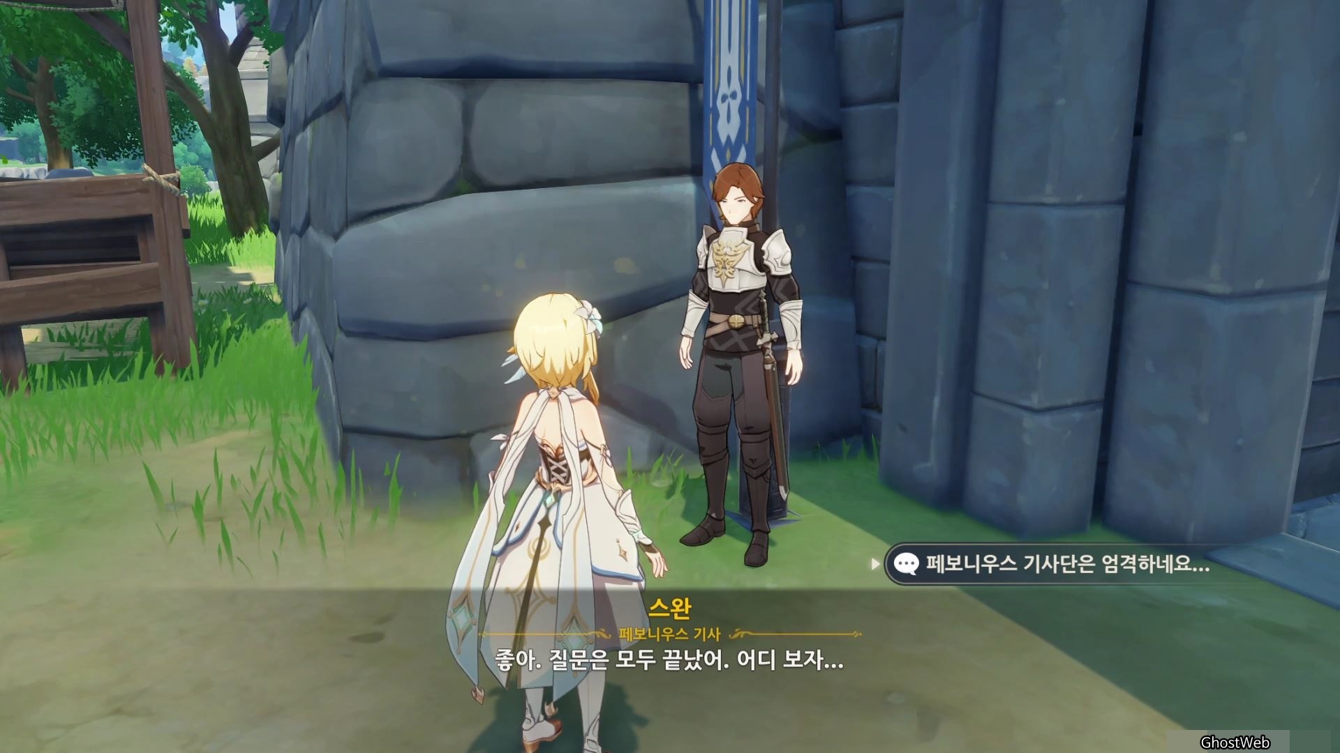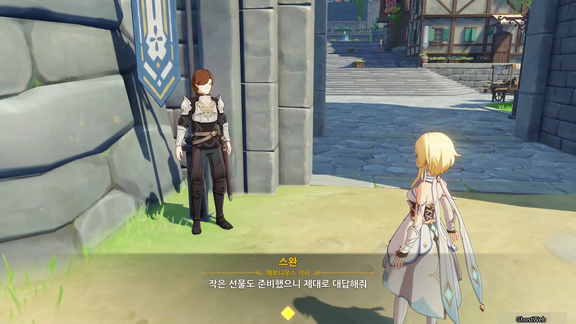 해당 임무는 몬드 성 입구에 서 있는 페보니우스 기사 <스완>에게 대화를 통해 진행할 수 있어요.