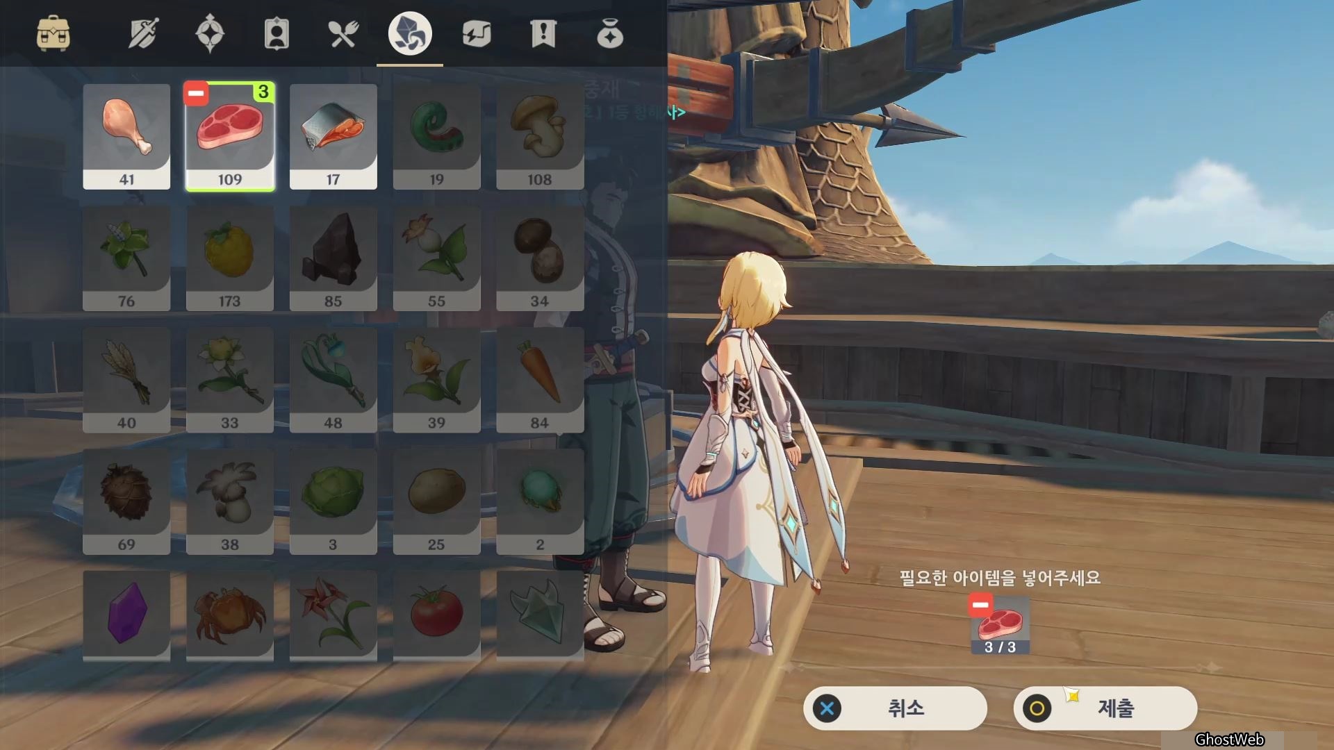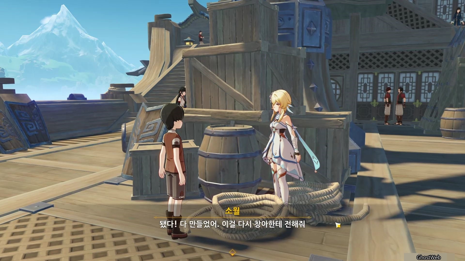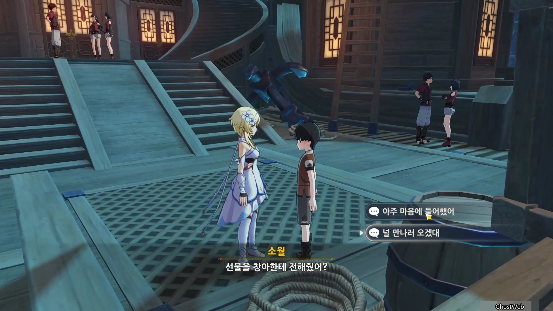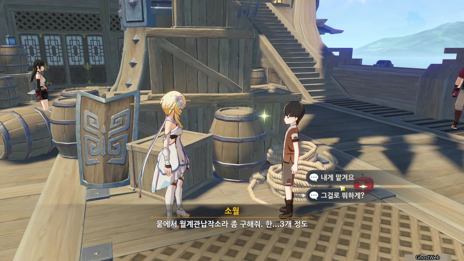 2. 소월 (배 가운데) : 별소라 3개를 구해주고 리월항에 있는 창아에게 선물 배달 (별소라 고운각 또는 요광 해안 근처에서 수집 가능)