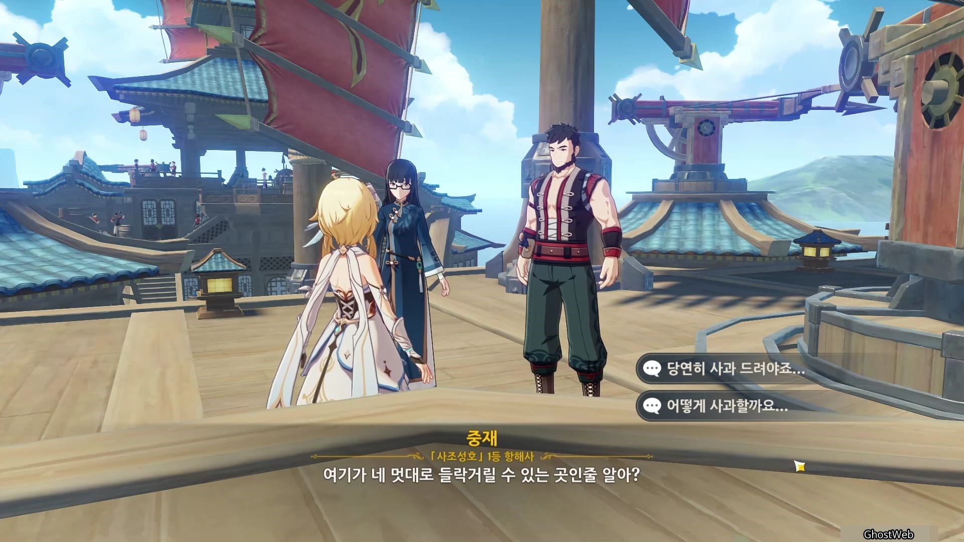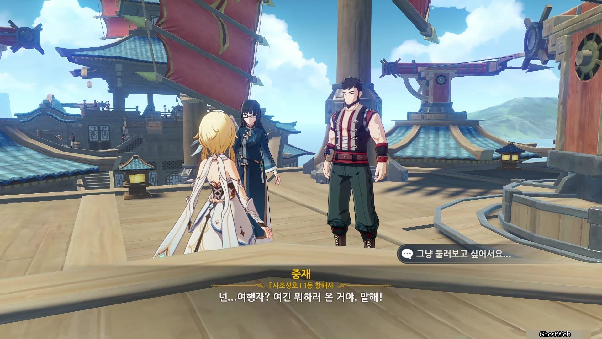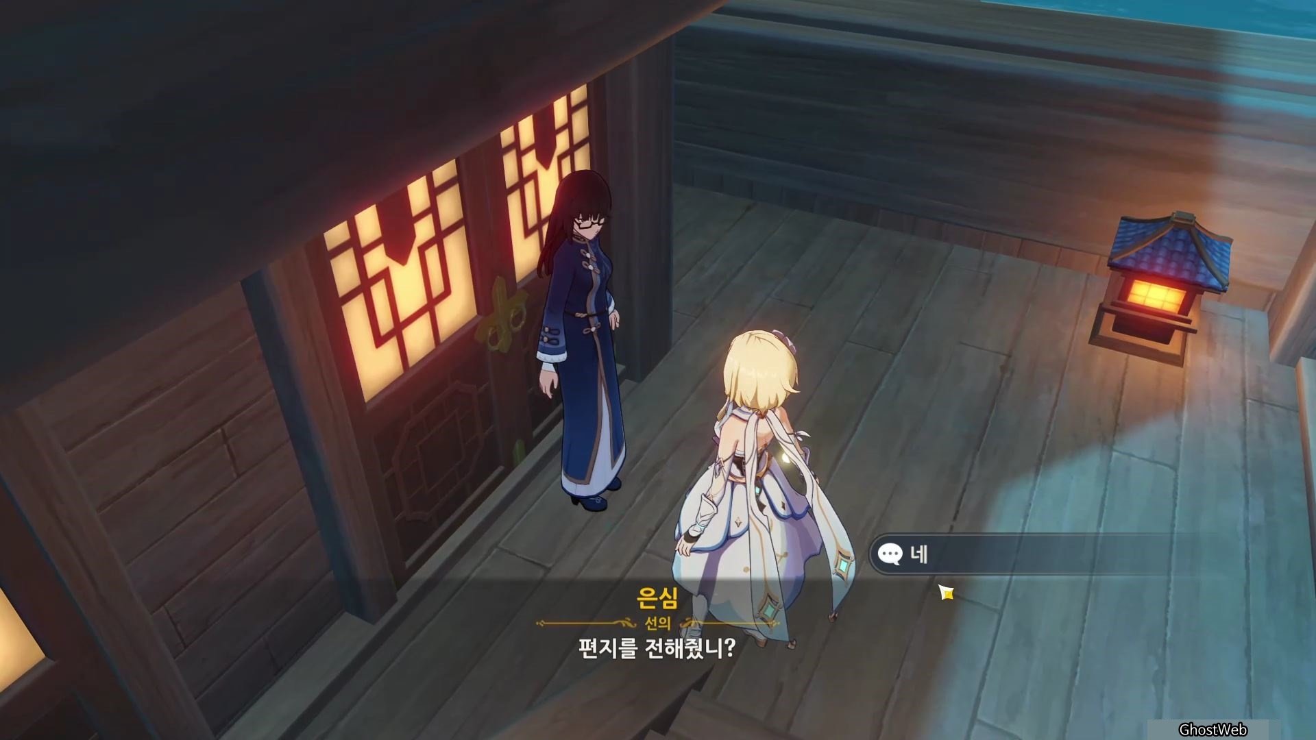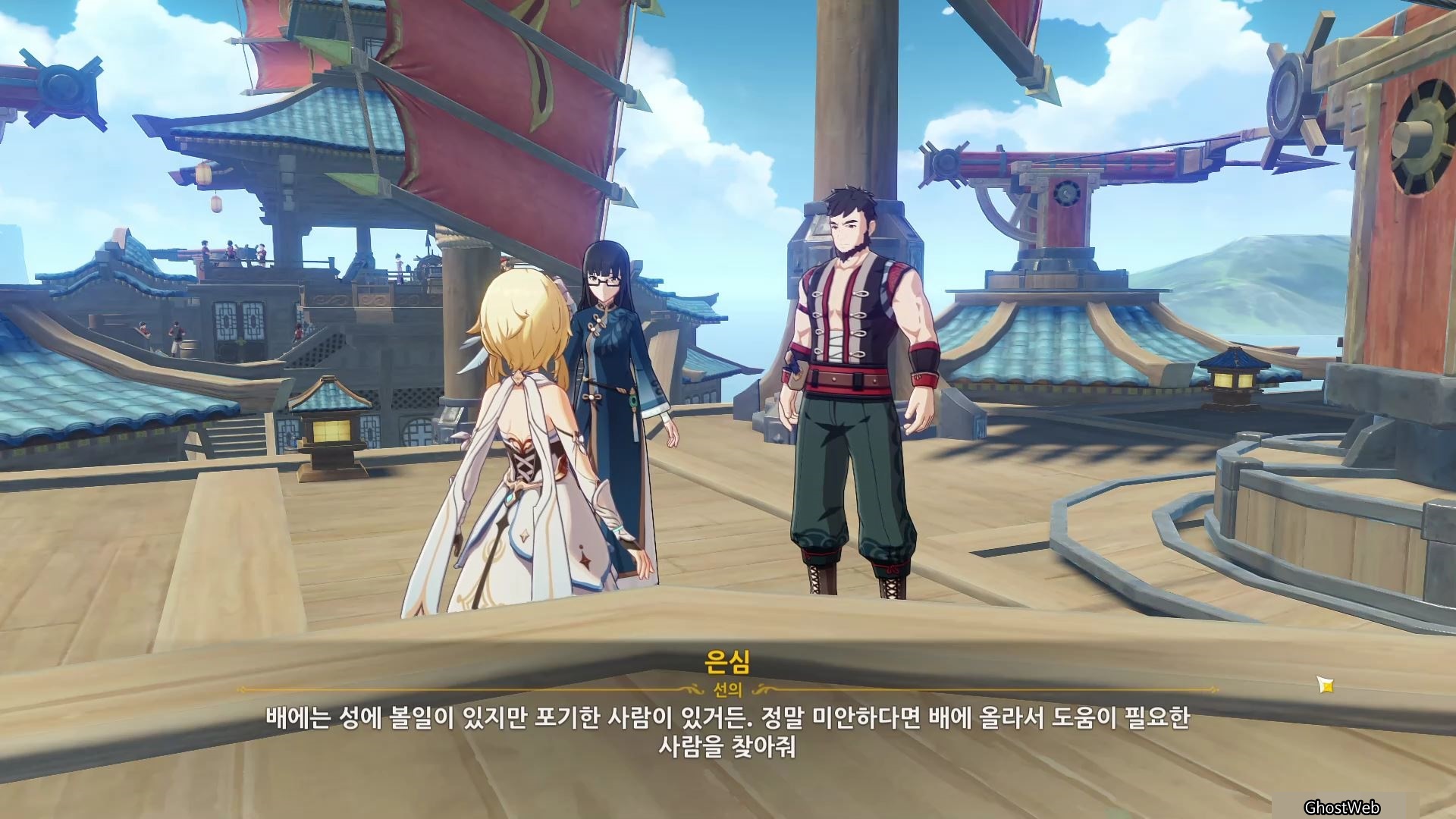 3. 은심 (배 뒤편으로 올라가는 계단 근처) : 리월항에 있는 박래에게 편지 배달
