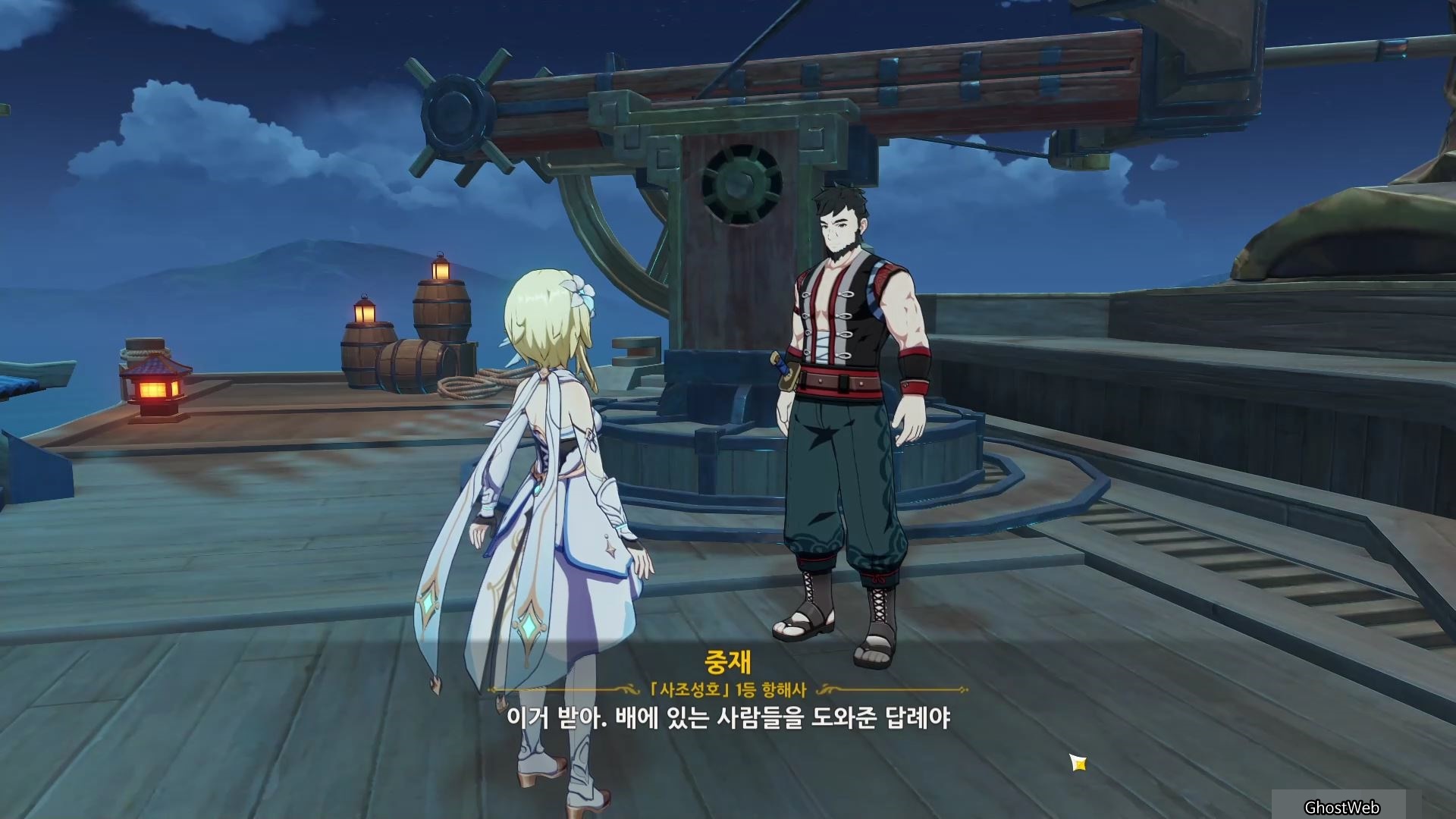 처음 사조성호에 방문하면 해당 임무가 자동으로 진행되며 선원들에게 잔소리를 듣고 도움이 필요한 선원들을 도와주기로 해요.