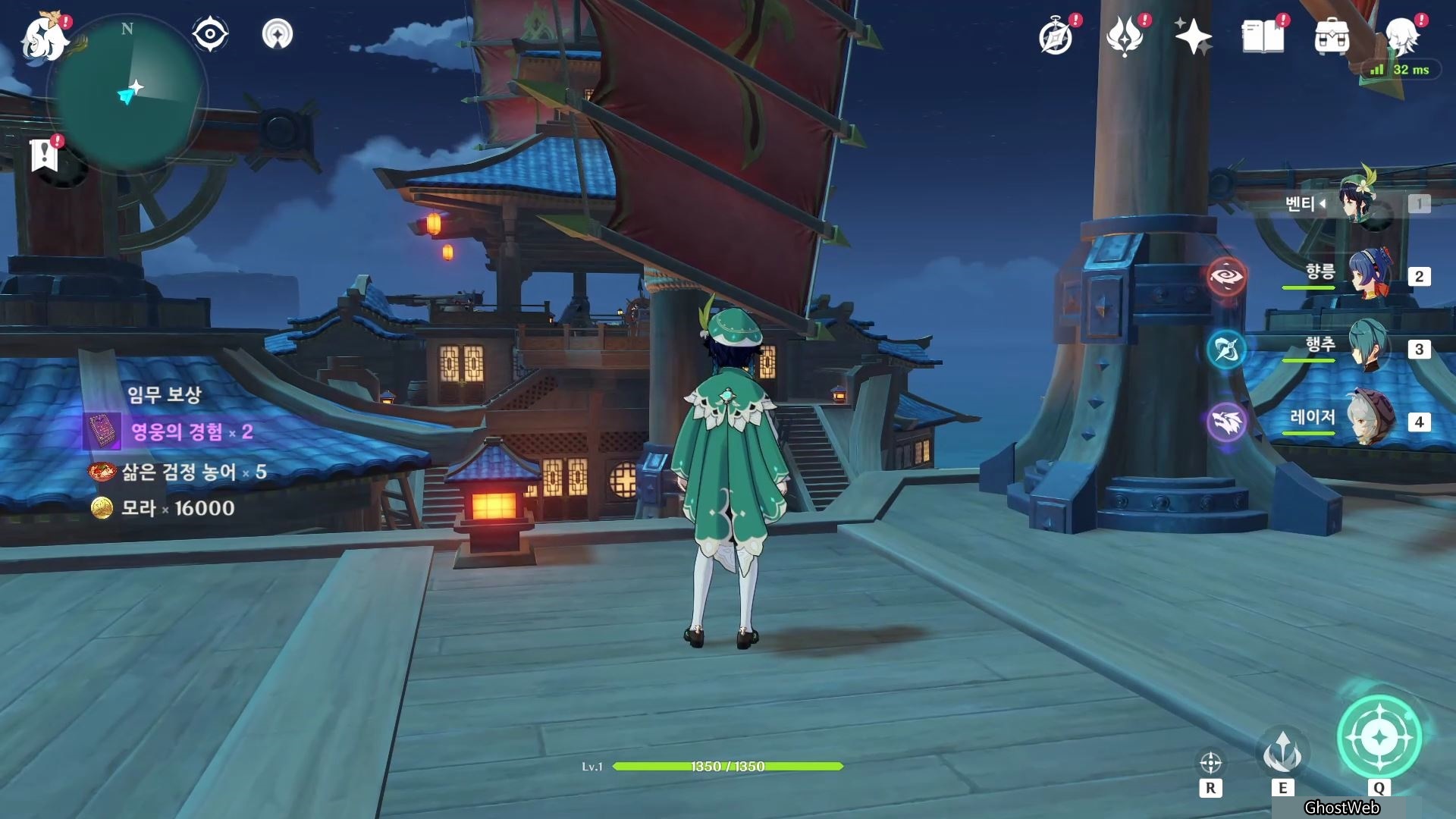 그 다음 배 앞 머리에 있는 중재에게 가서 도움이 필요한 사람들을 전부 도와줬다고 알려주면 답례로 영웅의 경험 2개, 삶은 검정 농어 5개, 16000모라를 얻을 수 있어요.