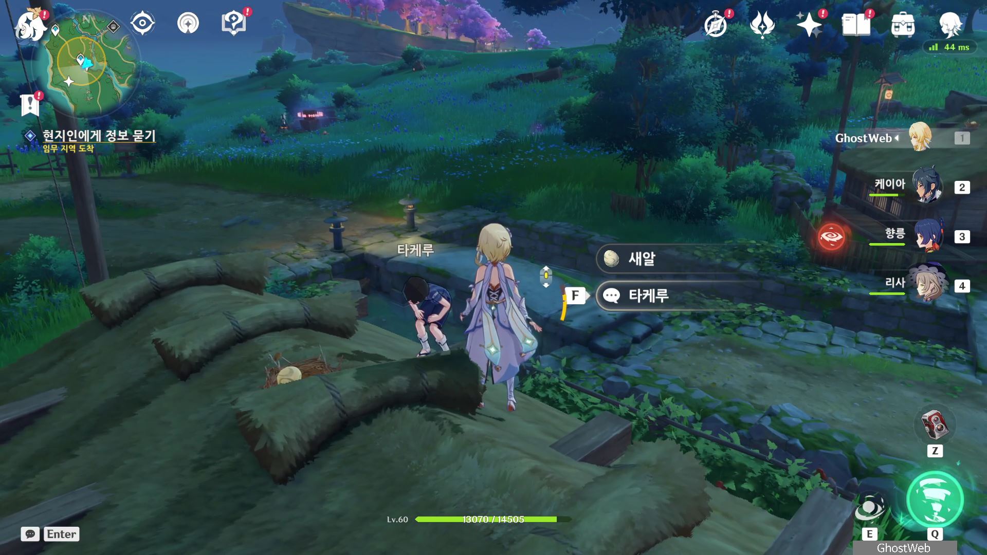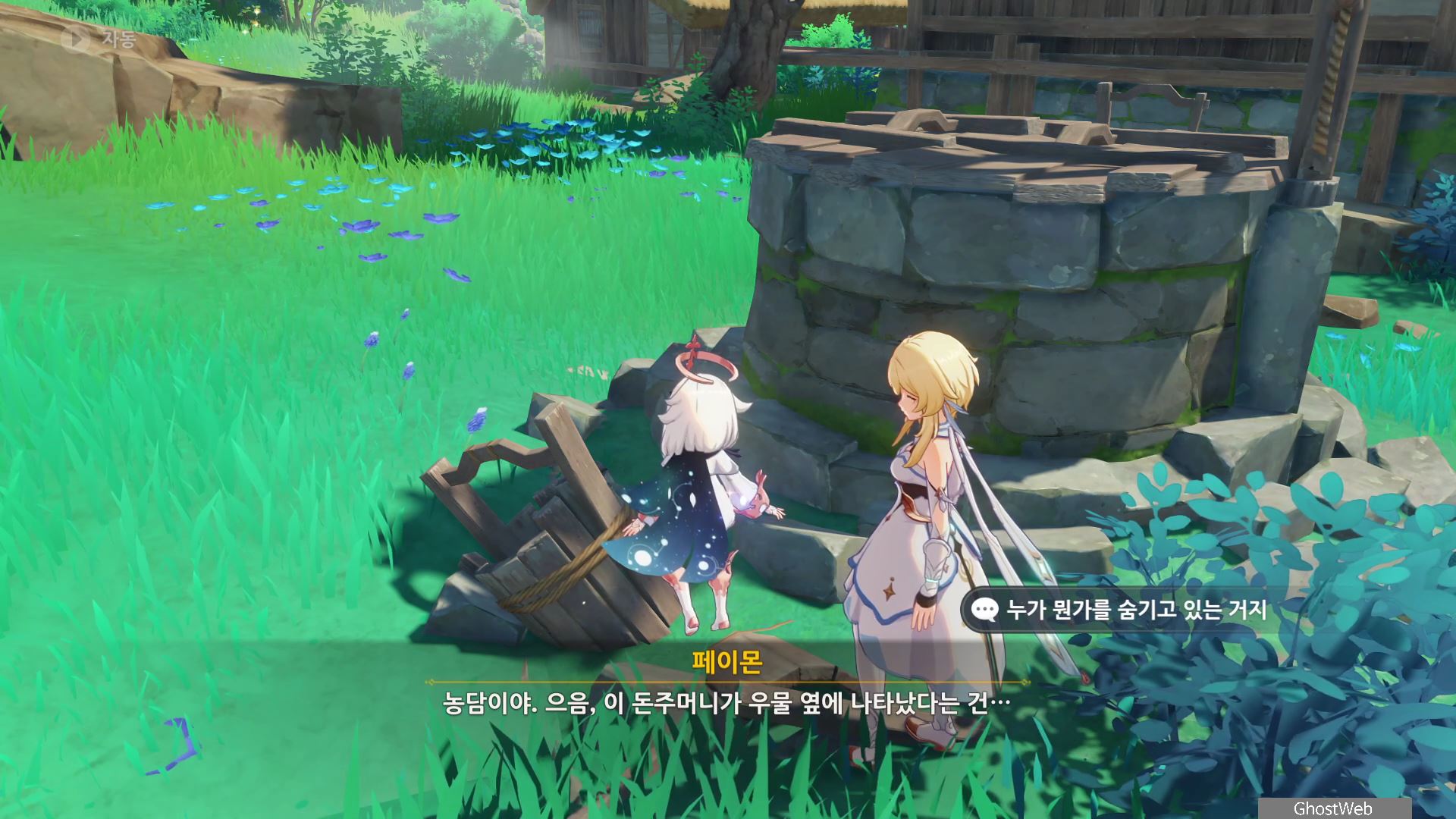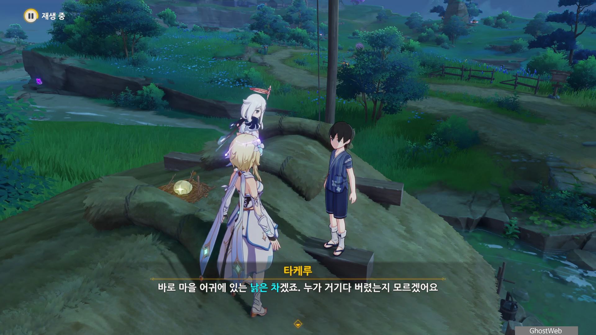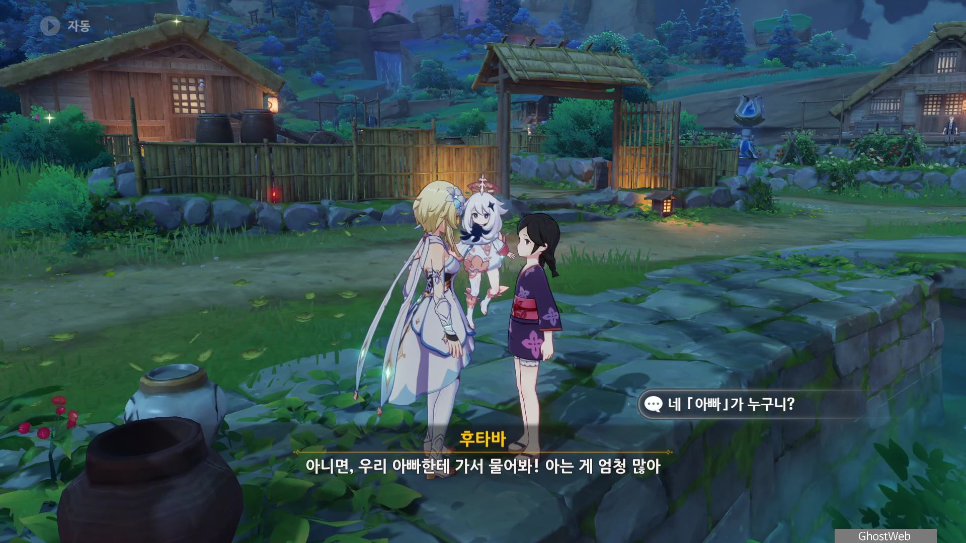 촌장의 딸인 후타바에게는 <둥둥 떠 있는 주머니>, 지붕 위에 있는 타케루에게는 <마을 어귀에 있는 낡은 차>, 사이몬 에리에게는 <촌장 집 뒤편 마른 우물 쪽에 모라 주머니>에 대한 정보를 얻을 수 있어요.