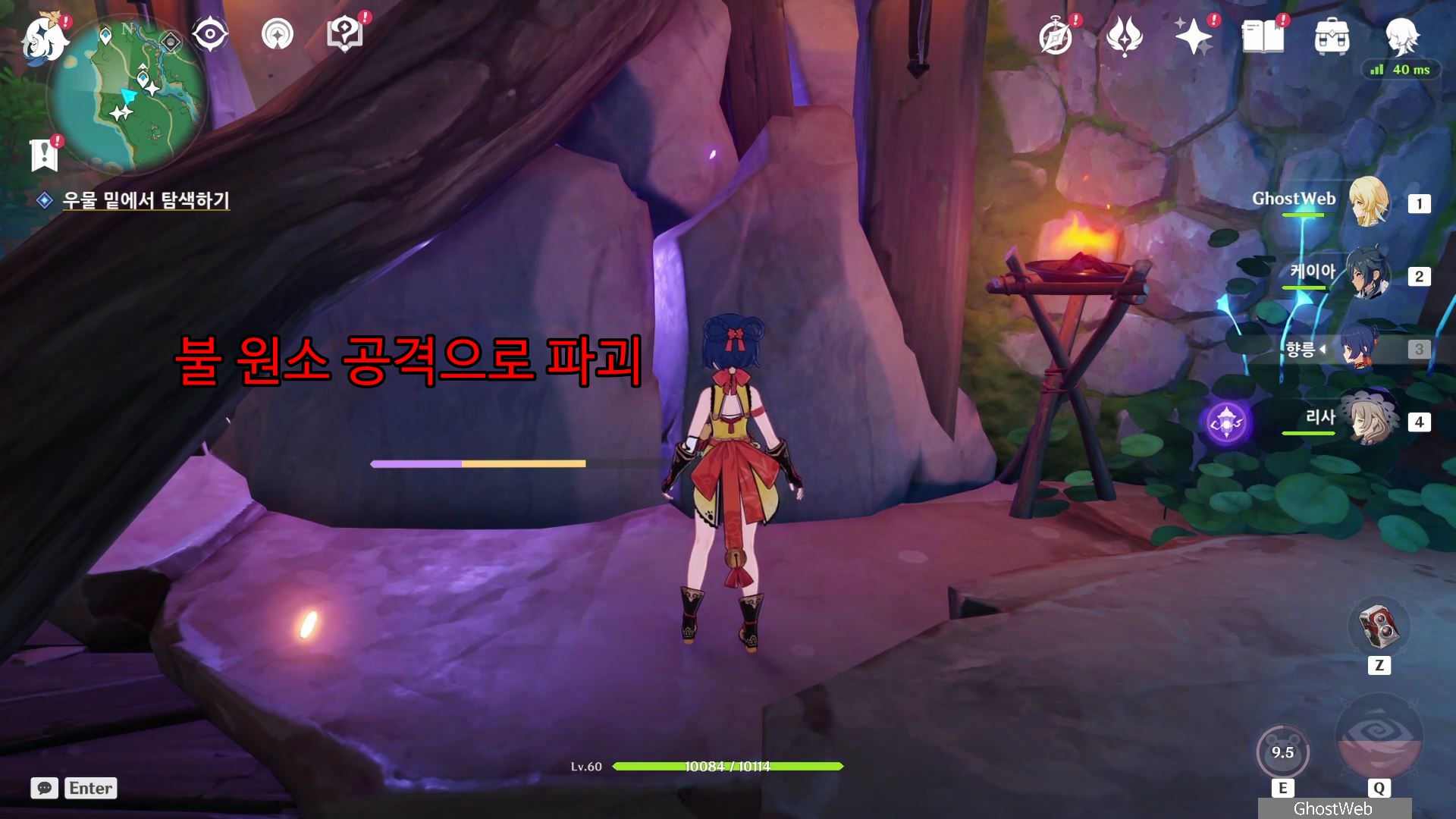 우물 밑으로 내려가면 번개 원소 빛을 내는 바위가 있는 불 원소 공격으로 바위를 파괴하고 들어가면 맨 아래 층에 결계가 있어 못 들어가는 방이 있는데, 주변에 있는 <번개 나무>에서 번개 씨앗 소환을 해서 번개 씨앗을 얻은 상태에서는 결계를 뚫고 들어갈 수 있어요.