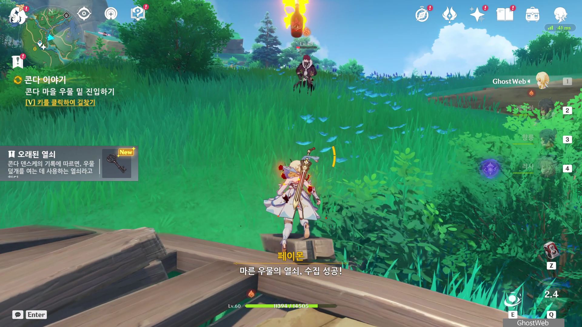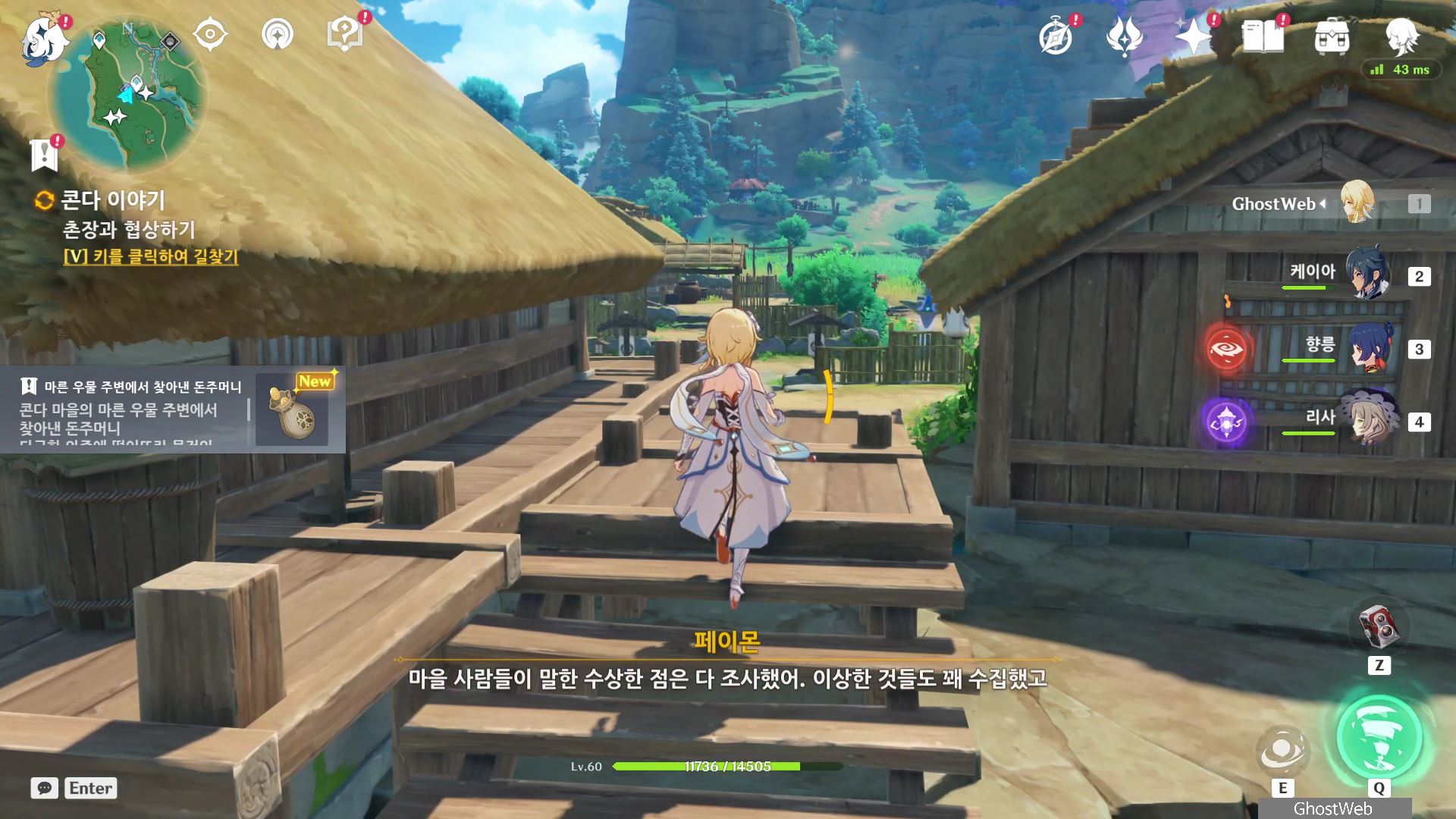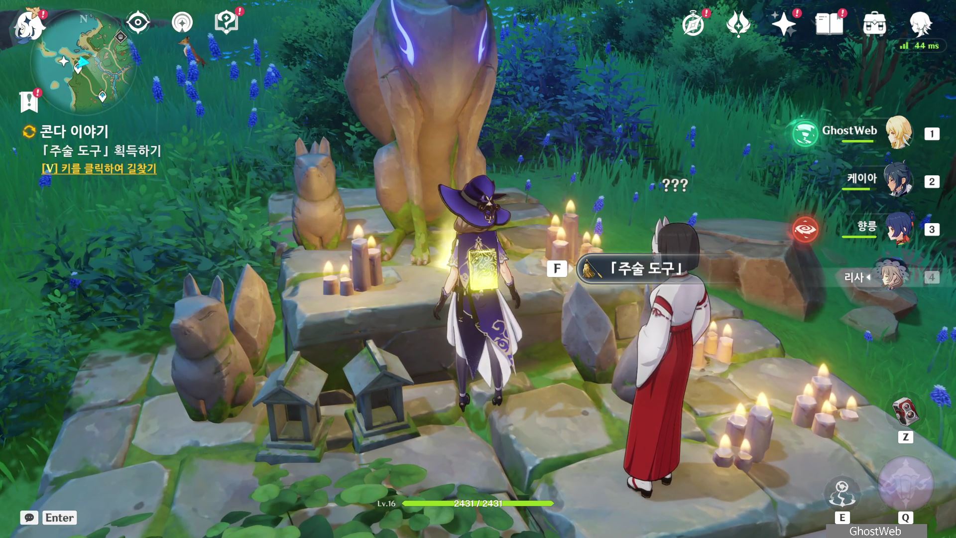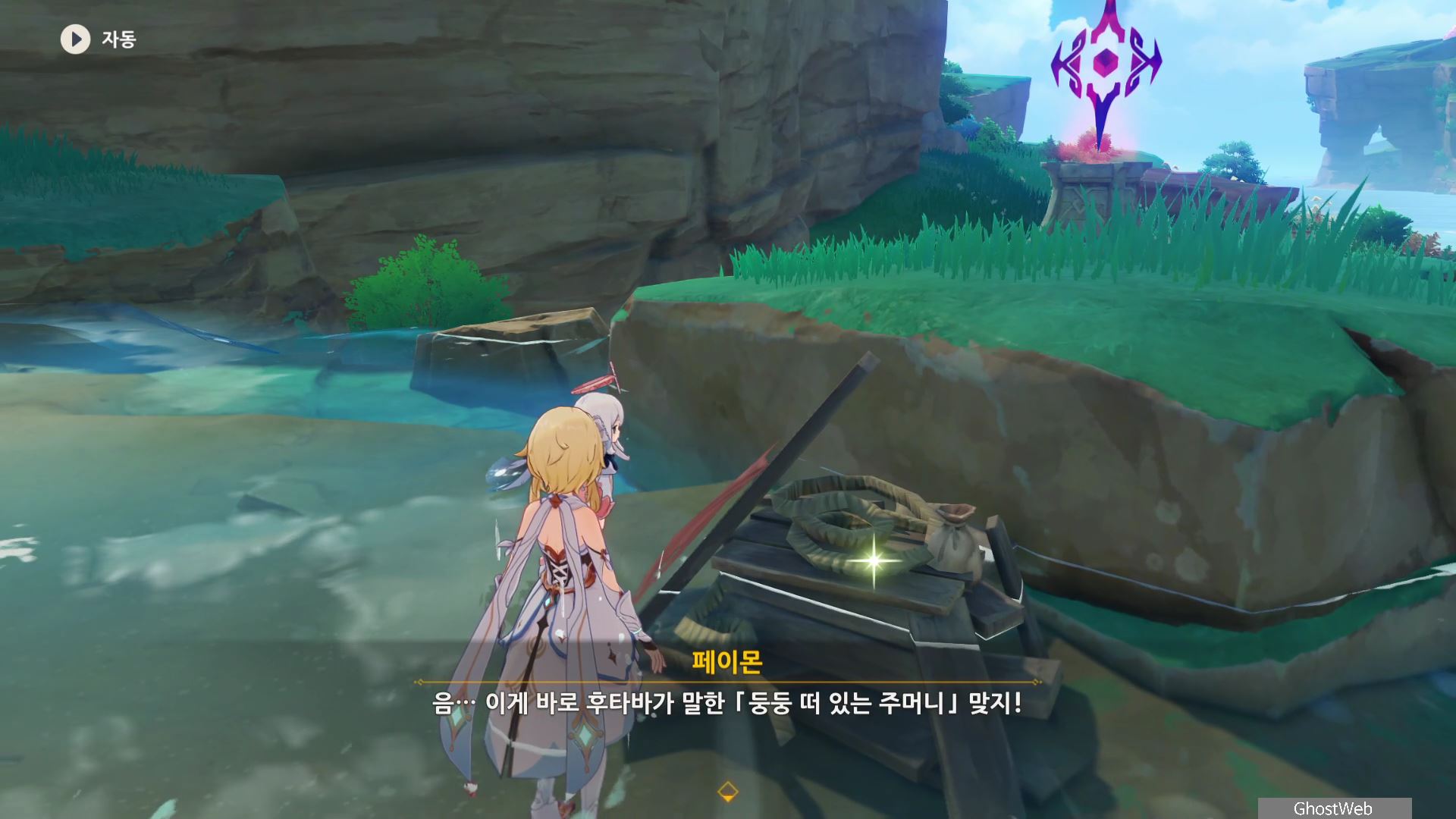 석상에 번개 원소 공격을 가해 주술 도구를 꺼내주면, 콘다 마을에 풀어야 할 결계가 있다며 여행자에게 비밀 조사를 외로와 결계를 풀어달라고 부탁해요.